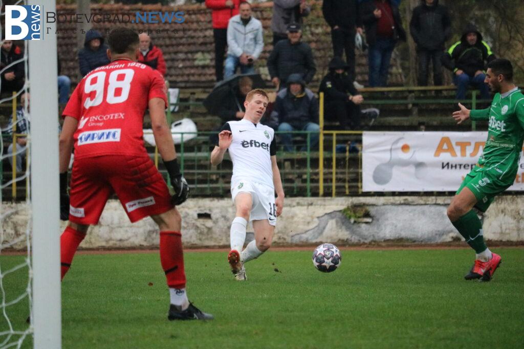 Иначе Балкан, който заема шестото място в Югозападната трета лига започна предпазливо срещата и първото полувреме завърши с гол преднина за възпитаниците на Георги Дерменджиев. В 15-ата минута „орлите“ откриха резултата чрез Текпетей, който се освободи технично от бранител и реализира.