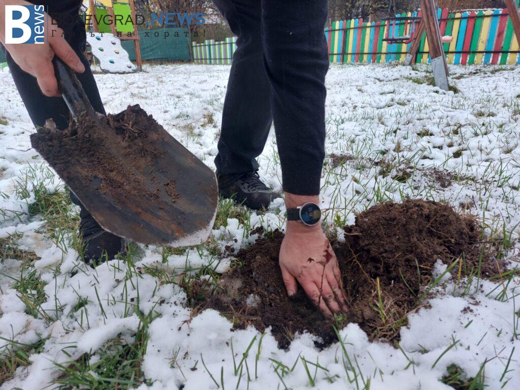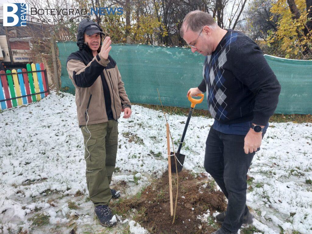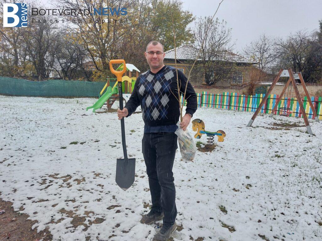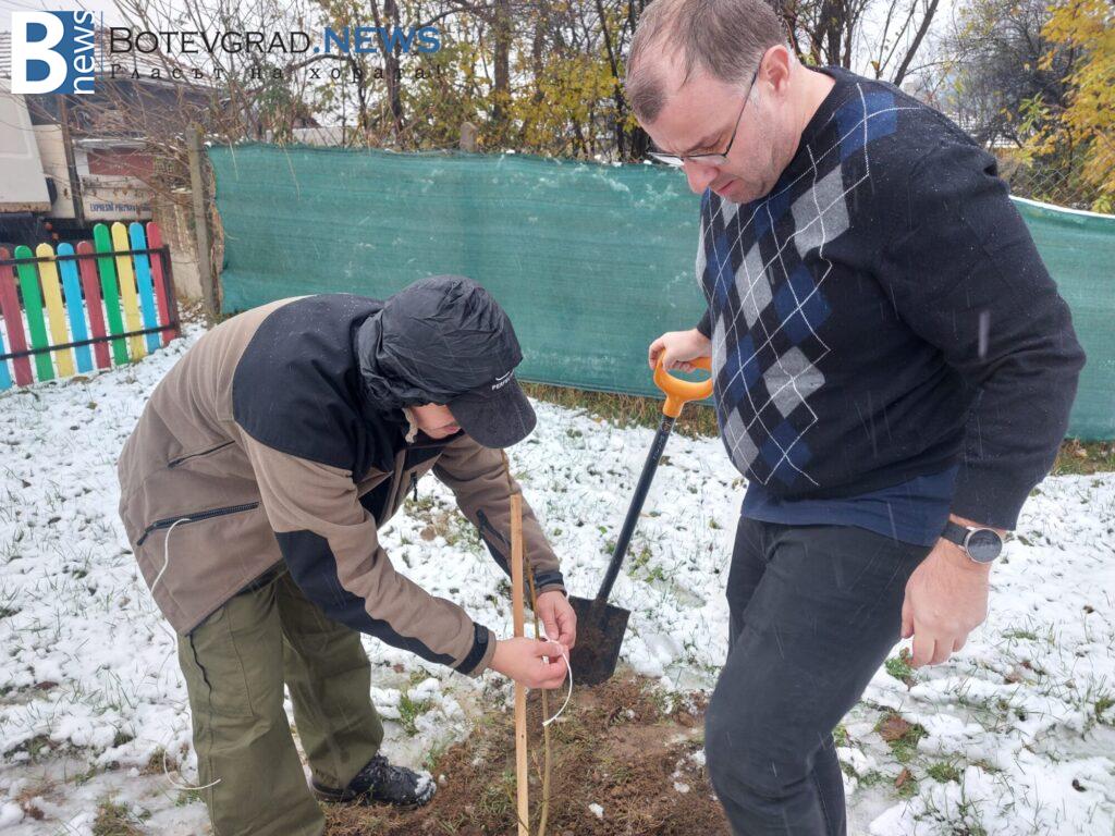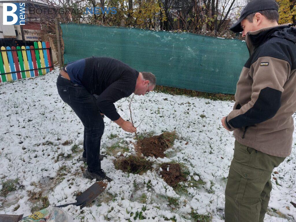 Двама общински съветници засадиха дръвчета в детската площадка в Новачене