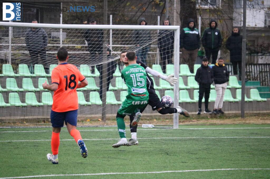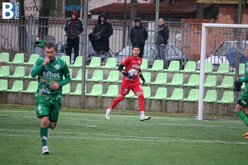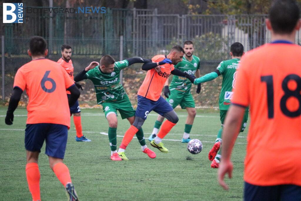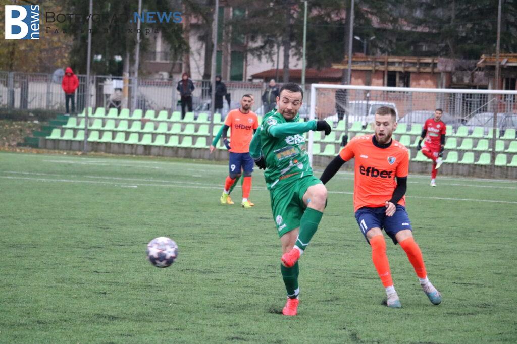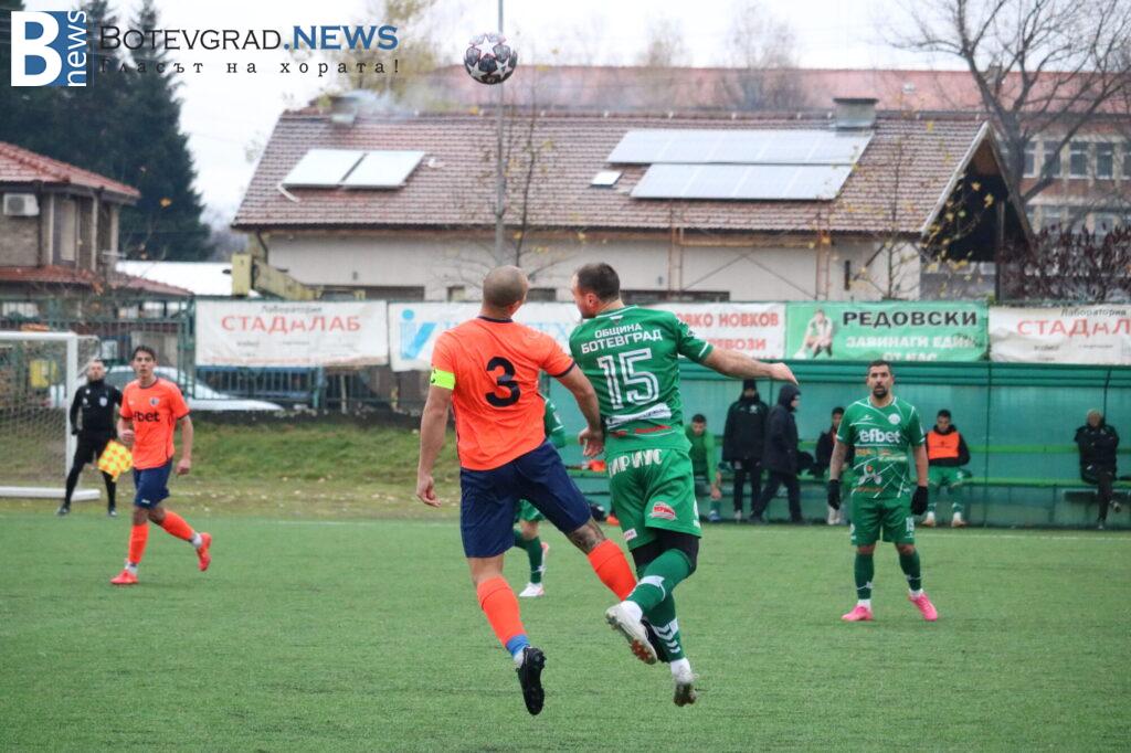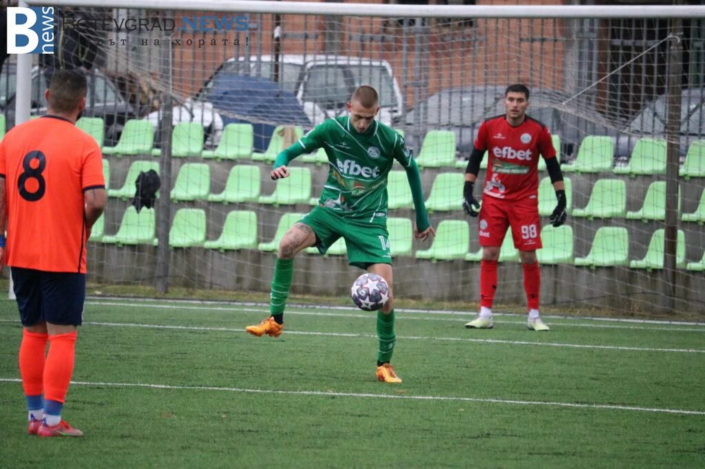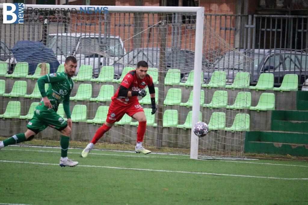 Състезателите на Иван Редовски откриха в 19-та минута, когато Здравко Атанасов вкара майсторски красив гол със силен далечен удар. До края на полувремето обаче гостуващият тим успя да обърне резултата, а Николай Миков нацели и напречната греда. В края на полувремето Здравко Атанасов изпълни пряк свободен удар, който отново срещна гредата.