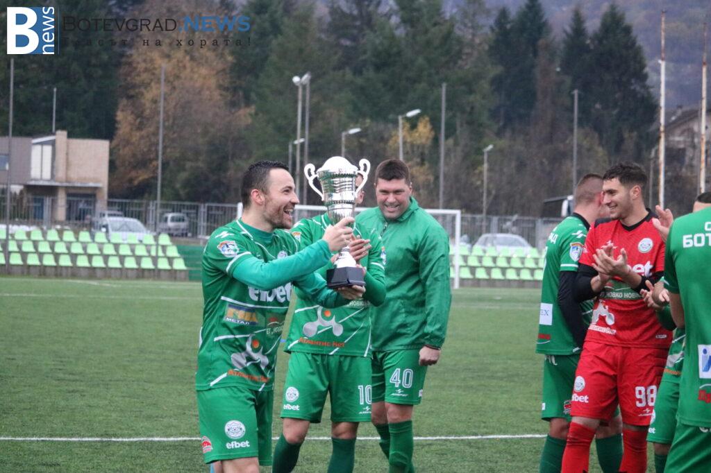 След последния съдийски сигнал футболистите на Балкан получиха и купата за областен победител в турнира на АФЛ.