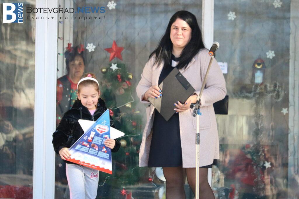 „Мили деца, благодарим Ви за старанието, за труда и въображението Ви, с което сте напрвили картичките, както и за хубавите пожелания! Журито бе много затруденено да избере коя картичка ще спечели първо място. Затова всички участници ще получат награди, а някои по-специални!“. Това каза Минкова преди да връчи наградите, а те бяха: