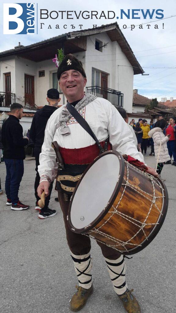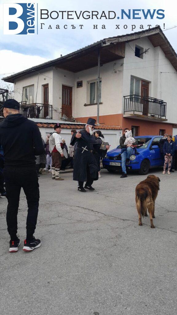 Отправна точка е домът на организатора – Тодор Благоев, след това шествието се отправя към центъра на селото, където по традиция се спират, за да изиграят първото сватбарско хоро и продължават нагоре към главната улица. В маскарадния парад участват и кукери, като интересното е, че маските и костюмите са ръчна изработка на Тодор Благоев. Той споделя, че от 2000г. насам, заедно със своето семейство поемат организацията по празника и не пропускат неговото отбелязване.