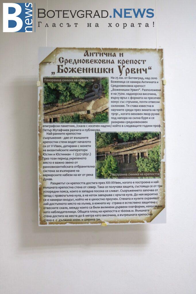 На 14 февруари в Исторически музей – Ботевград бе открита постерната изложба „Антична и средновековна крепост „Боженишки урвич“ – от началото до наши дни“ по случай Деня на археолога. Новооткритата изложба се състои от 20 постера.