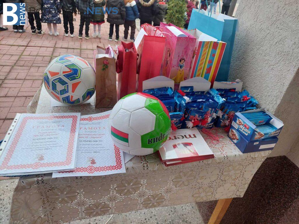 Днес от 10:30 ч. на центъра на селото г-н Пешо Младенов обяви резултатите и раздаде награди на класираните в първите 3 места в различните възрастови групи. Наградите бяха, както индивидуални, така и колективни. В първа възрастова група бяха отличени: Подготвителна, I и II група към ДГ „Здравец“. Индивидуални награди получиха Симона Вескова с първо място и Десислава Венциславова с втора награда. Във втората възрастова група награди получиха Борис Борисов – I място, Карина Димитрова – II място и Палома Асенова – III място. В тази категория имаше и една колективна награда за III клас към ОУ „Васил Левски“. В последната възрастова група награди получиха Мария Недкова Недкова и Венета Илиева Стоянова. Децата от Детска градина „Здравец“ и ОУ „Васил Левски“ бяха подготвили песни и стихотворения, с които зарадваха Баба Марта и получиха много лакомства и награди.