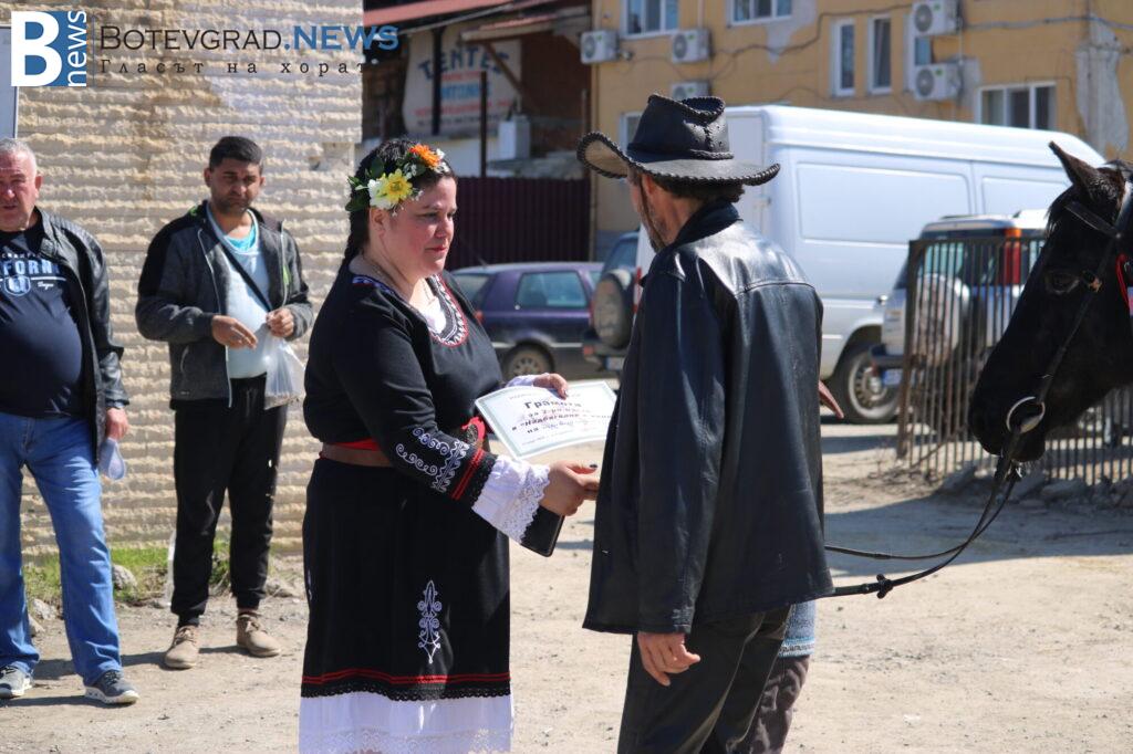 Първо място – кон Вихър с ездач Васко Иванов – грамота, 120 кг овес и венец