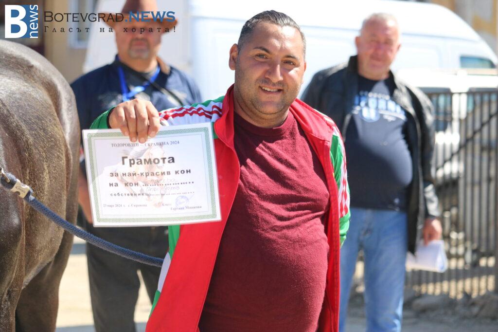 В категория „Най-красив кон“ награда получи кобилата Елвира / която е на 1 г и 6 месеца, внесена от Холандия/ със собственик Петър Петров от Ботевград. Награда „Атрактивен костюм“ получи Данислава Георгиева – водач на празничното шествие и Ивелин Николов. Грамота за красив костюм получи Емил Николов.