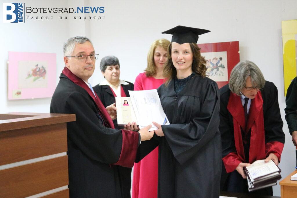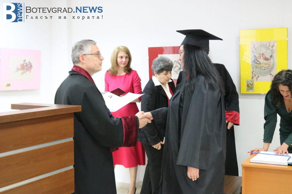 21 студенти получиха дипломи за висше образование. Средният успех на Випуска е Мн. добър 4,78. Трима абсолвенти се дипломират с отличен успех. Деветнадесет от всички ще продължат своето обучение в магистърска степен.