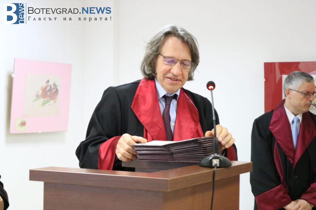 „Преди всичко, искам да Ви пожелая да бъдете живи и здрави, да помислите да запишете следваща степен „Магистър“ и да имате една много добра реализация в професионалната кариера. На добър час!„, приветства абсолвентите доц. д-р инж. Росен Радонов.