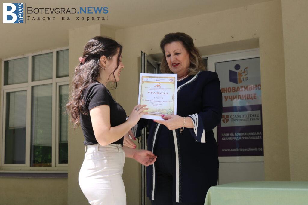 Г-жа Росица Иванова поздрави отличените математици и пожела на всички догодина да завоюват първото място, а на първенците – да го повторят като отражение на техните усилия.