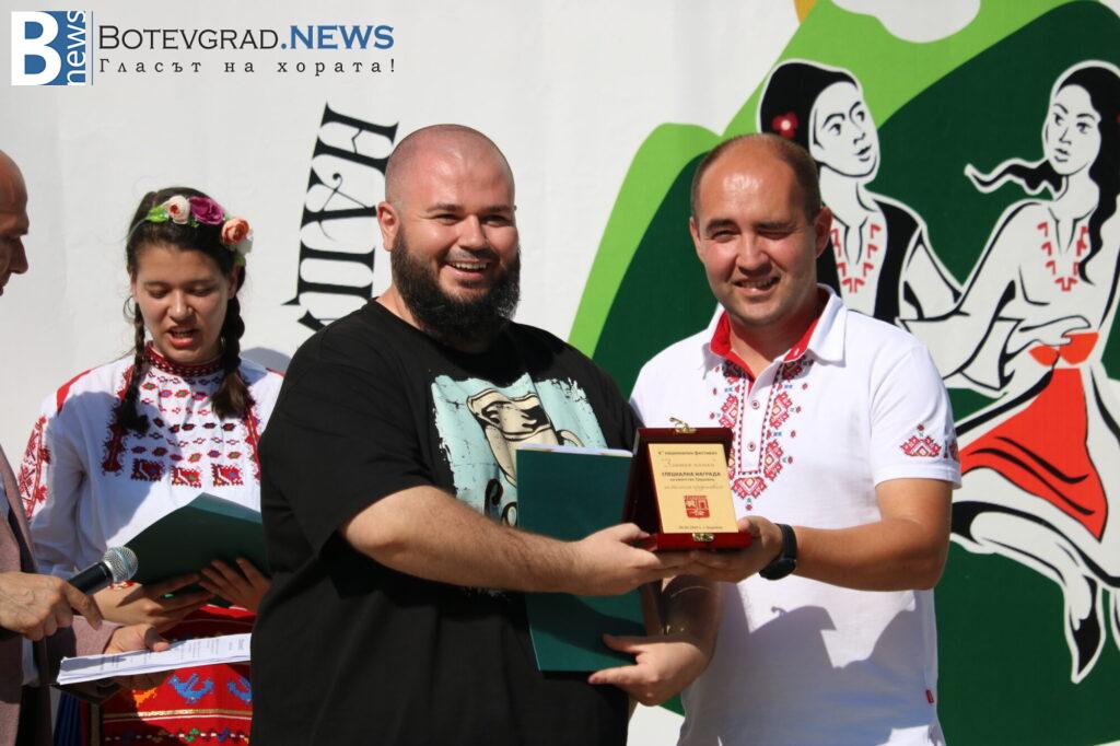 Специалната награда на Кметство Трудовец от фолклорния фестивал „Златни нишки“ бе връчена от кмета Еленко Иванов на Марко Стойкович – худ.ръководител на Фолклорен състав „Црнилович“ – Сърбия. Фолклорният състав получи парична награда от 300 лв. , грамота и приз. Наградата на Община Ботевград отиде при Фолклорен танцов състав „Лудо Малинско“, който получи 500 лв. парична награда, приз и грамота.