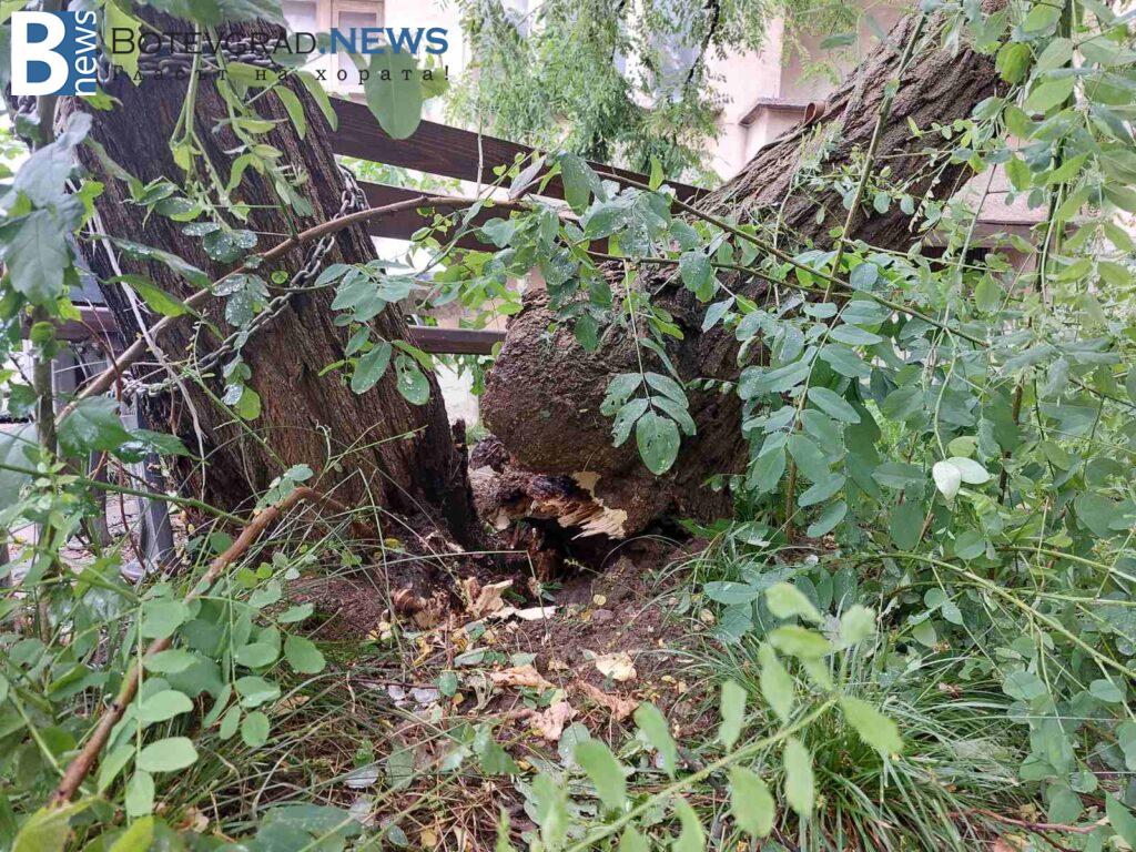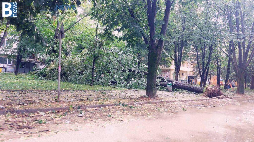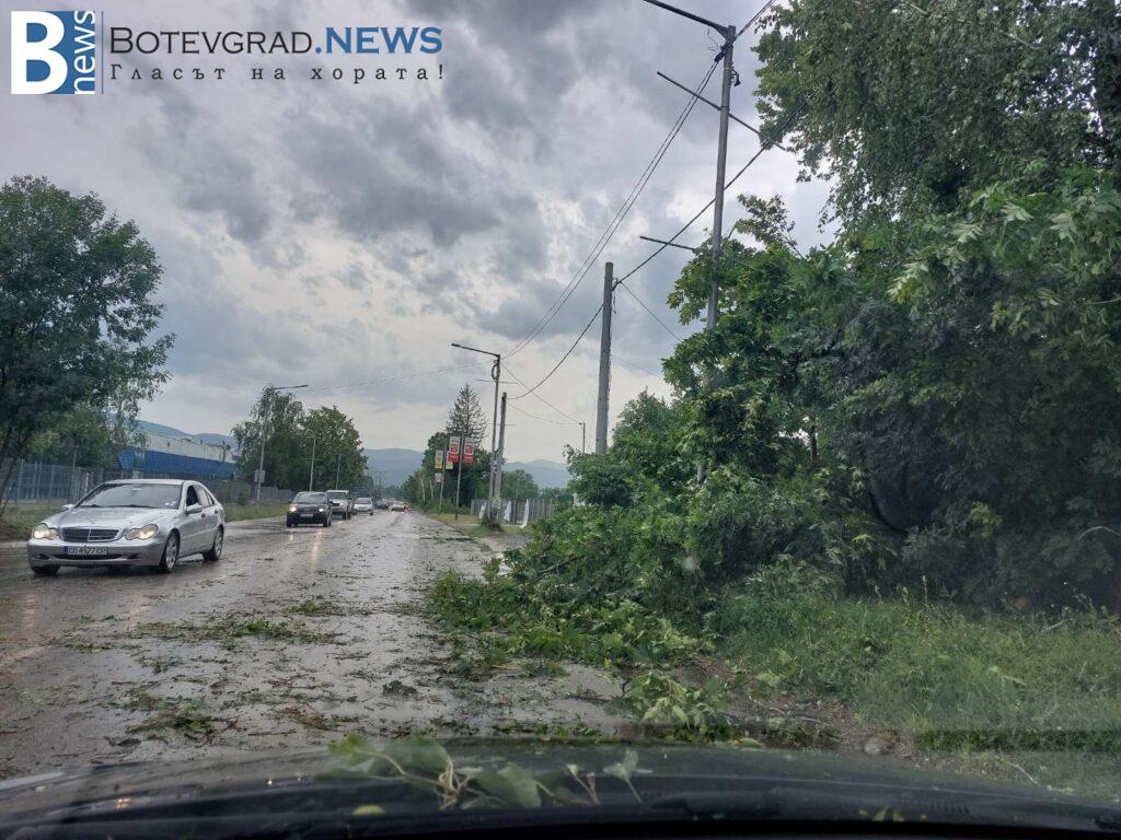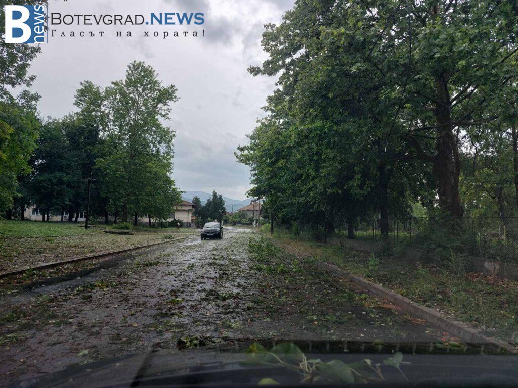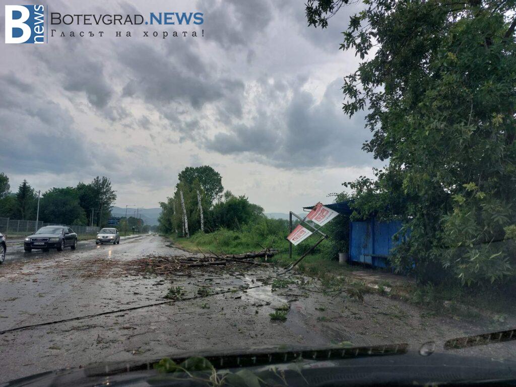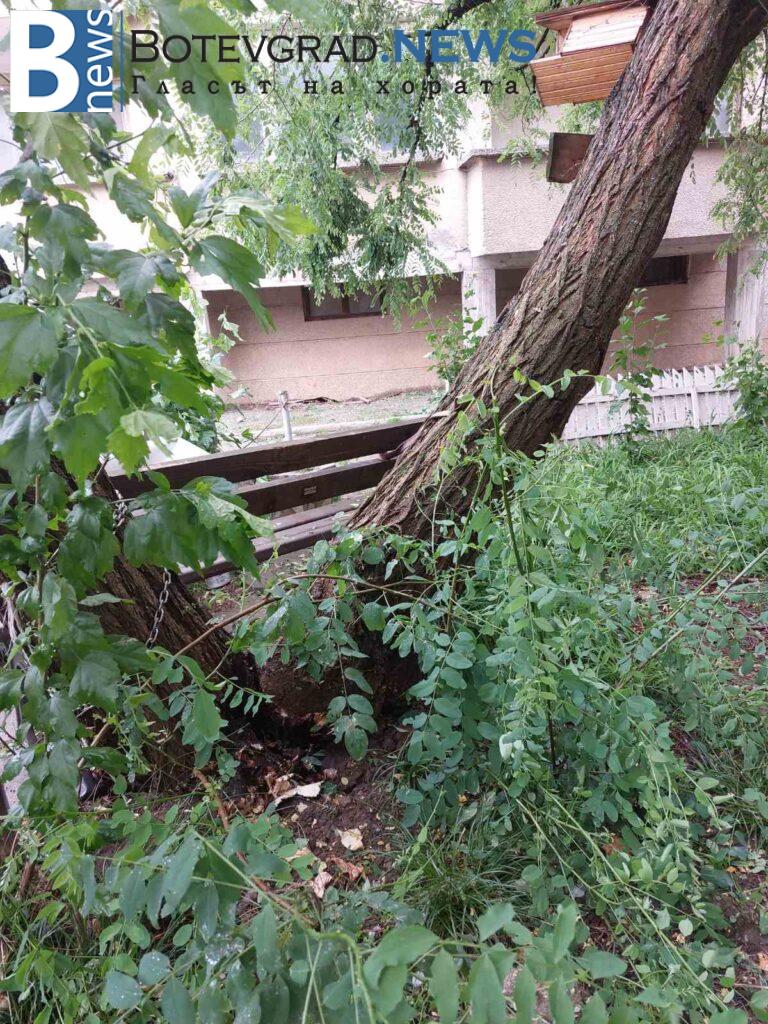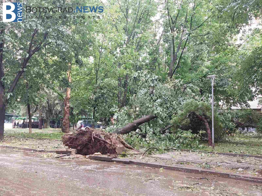В резултат на градушката в Ботевград има паднало дърво на бул. „Цар Освободител“ (близо до Съриевския блок). По снимките е видимо, че при падането корените му са повдигнали асфалт, земна маса, бордюри и павета. Друго паднало дърво е в междублоково пространство на ул. „Патриарх Евтимий“, което се е подпряло на трафопост, който е непосредствено до пицария на самата улица. Бурята събори дърво и в Градския парк.