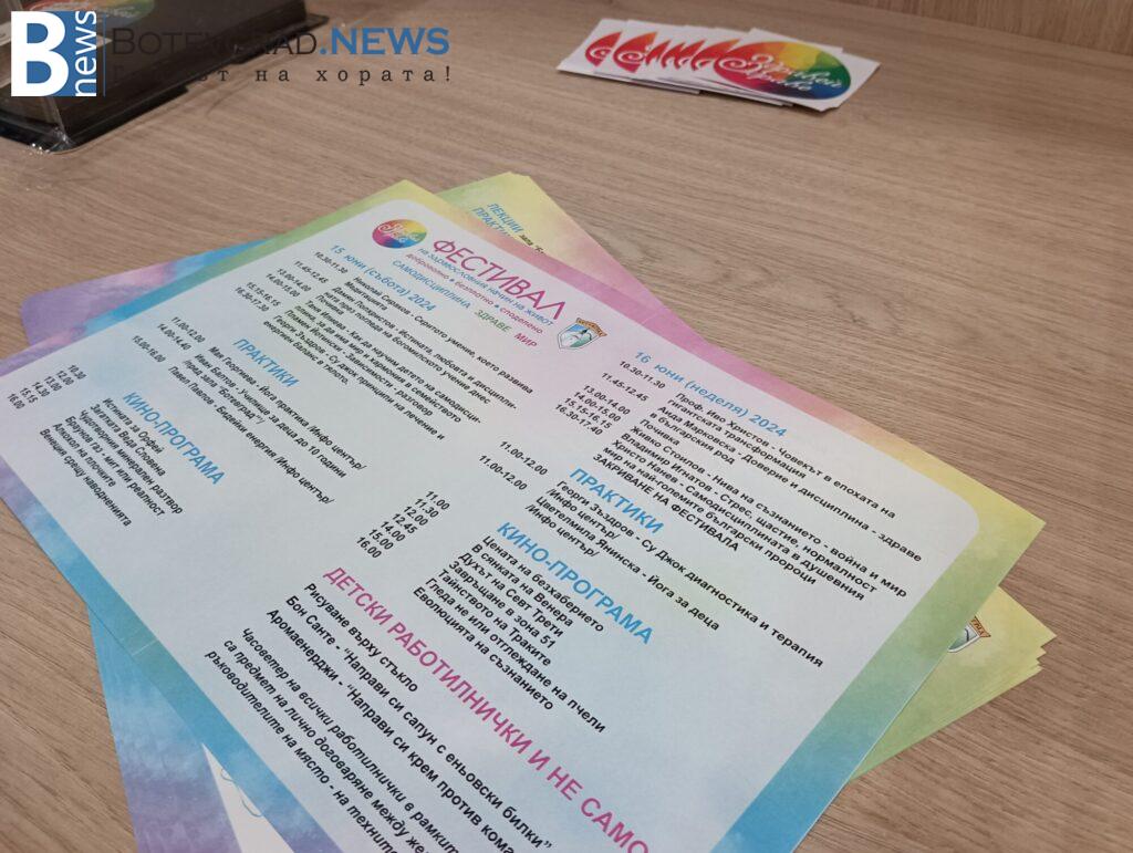 В програмата на събитието бяха предвидени и се проведоха безплатни практики по йога за деца и йога за възрастни, Су-джок терапия, енергийни упражнения, дихателни техники, тематични беседи и кино. Междувременно пред читалището в Ботевград, както и във фоайето му, е разположен базар, на който посетителите ще могат да си закупят различни продукти, обвързани с темата на фестивала, а именно – здравето.
