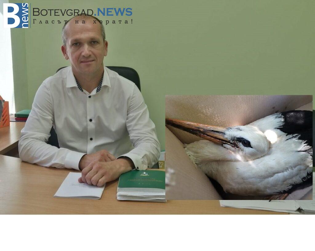 Спасовден. Четвъртък – 13 юни 2024г. Към 16.30ч се изсипва убийствена градушка над Ботевград и околните села. Сериозно пострадали са голяма част от щъркелите в почти всички населени места. Огромен късмет обаче се случва за женски щъркел, обитаващ комина при търговските складове срещу болницата. Птицата била паднала от гнездото, вероятно ударена по главата от голям леден къс при градушката. Минавайки с автомобила си Герасим Грозев забелязва щъркела, паднал на пътя и за да не го сгази, спрял и го взел. Отишъл веднага при д-р Черняшки, който предприел незабавни действия по спасяването му. Щъркелът бил с изпаднал трети клепач, с кръвосъсиреци в окото и неадекватен. Ветеринарният лекар изсушил и затоплил птицата. Инжектирал противошоково лекарство, поставил антибиотик през устата и оставил пострадалата птицата под наблюдение в кабинета си на топло. След няколко часа се обадил на семейство от Трудовец, което има вече опит в грижите за щъркел и го приемат във волиерата си. Майката щъркел отказва първите дни да се храни, но е в по-добро състояние. Още същия ден, на 13 юни, д-р Черняшки потърсил съдействие от ОП БКС- за предоставяне на вишка. Качил се до гнездото, за да провери състоянието на малките щъркелчета, които били във видимо добър вид. На следващия ден пак направил проверка. Заради падналия дъжд щъркелчетата били подгизнали във вода и кал. Бащата го нямало, за да се грижи за тях и д-р Черняшки веднага предприел свалянето им и ги преместил в кабинета си. Оказал им необходимите грижи – изсушил ги и ги нахранил с пилешка кайма, специално приготвена, съвсем безплатно от месарят Пламен. Тъй като бащата не се появил 36 часа, със съдействието на еколога на общината -Ева Нишева двете щъркелчета са транспортирани в Спасителния център на „Зелени балкани“ в Стара Загора. Два дни след градушката бащата се завърнал в гнездото и до днес чака своето семейство. Но дали ще го дочака, или ще отлети на юг през август?! Предстои да разберем. А грижите, които д-р Илин Черняшки положи за щъркелите, са негово удовлетворение, че е помогнал на бедстващите птици с каквото е могъл – с лекарства, с отделено време, с голямо желание!