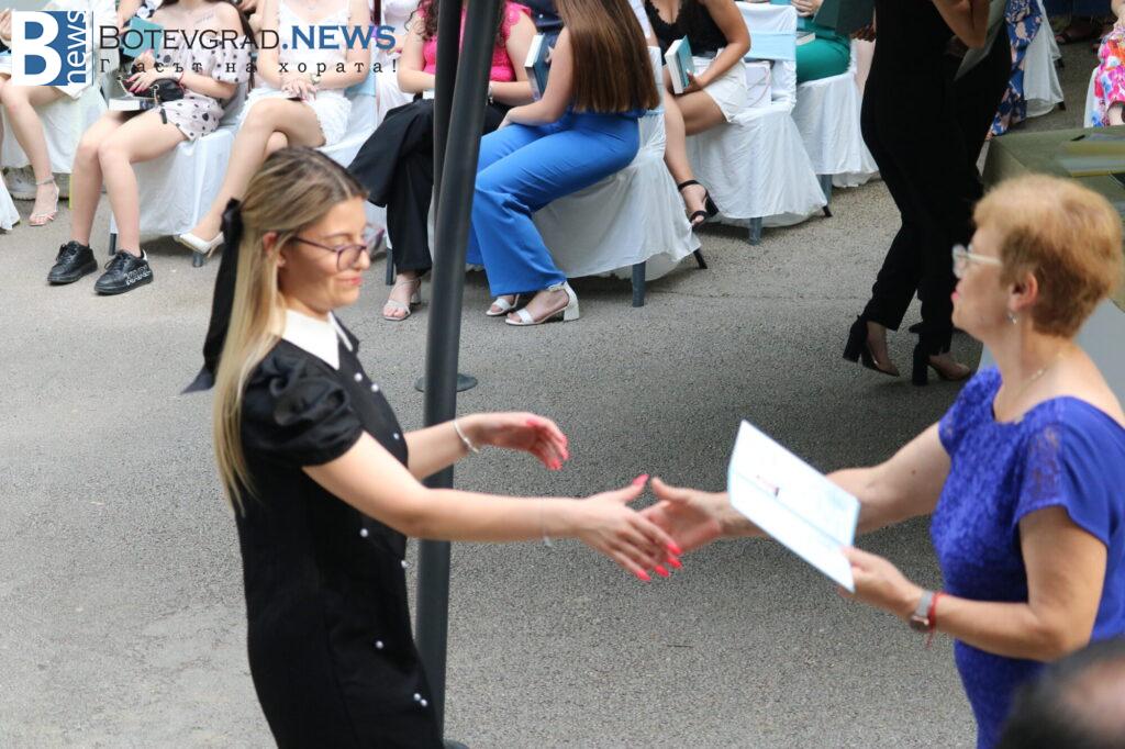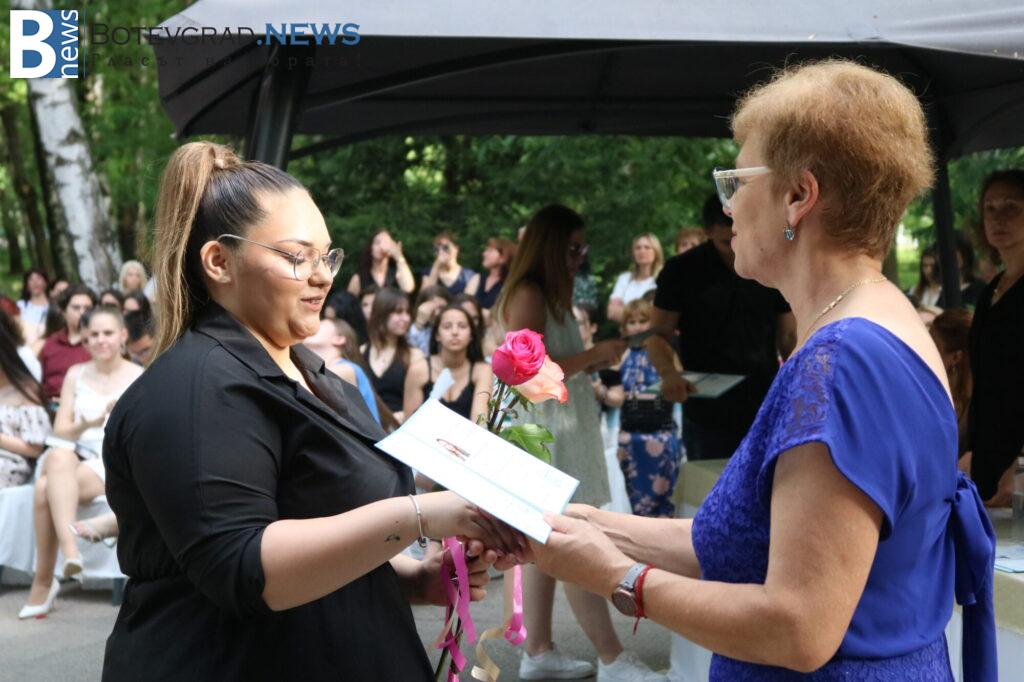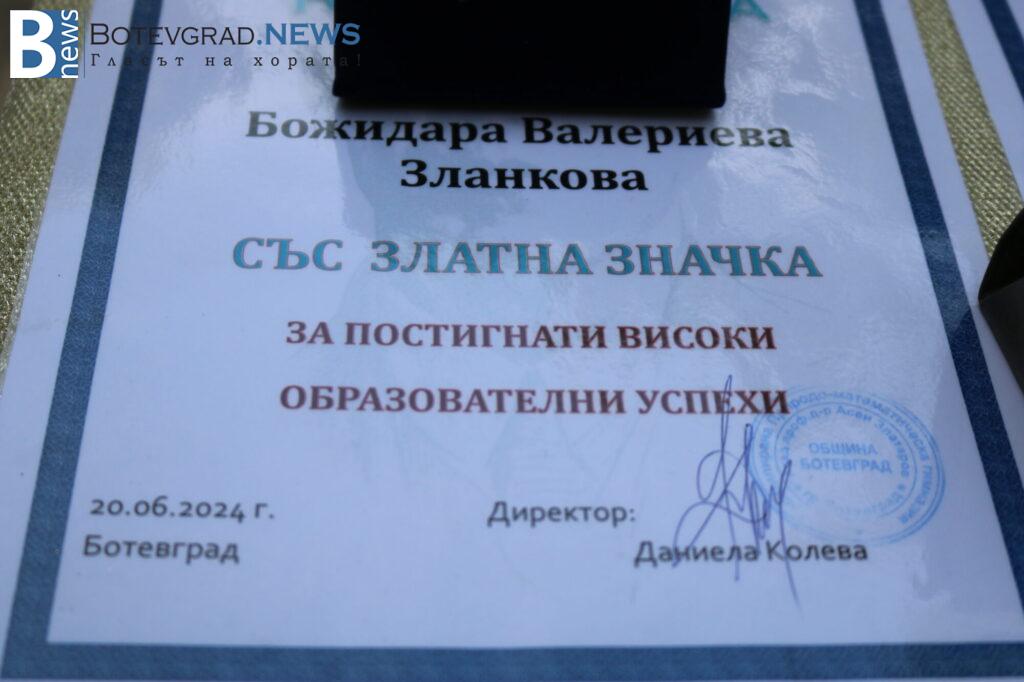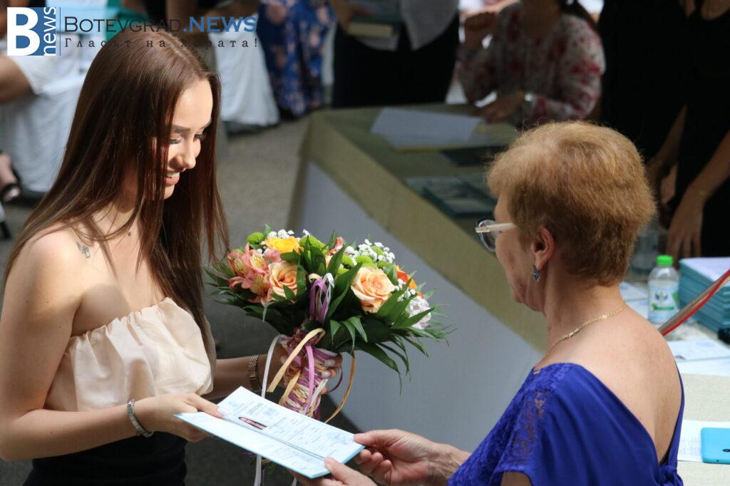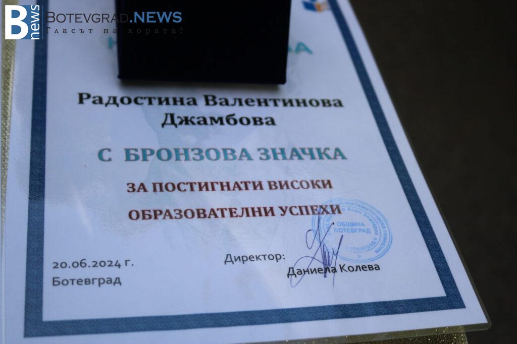 За постигнати високи образователни успехи бяха удостоени трима дванадесетокласници – със златна значка Божидара Зланкова, със сребърна значка – Деси Докова, с бронзова значка – Радостина Джамбова.