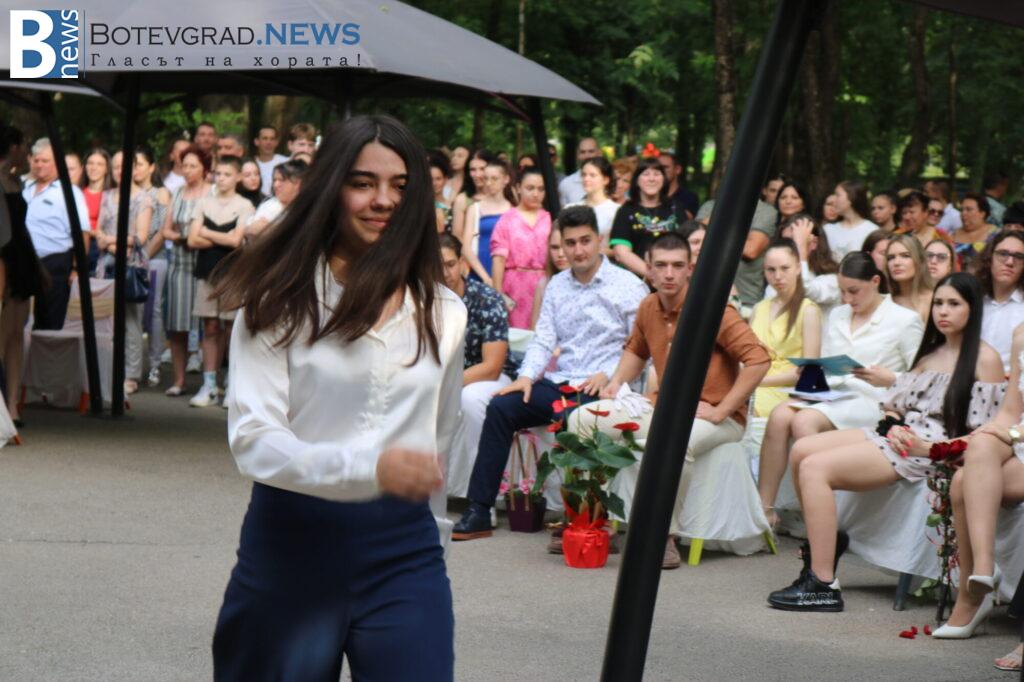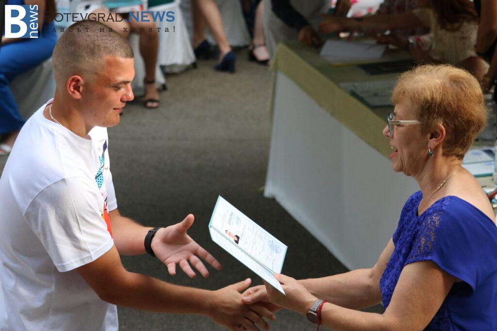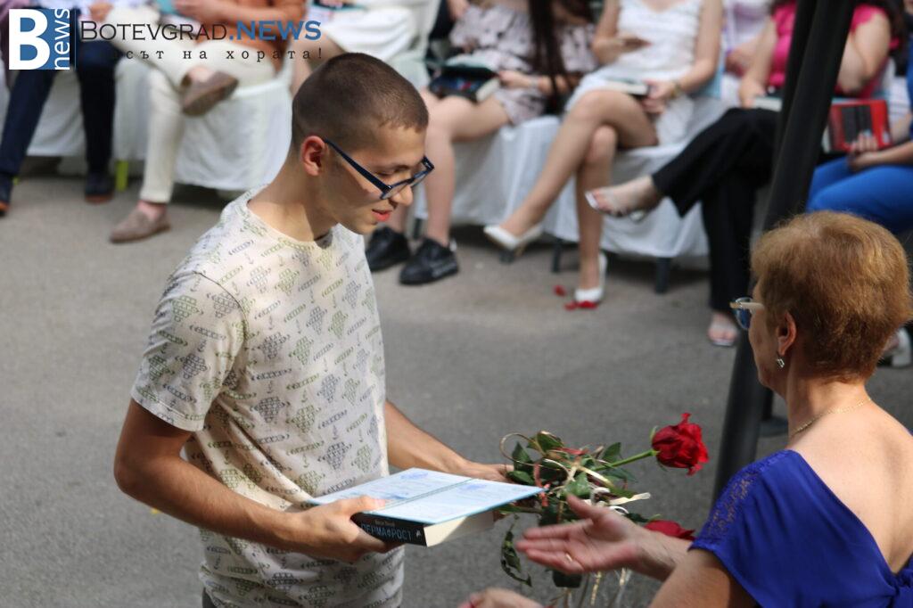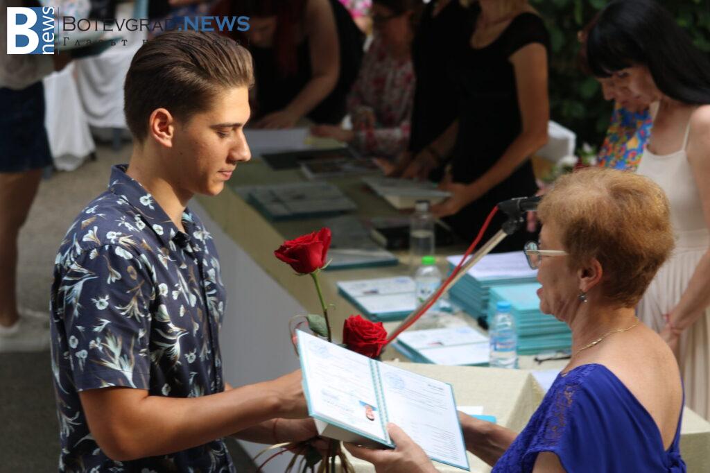 Допуснатите до Държавни зрелостни изпити /ДЗИ/ бяха 86 ученици в дневна форма, един в самостоятелна форма на обучение и двама от минали години. Успешно издържаха изпитите 87 зрелостници. Днес бяха раздадени дипломи на 84 абитуриенти. Те са се явили на общо единадесет предмета. Държавен зрелостен изпит по български език и литература са държали 88 ученици и са постигнали среден успех Много добър 4,83. Деветнадесет ученици са държали ДЗИ по английски език (В2) и са със среден успех Мн. добър 5,29. Ниво В1.1 са държали 24 зрелостници и са постигнали общ успех Отличен 5,55. Средният успех на зрелостният изпит по математика е Мн. добър 5,06, а явилите се н него са двама ученици. По история и цивилизации успехът е 5,53; по география и икономика – 4,21, философски цикъл – 4,20, биология и здравно образование – Мн. добър 5,08, предприемачество – Мн. Добър 5, 34; биология и здравно образование /по желание/ – Добър 4,16; информационни технологии – Добър 4,43.