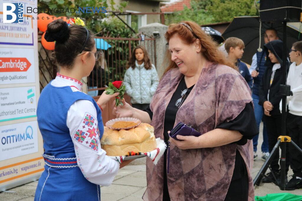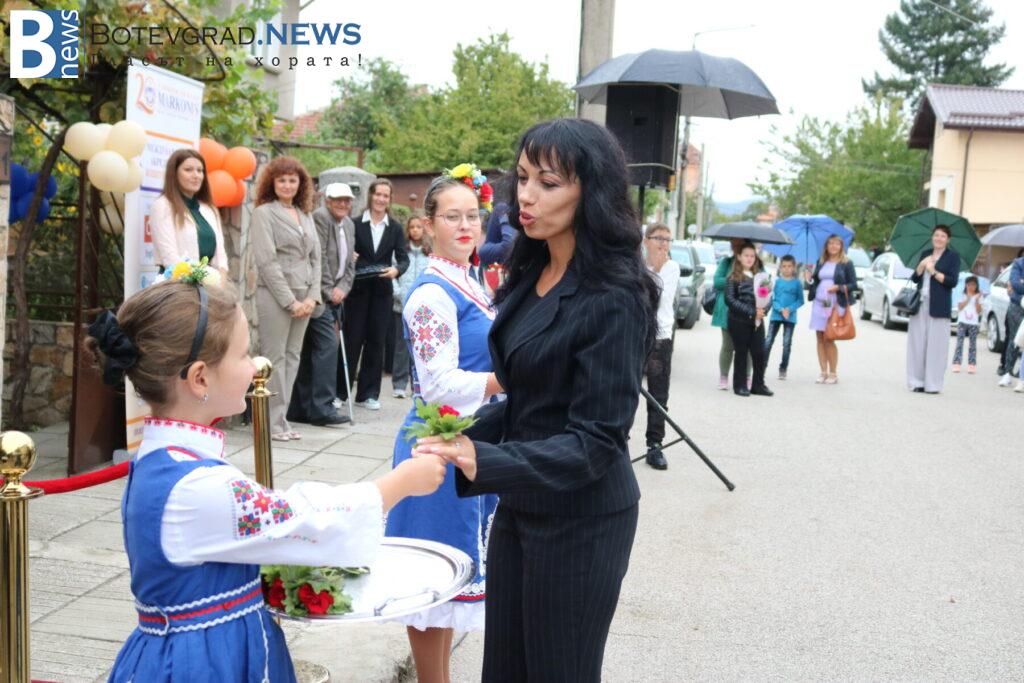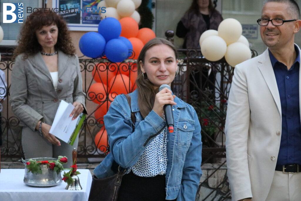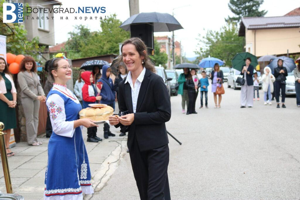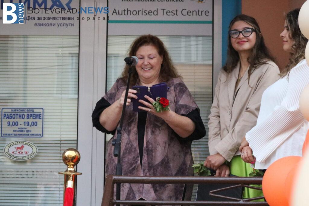 Междувременно, на церемонията пристигна чуждестранният преподавател г-жа Келса Смит, която поздрави всички за новата учебна година и съобщи, че от Езиковият ѝ център „Native Connections“ правят дарение от 800 книги за библиотеката на „Марконис“ както в Ботевград, така и в новия им клон в Етрополе.