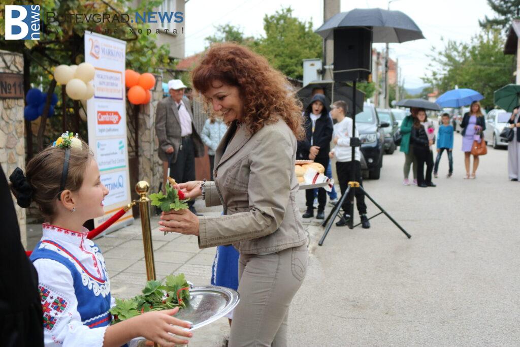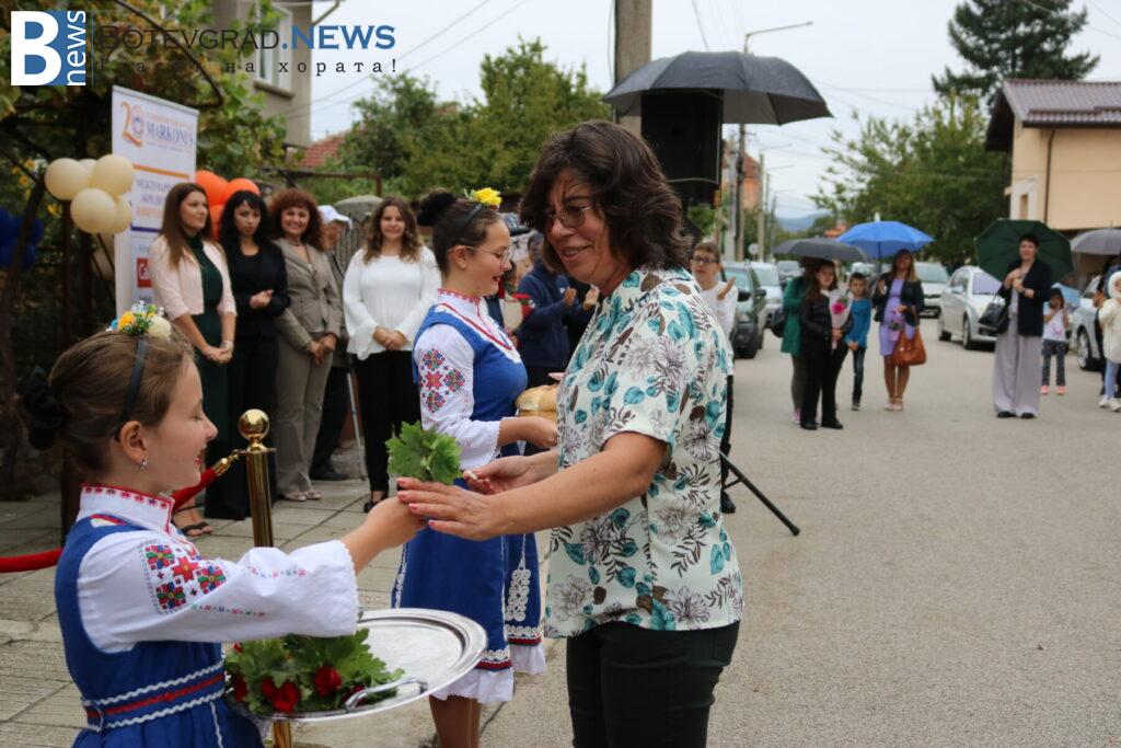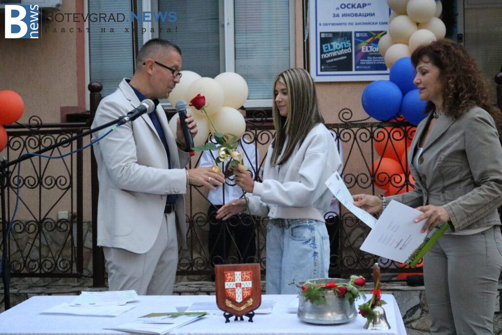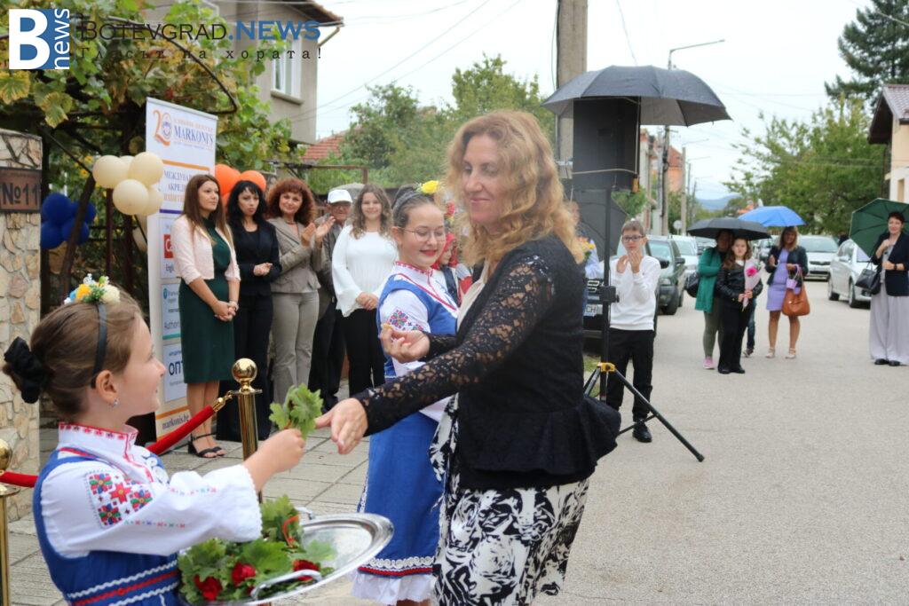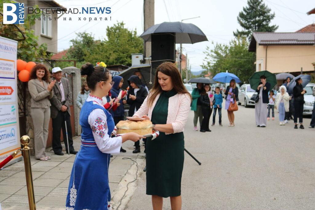 Междувременно, на церемонията пристигна чуждестранният преподавател г-жа Келса Смит, която поздрави всички за новата учебна година и съобщи, че от Езиковият ѝ център „Native Connections“ правят дарение от 800 книги за библиотеката на „Марконис“ както в Ботевград, така и в новия им клон в Етрополе.