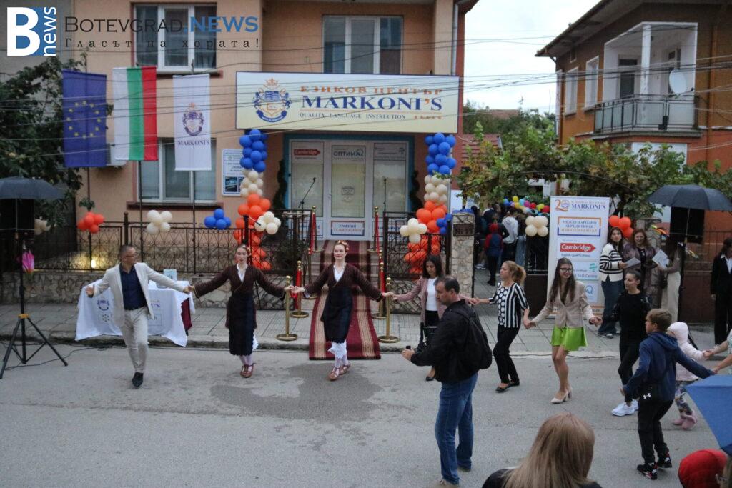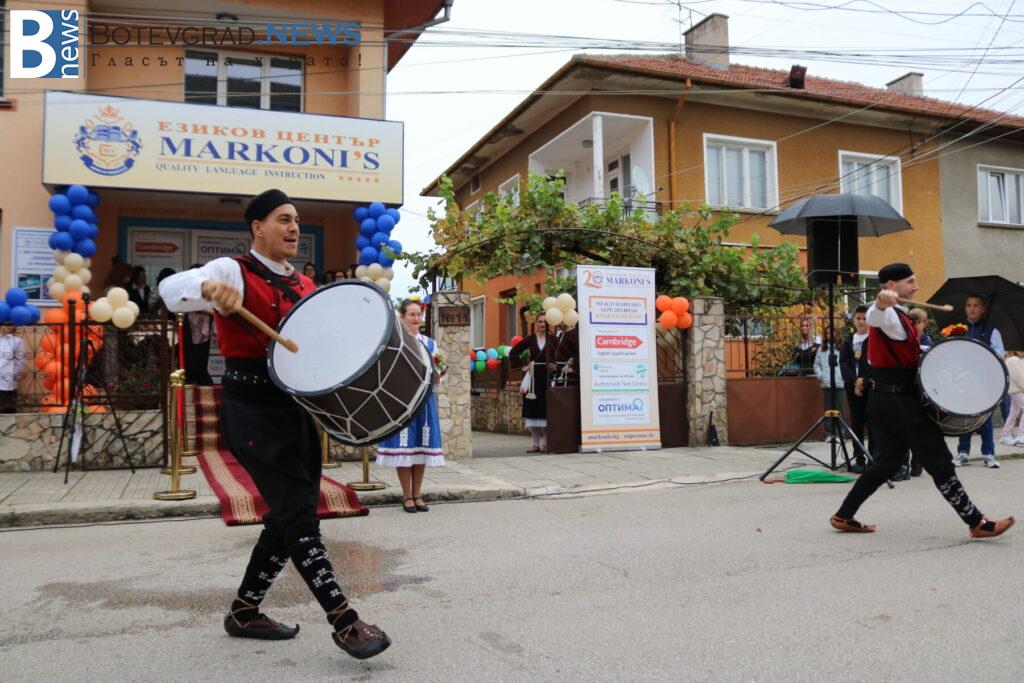 След водосвета зазвъня и първият училищен звънец в „Марконис“ за тази учебна година. С музикално и танцово участие в програмата на откриването се включиха професионален ансамбъл „Български ритми“ – София, с хореограф Радослав Тодоров, които изпълниха „Фолклорна китка“, и Мажоретен състав при НЧ „Христо Ботев 1884“ – Ботевград с ръководител Иванка Христова.