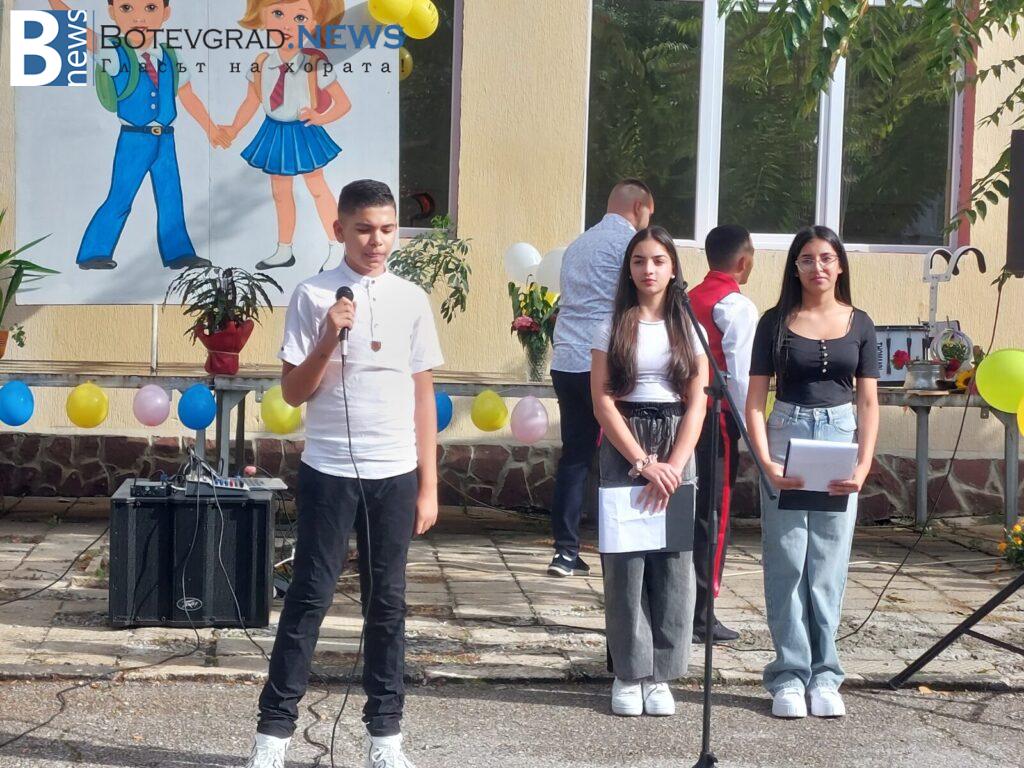 Първият учебен звънец удари в присъствието на общинското ръководство – кметът Иван Гавалюгов и председателят на Общински съвет-Ботевград, д-р Илин Черняшки. Директорът Евгения Иванова отправи благодарност към тях. „Ние сме изключително щастливи, защото такъв ремонт не е правен. Това е наша стара мечта, с която днес вече нашето училище става още по-привлекателно, за да могат все повече родители да записват децата си при нас“, каза още директорът. Към учителите тя се обърна с думите :“Вие сте много силни хора – работите, борите се, пожелавам ви сили, дръзновение и все по-често да усещате удовлетворение от своя труд“. Директорът Евгения Иванова отправи призив към учениците редовно да посещават училището, да учат с желание и да спазват хигиенни правила.