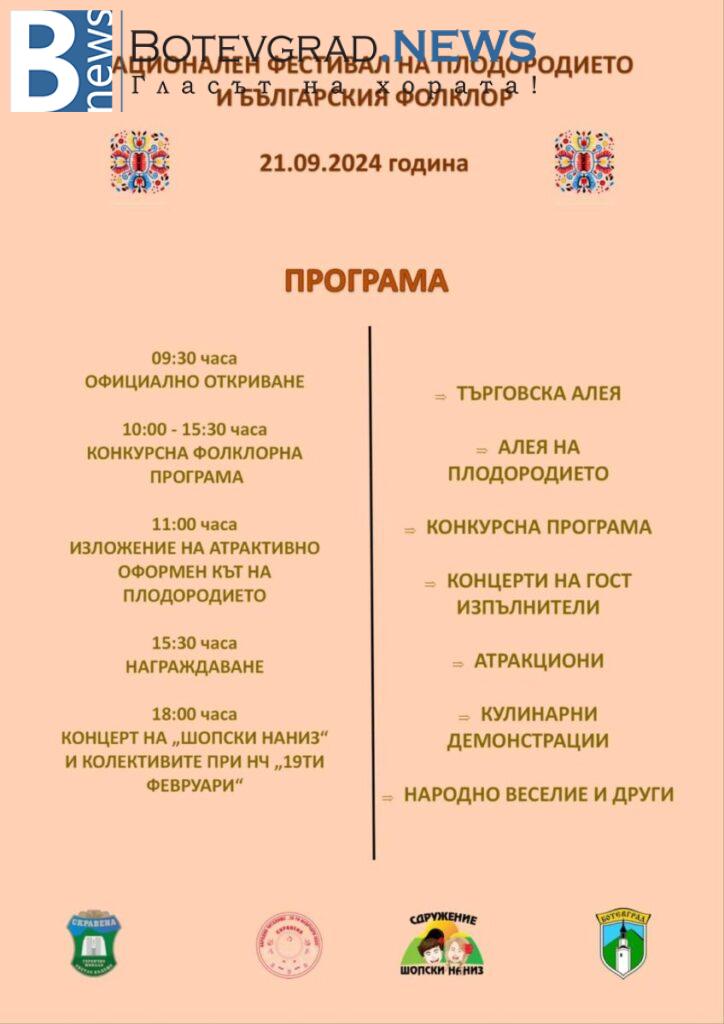 Национален фестивал на плодородието и българския фолклор 2024 в с. Скравена-програма
