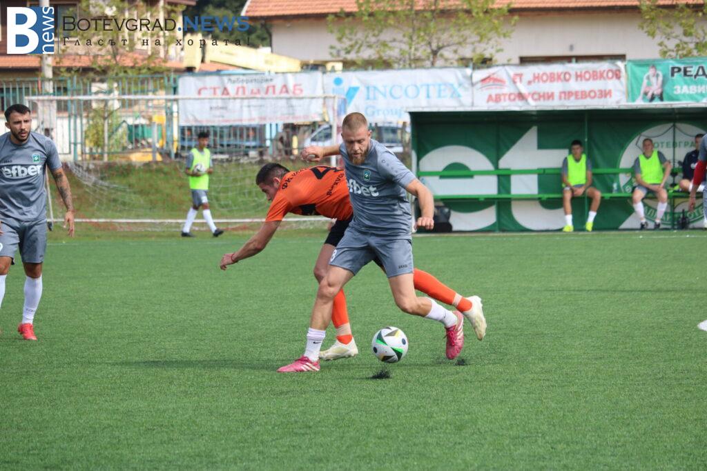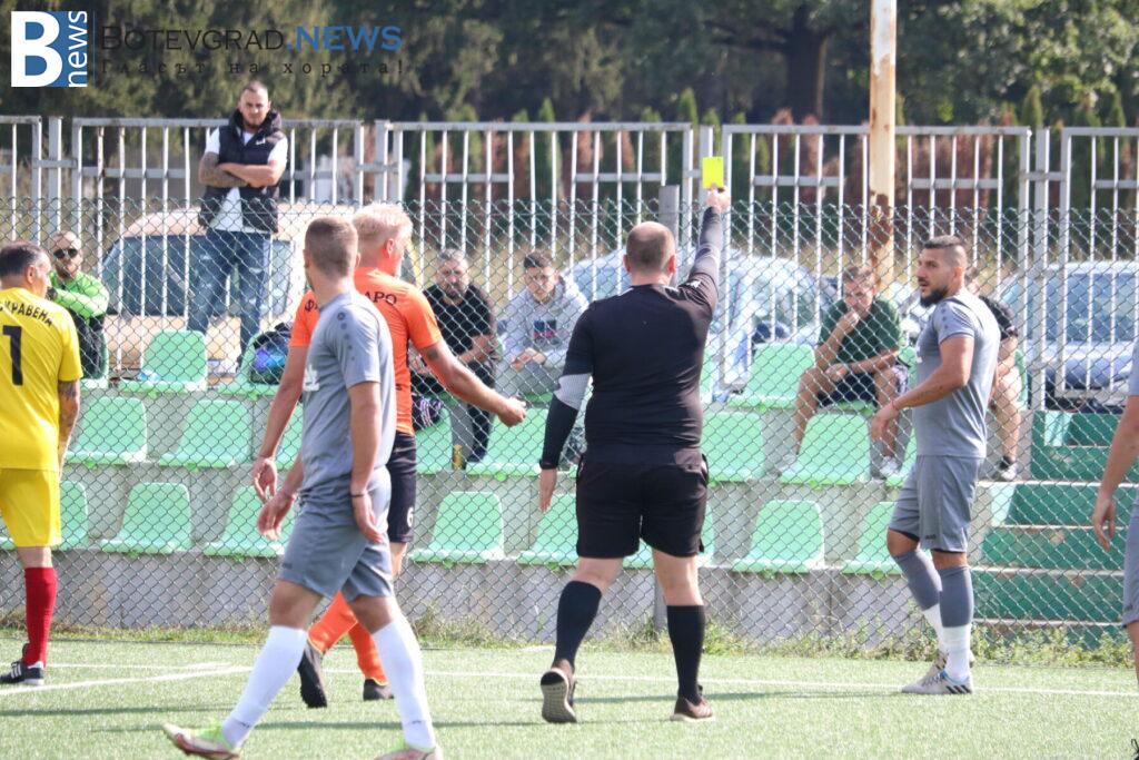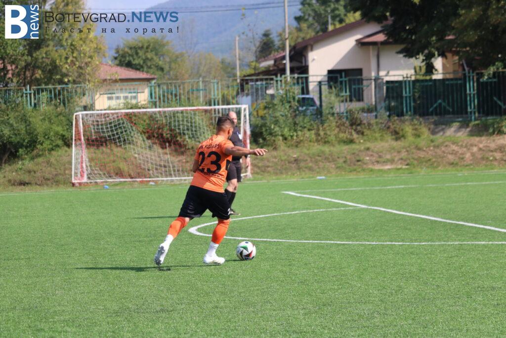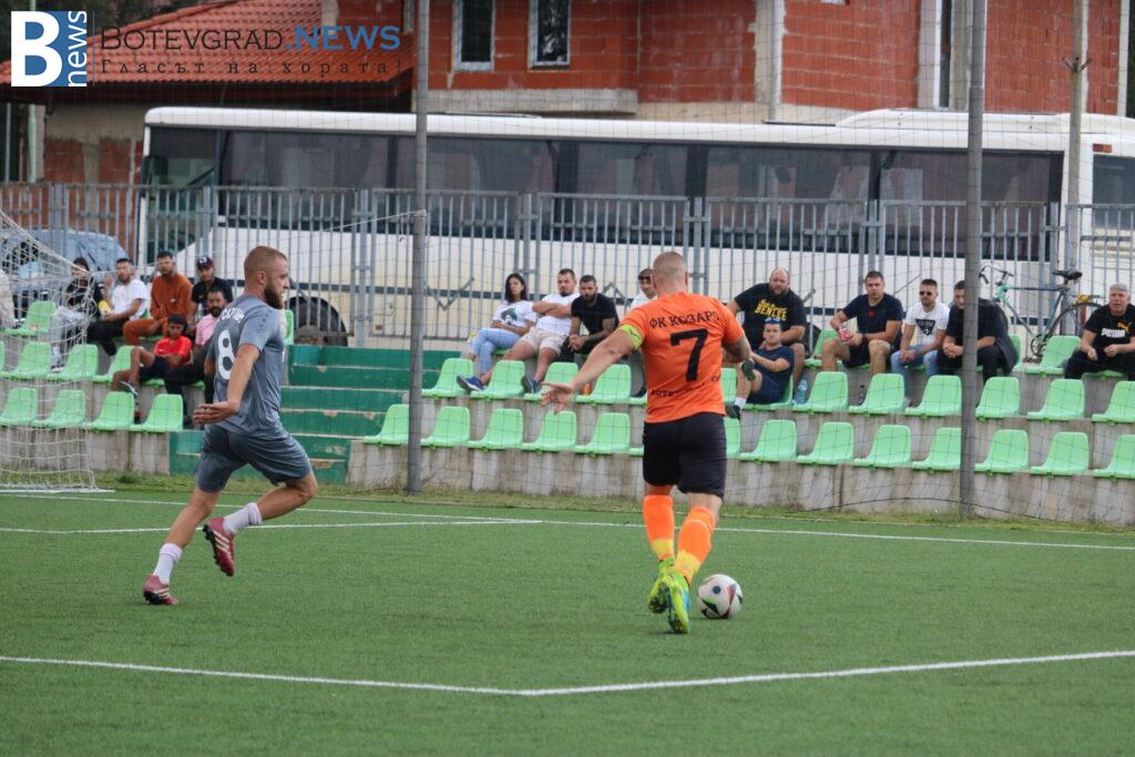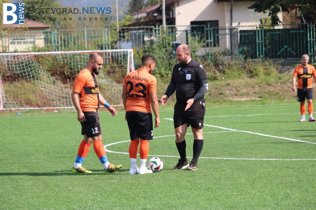 Веселин Русинов изведе отбора си напред в резултата още в началните минути на мача. Малко след гостите останаха с човек по-малко на терена, след като техен играч получи директен червен картон.