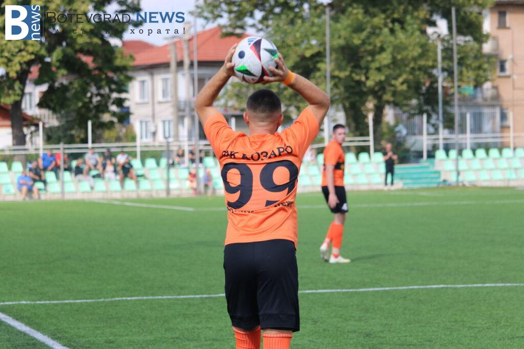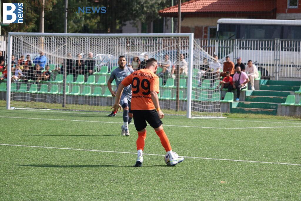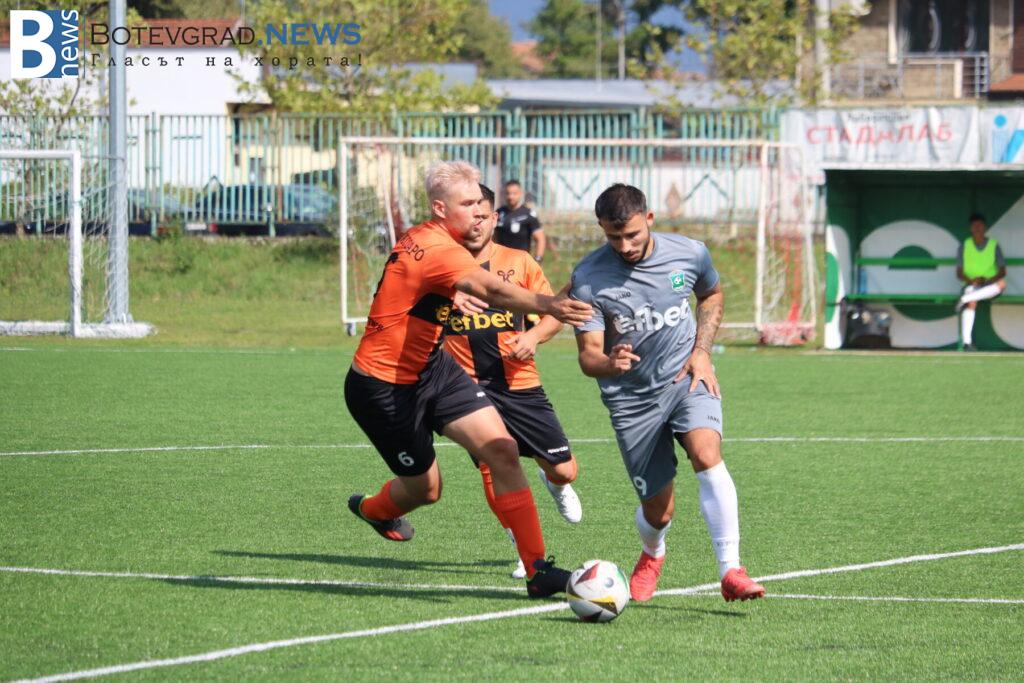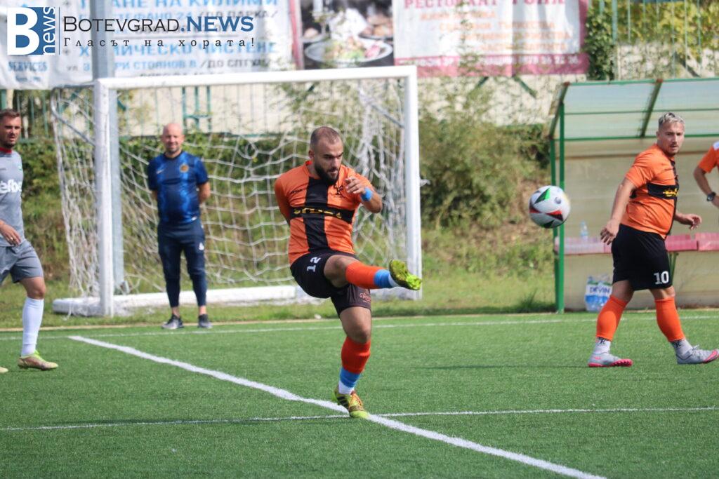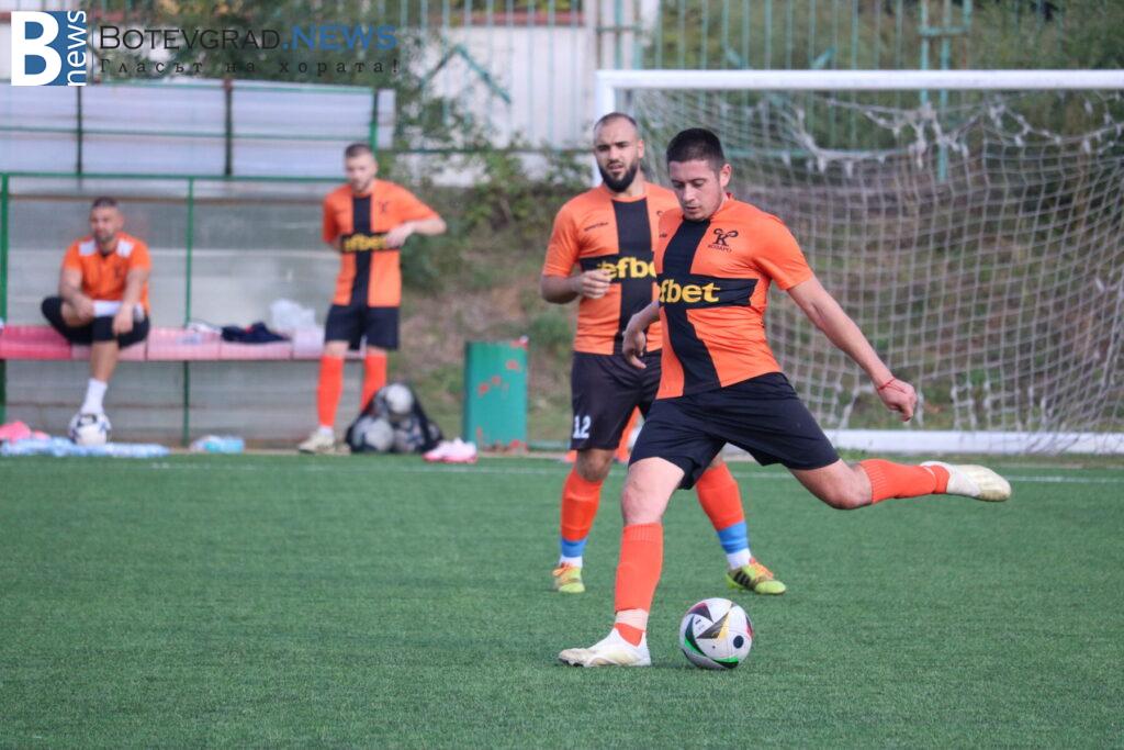 Веселин Русинов изведе отбора си напред в резултата още в началните минути на мача. Малко след гостите останаха с човек по-малко на терена, след като техен играч получи директен червен картон.