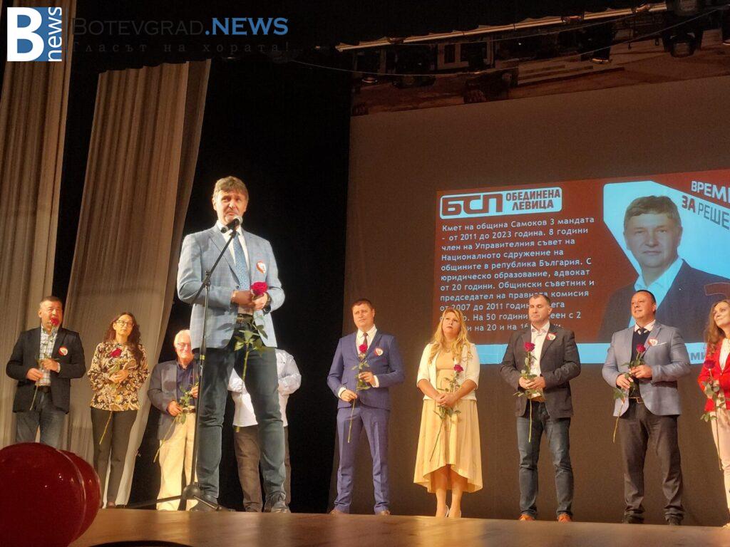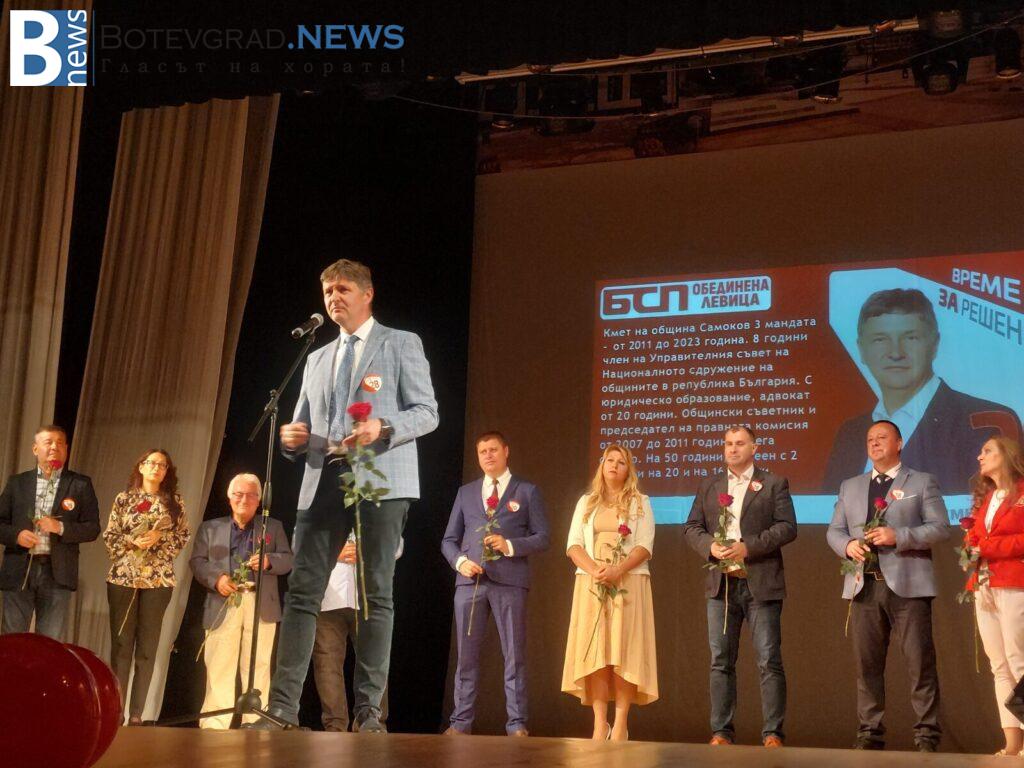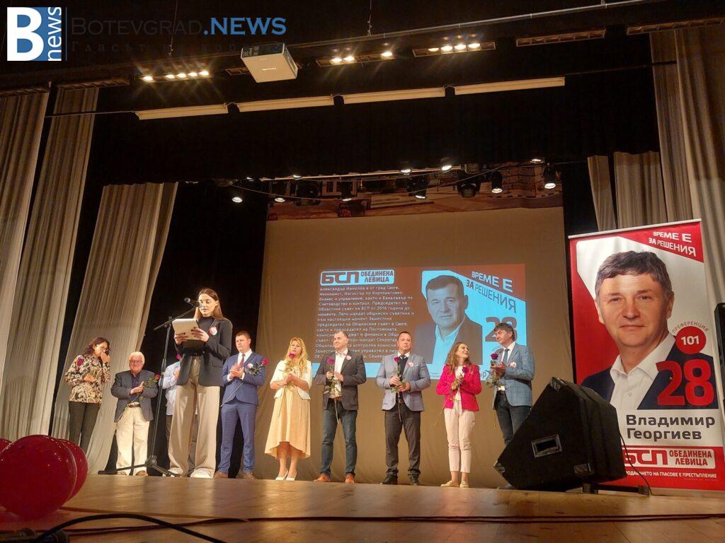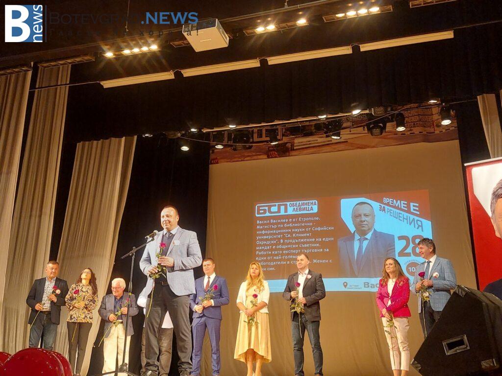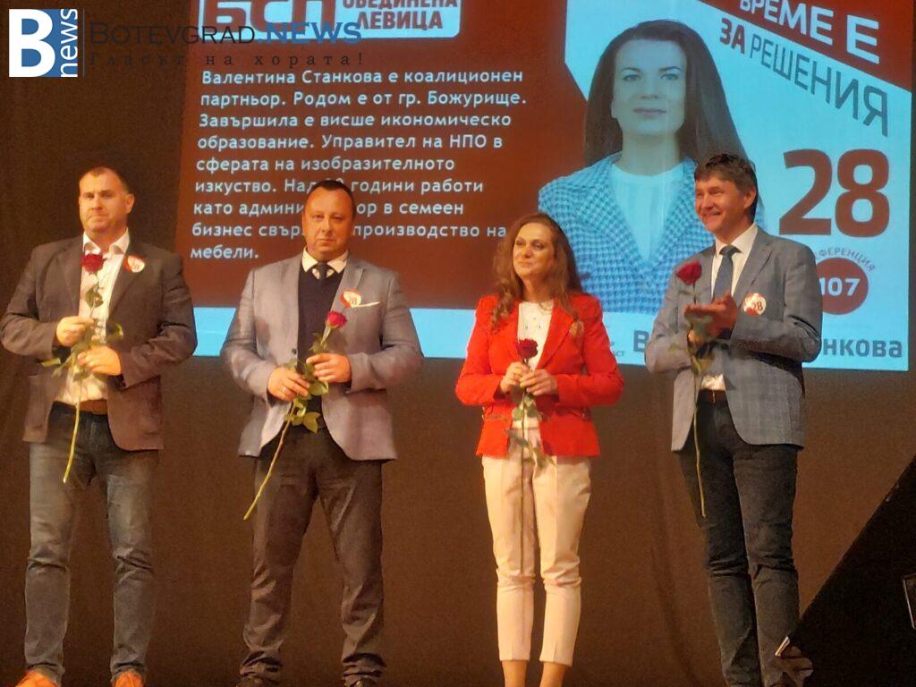 „БСП- Обединена Левица“ закри своята предизборна кампания за 26-ти МИР в Етрополе, където в препълнения салон на НЧ „Тодор Пеев“, жители и гости станаха част от един истински заряд за промяна и справедливост. Пред ентусиазираната публика, кандидатите за народни представители представиха своята визия и своите идеи за една по-социална и справедлива България.