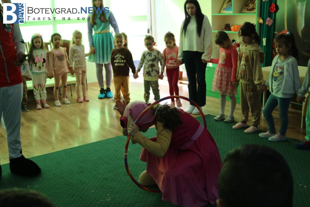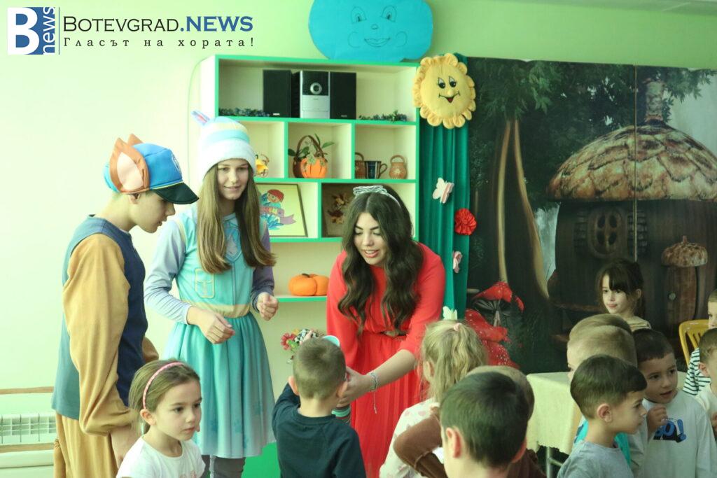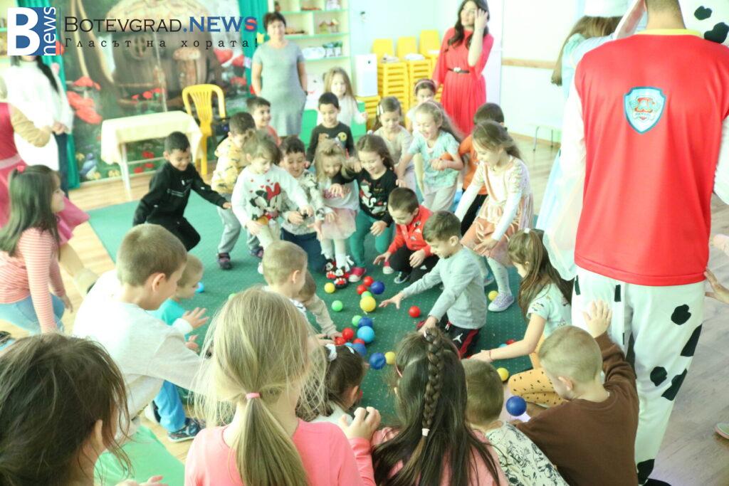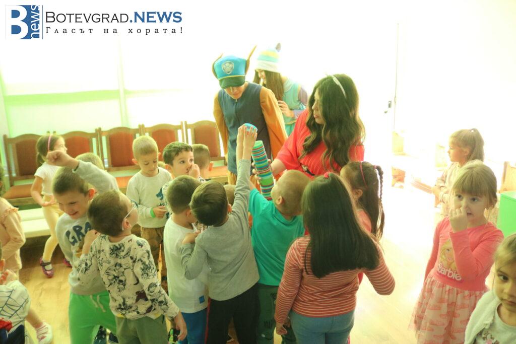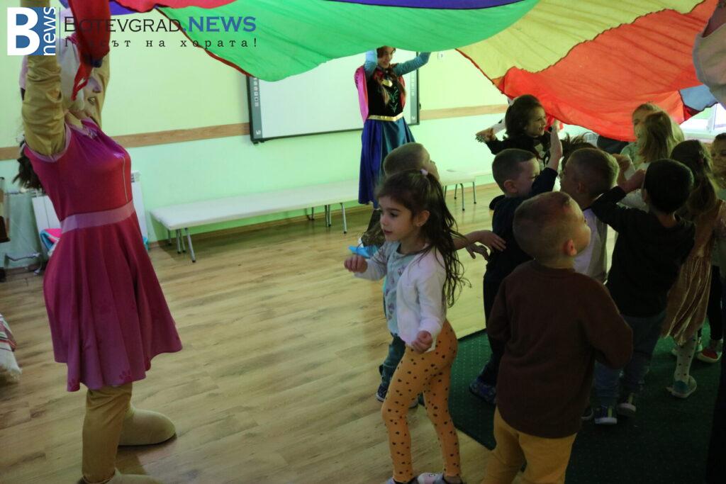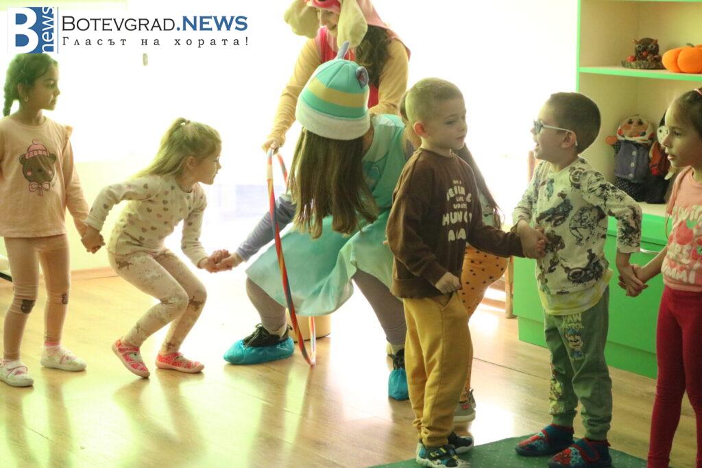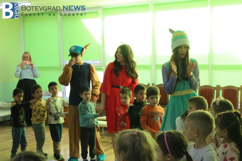 Младежите посетиха малчуганите от ДГ „Синчец“, играха с тях, танцуваха и се забавляваха.