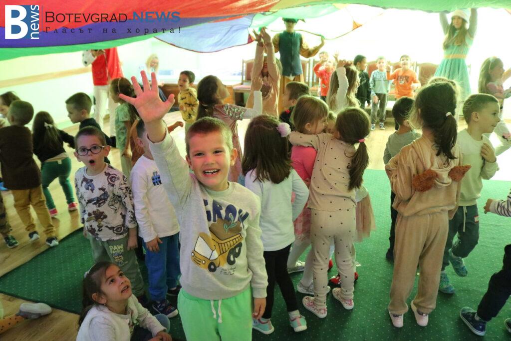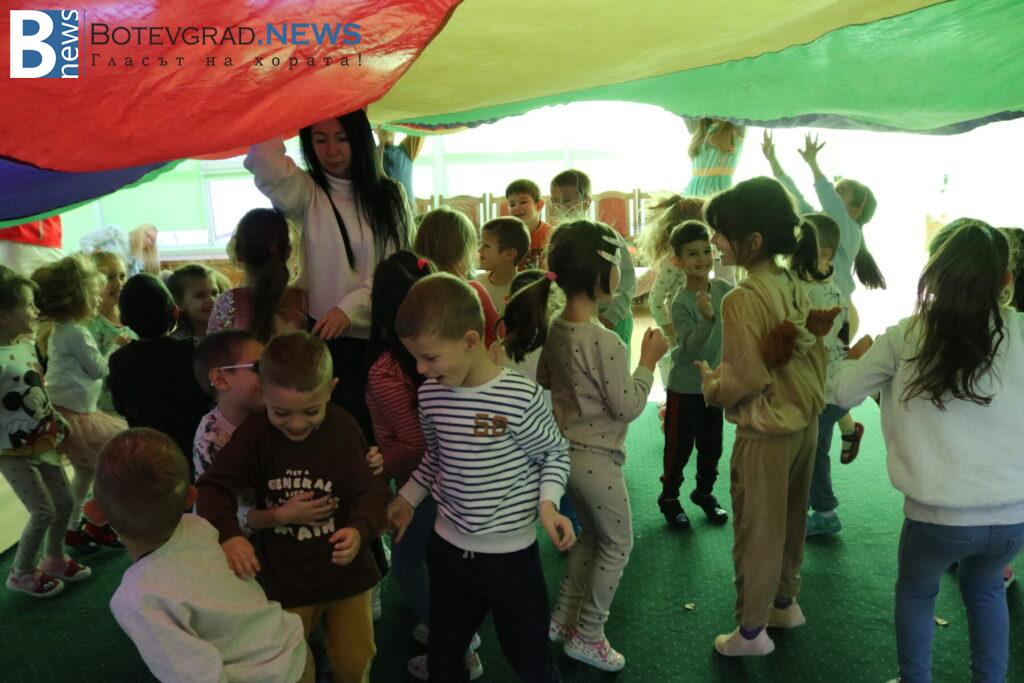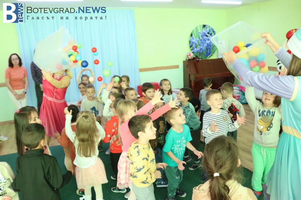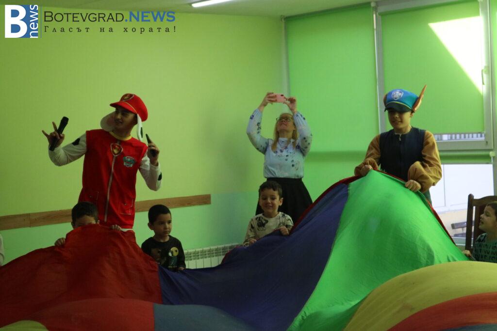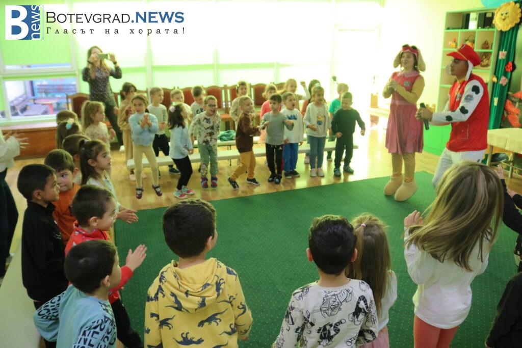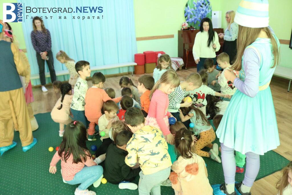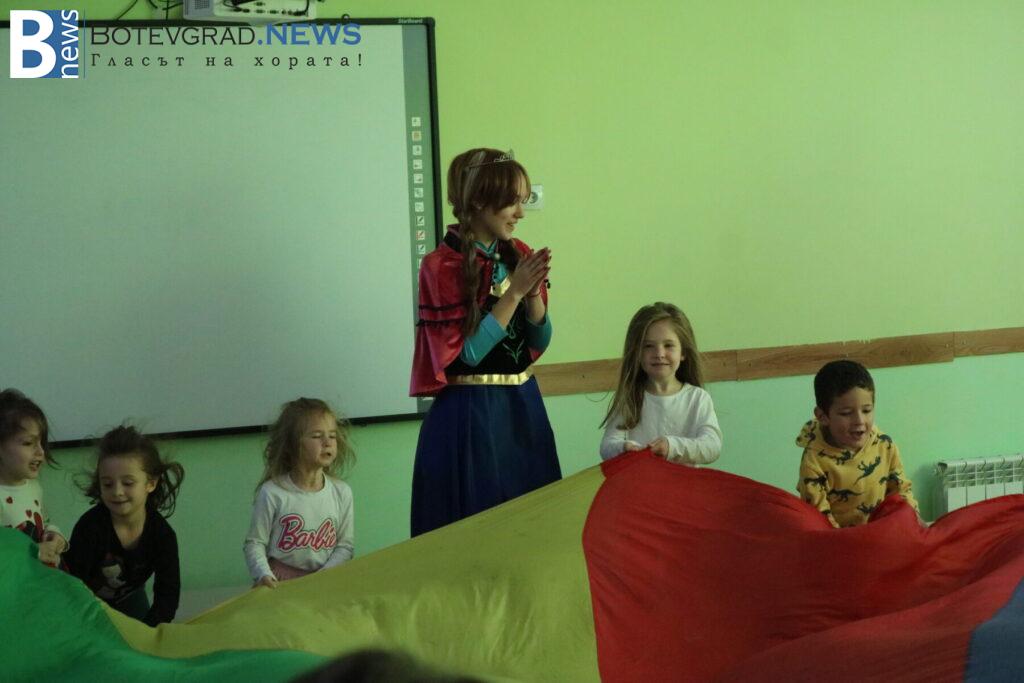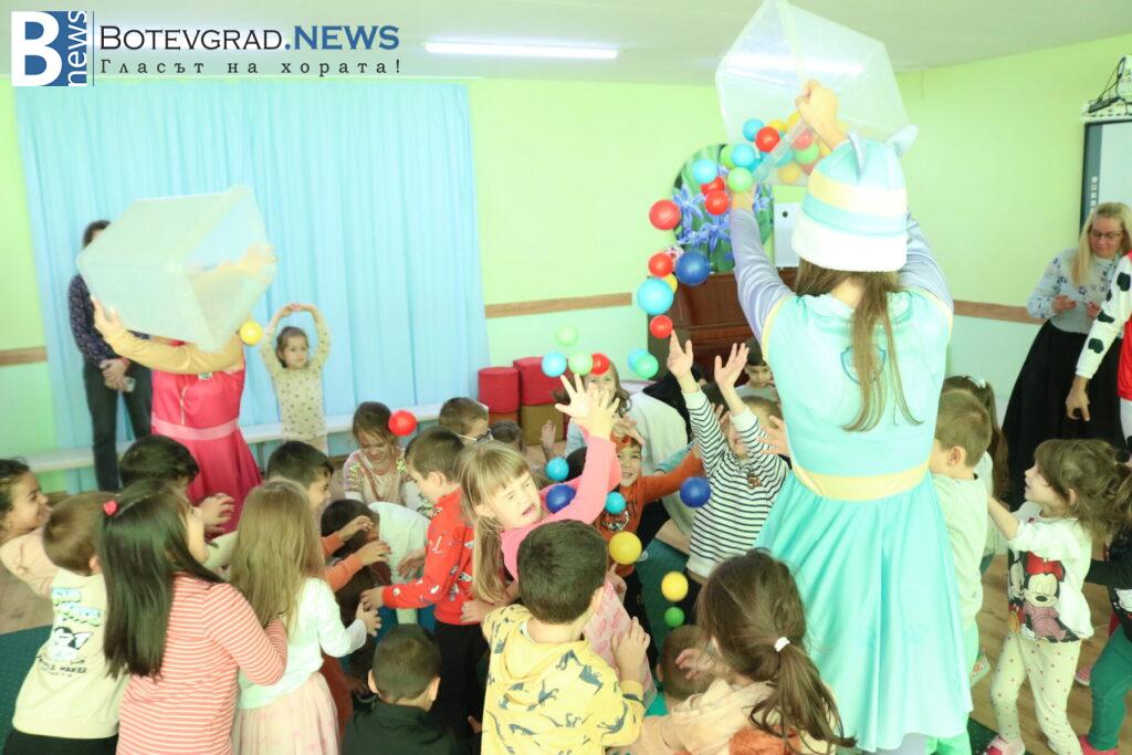 Младежите посетиха малчуганите от ДГ „Синчец“, играха с тях, танцуваха и се забавляваха.