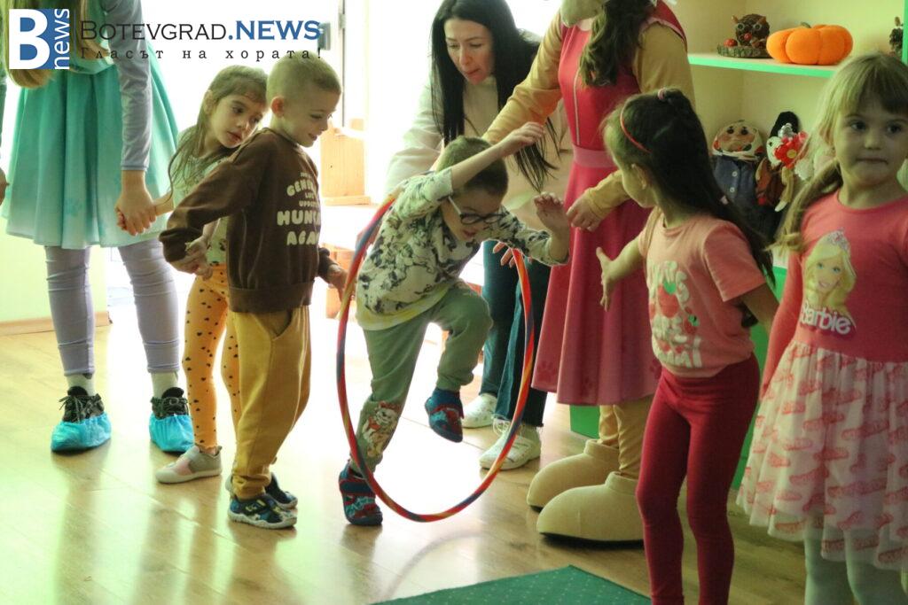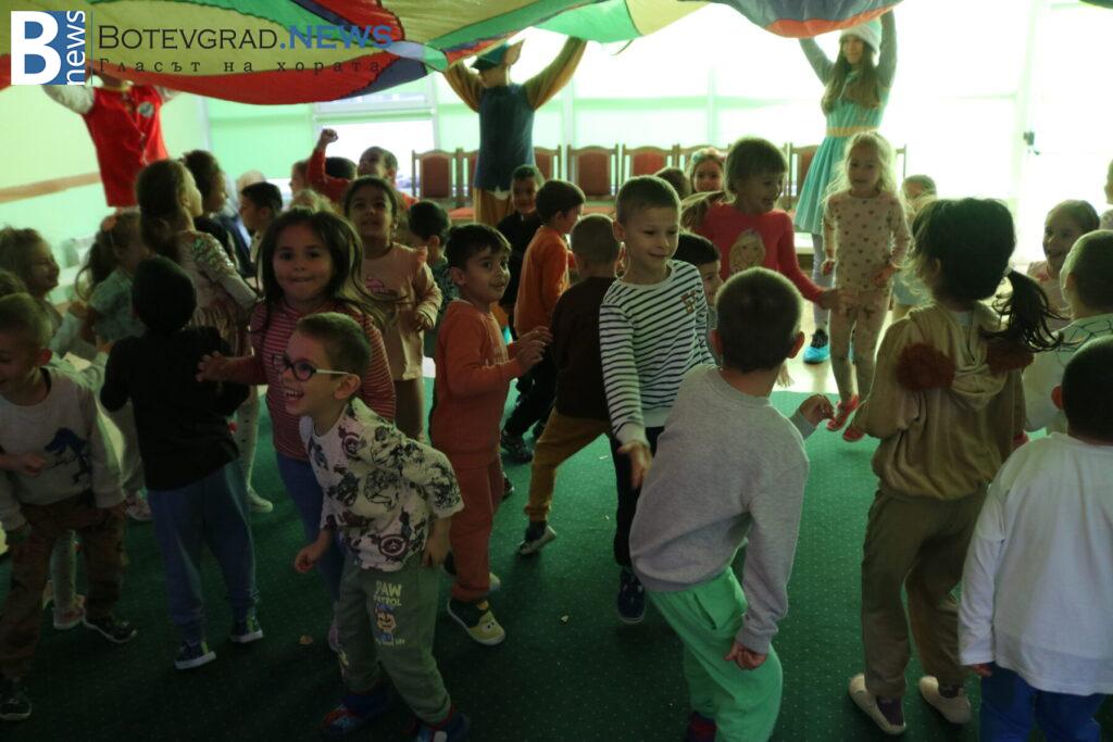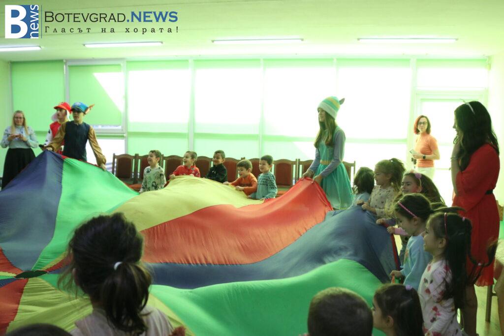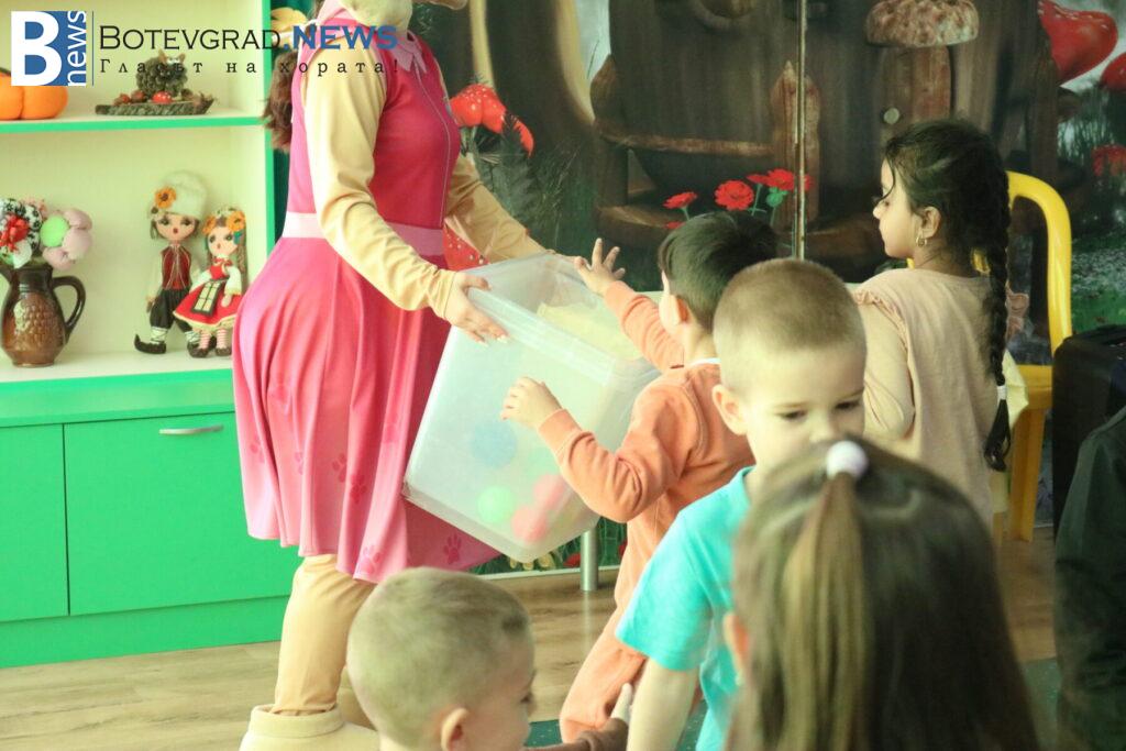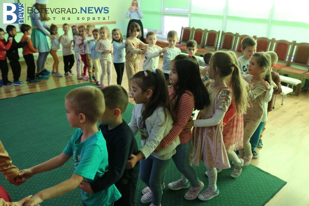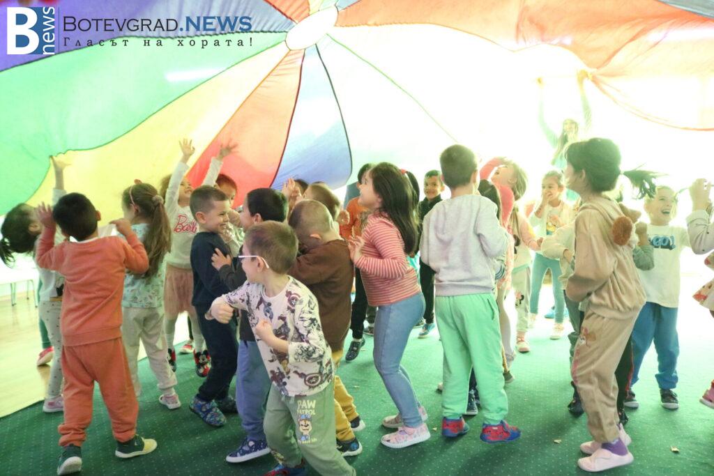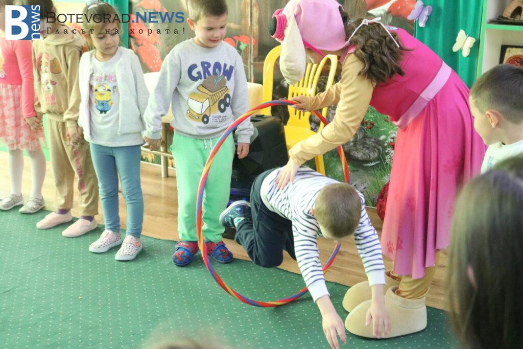 Младежите посетиха малчуганите от ДГ „Синчец“, играха с тях, танцуваха и се забавляваха.