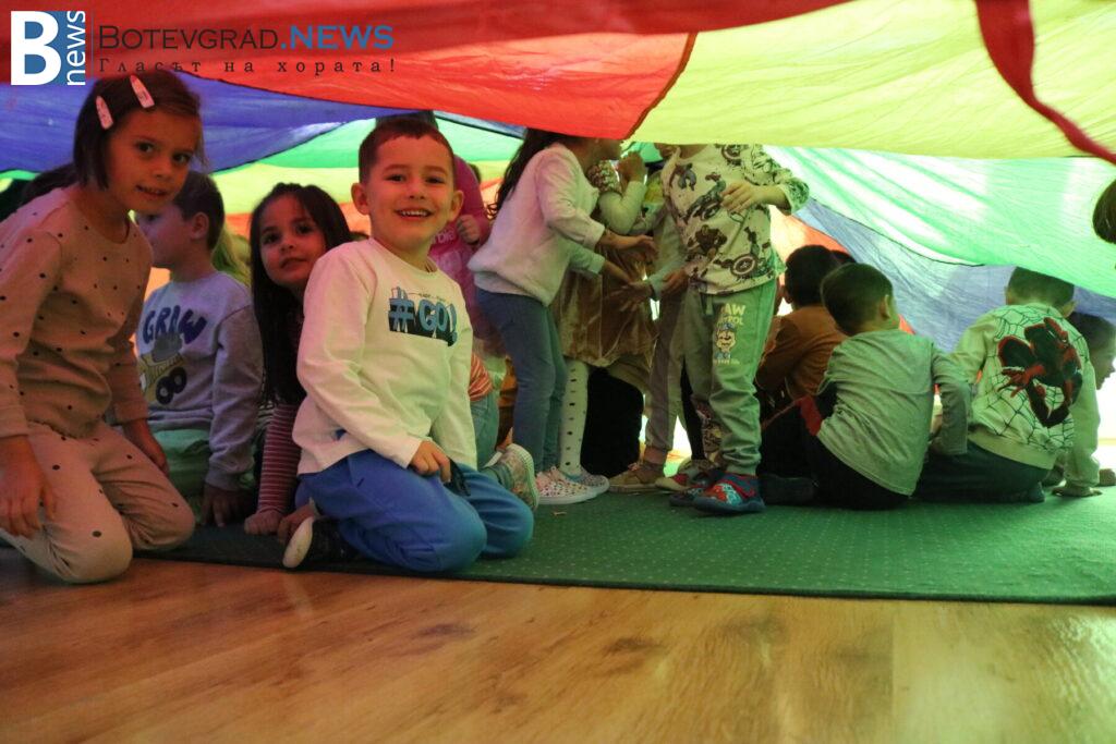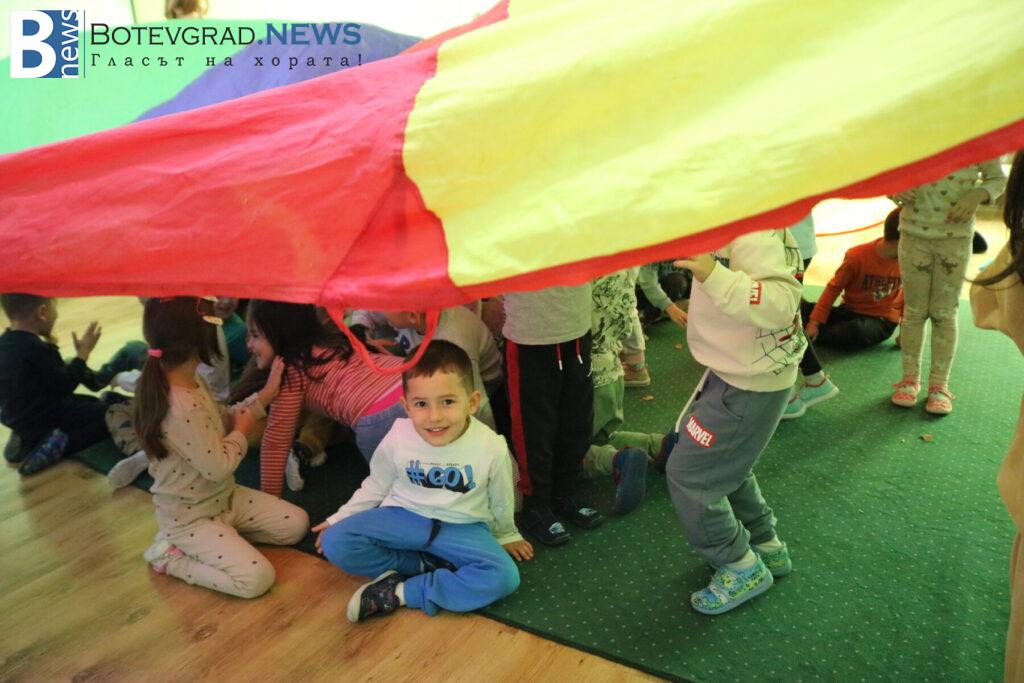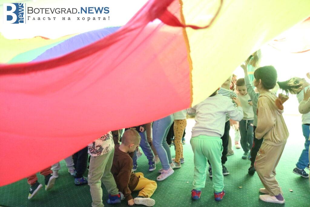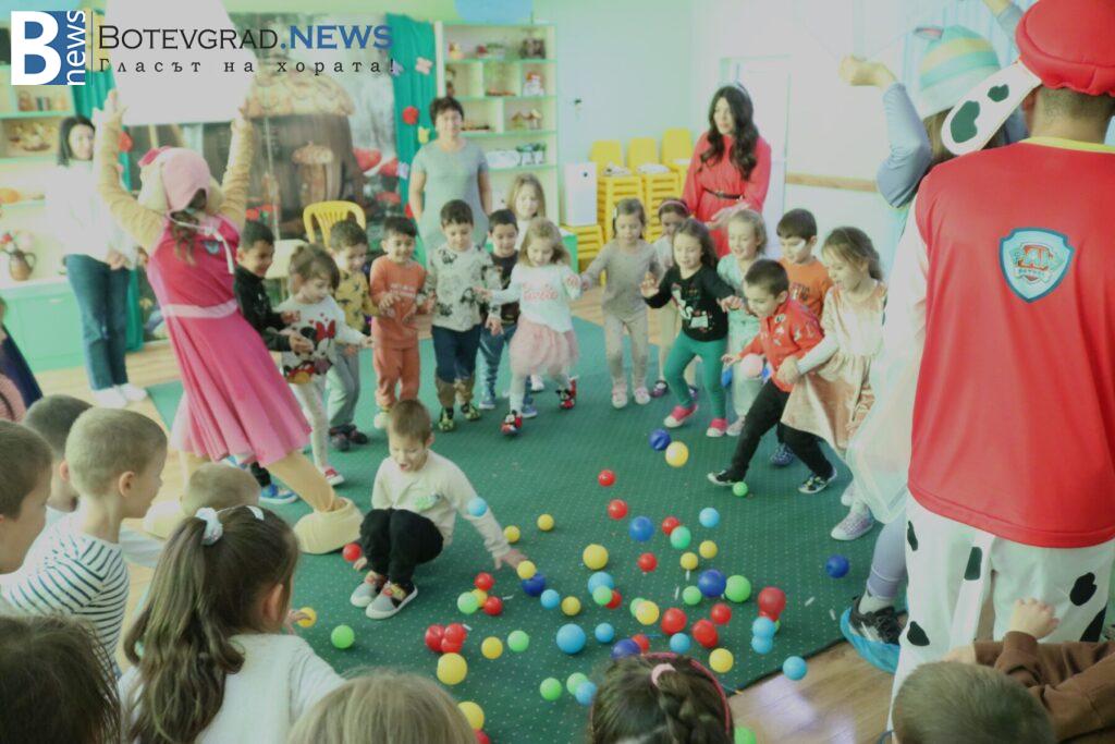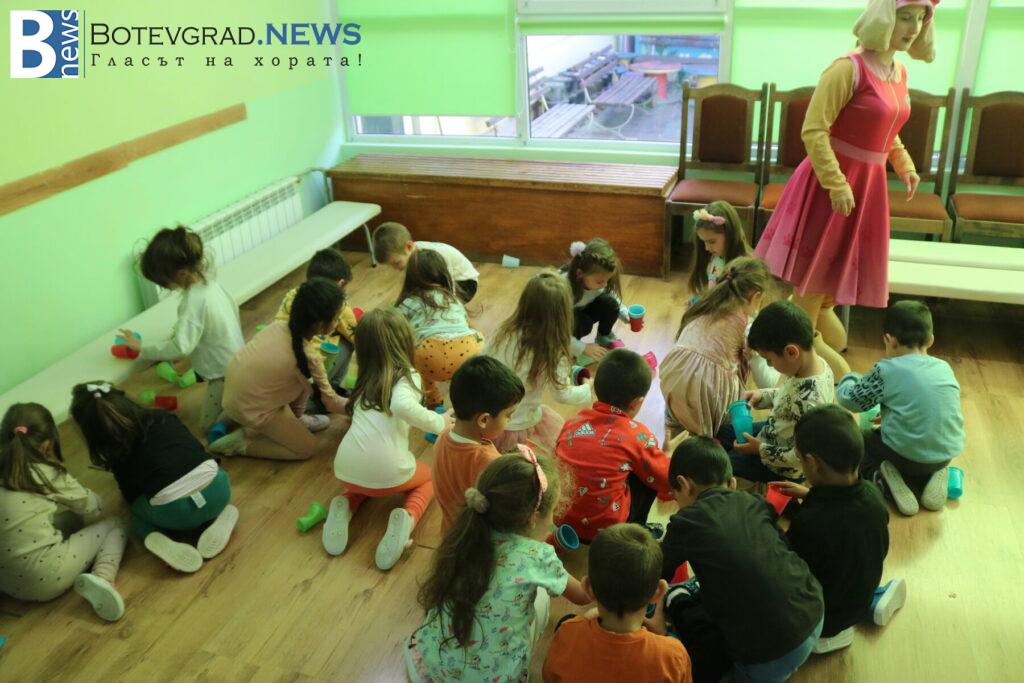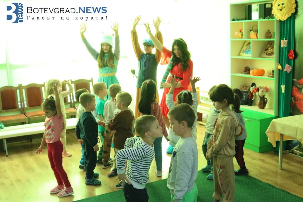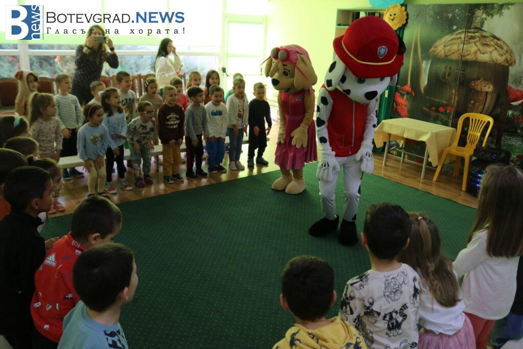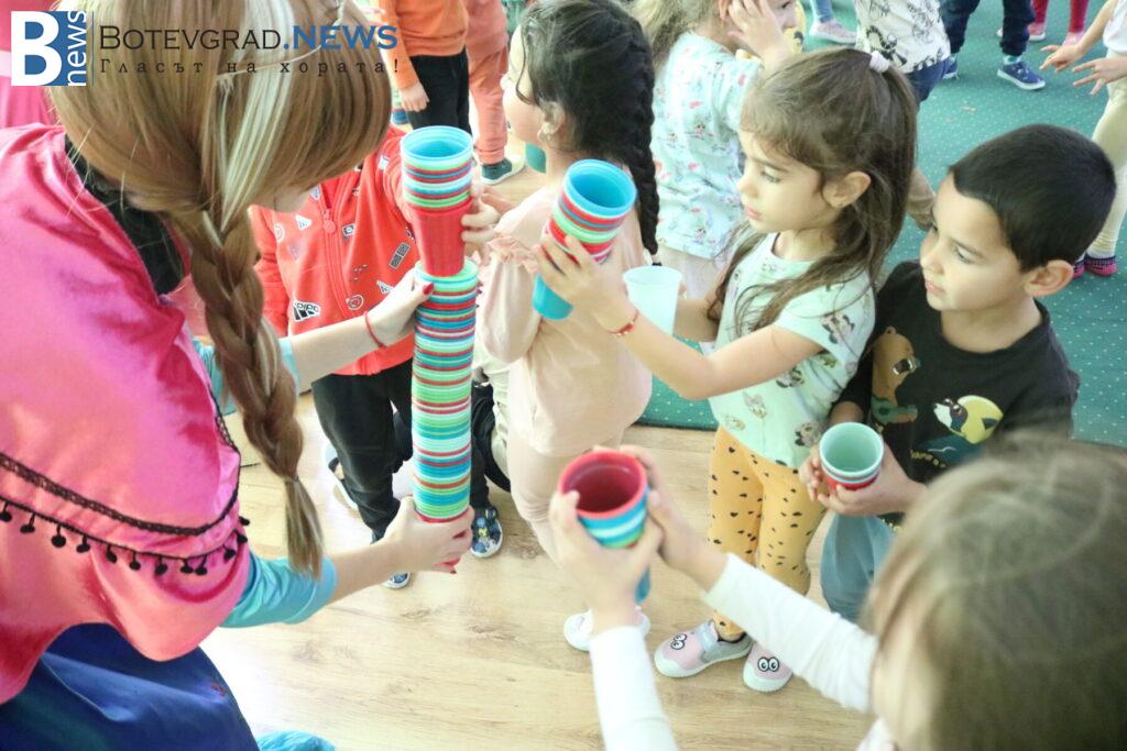 Младежите посетиха малчуганите от ДГ „Синчец“, играха с тях, танцуваха и се забавляваха.