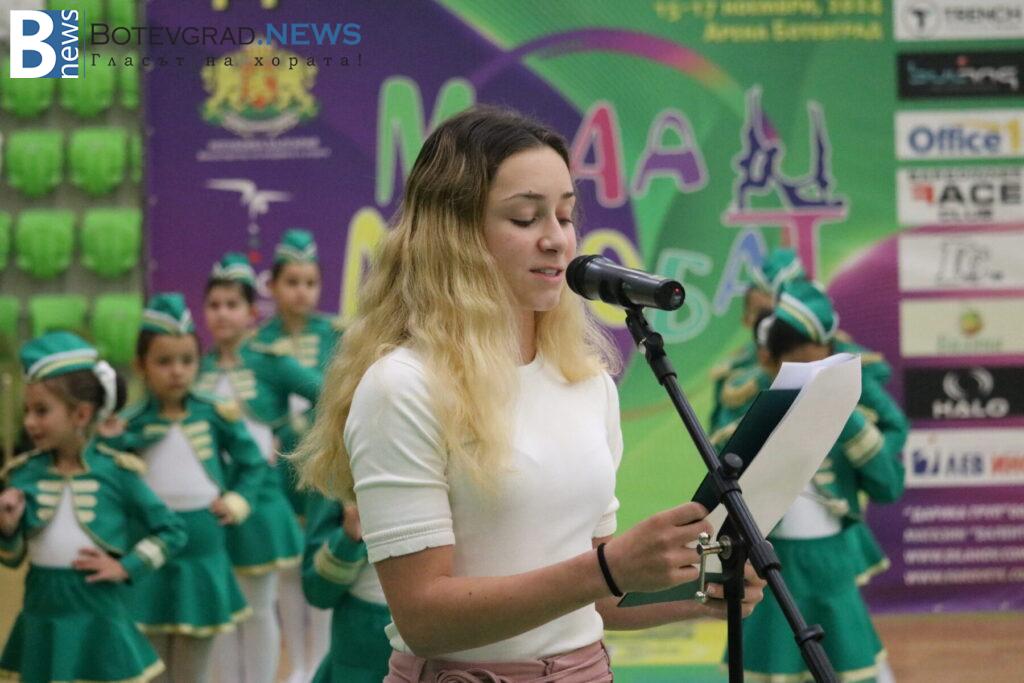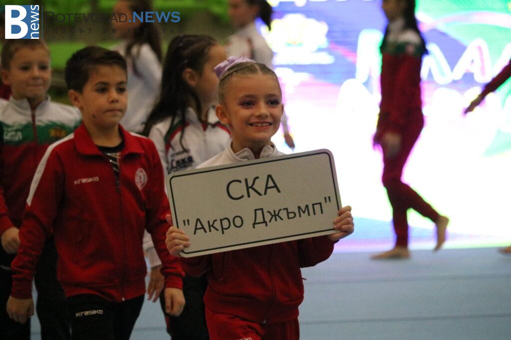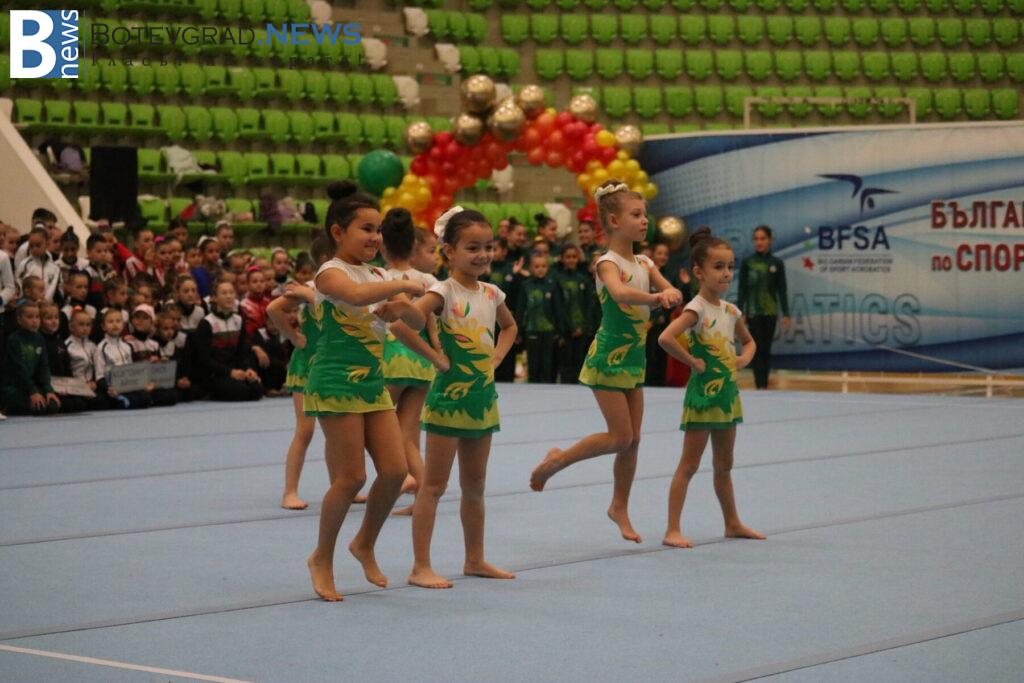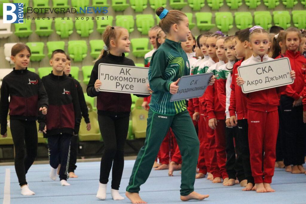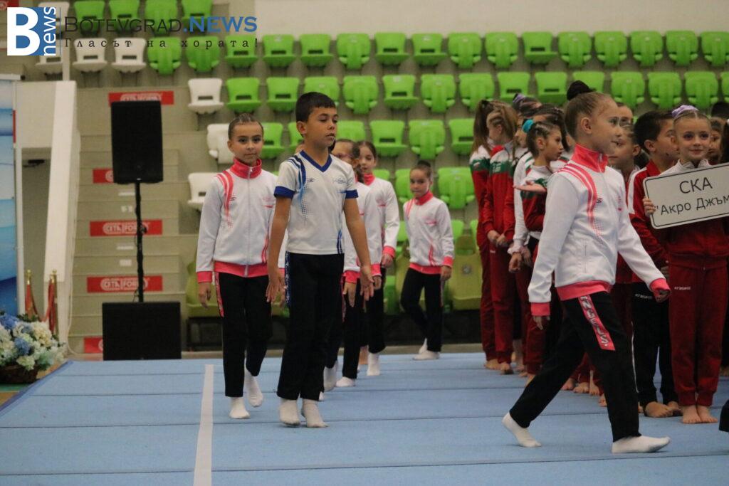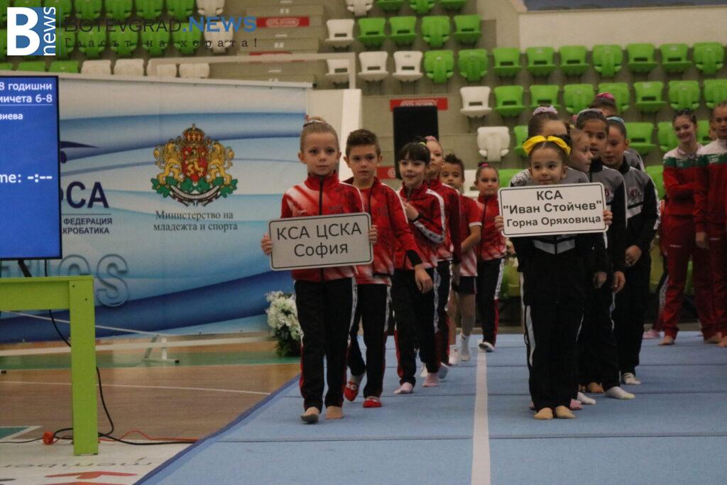 Водещата Елена Босилкова приветства с ‚Добре дошли“ 350 състезатели – представители на 17 клуба от цялата страна. „Вие сте обещаващото бъдеще, не само на спортната акробатика, а и на нашата обичана страна България“, каза Босилкова.