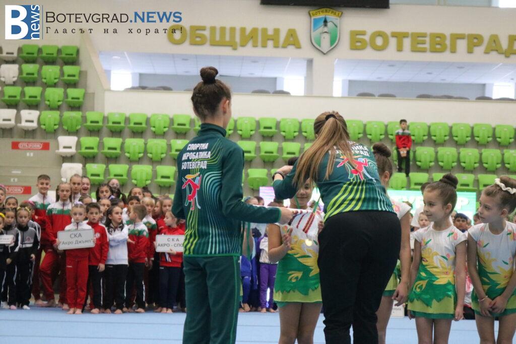 За дългогодишните усилия в работата с подрастващите в спортната акробатика кметът на общината-Иван Гавалюгов отправи специални благодарности към треньора на местния клуб-Добринка Николова.