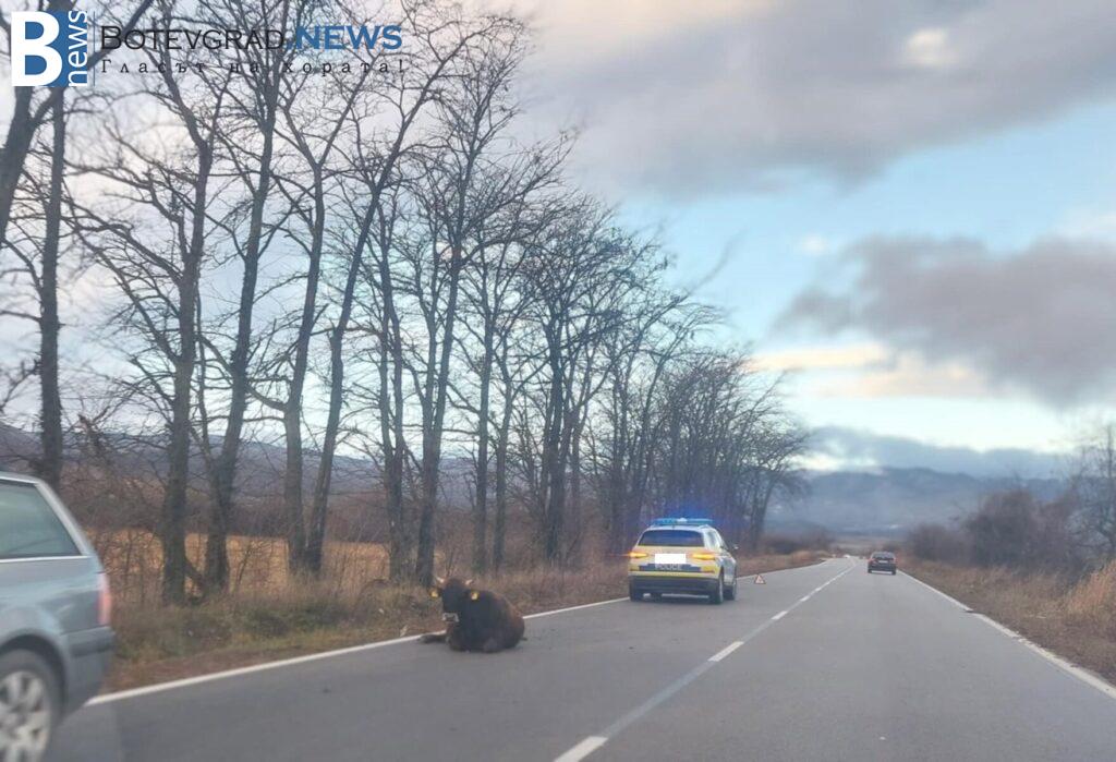 Полиция бе на място да регулира пътното движение. Животното е вдигнато и откарано своевременно.