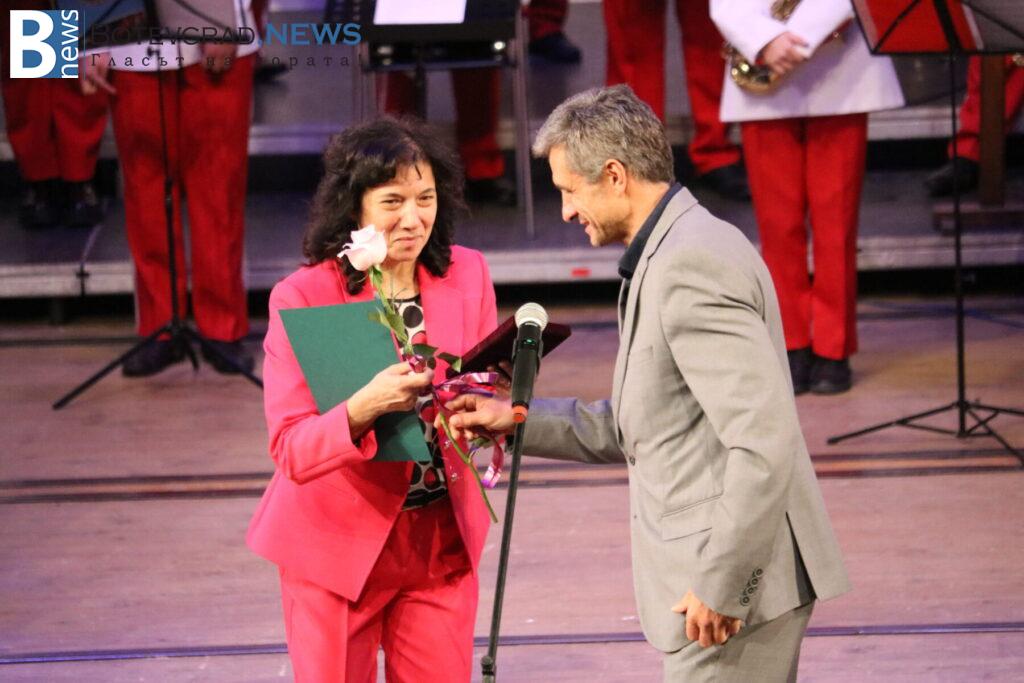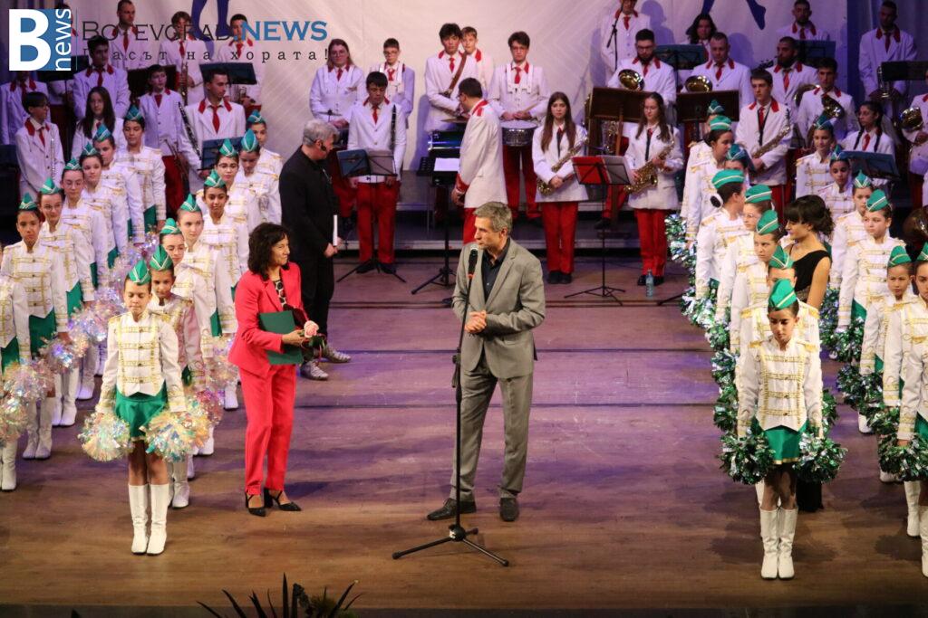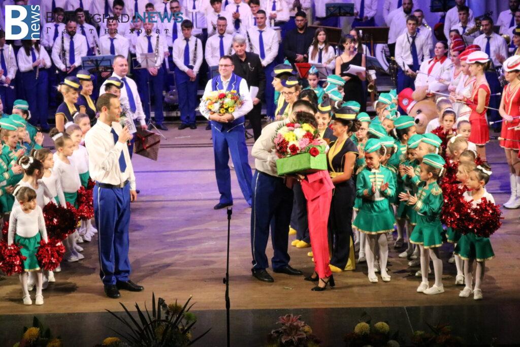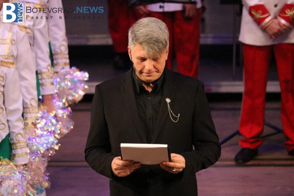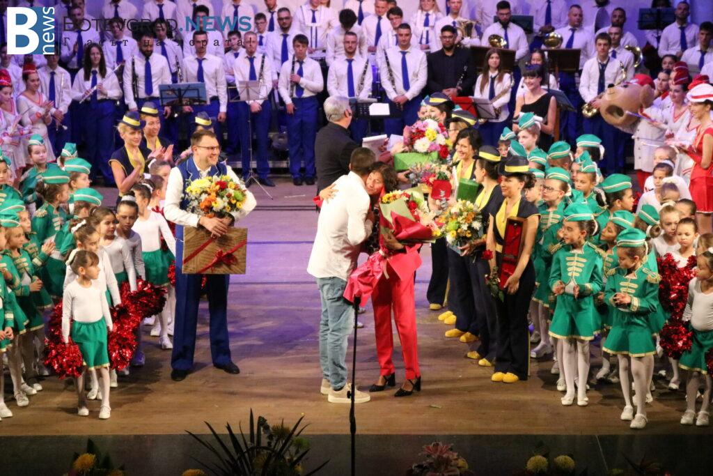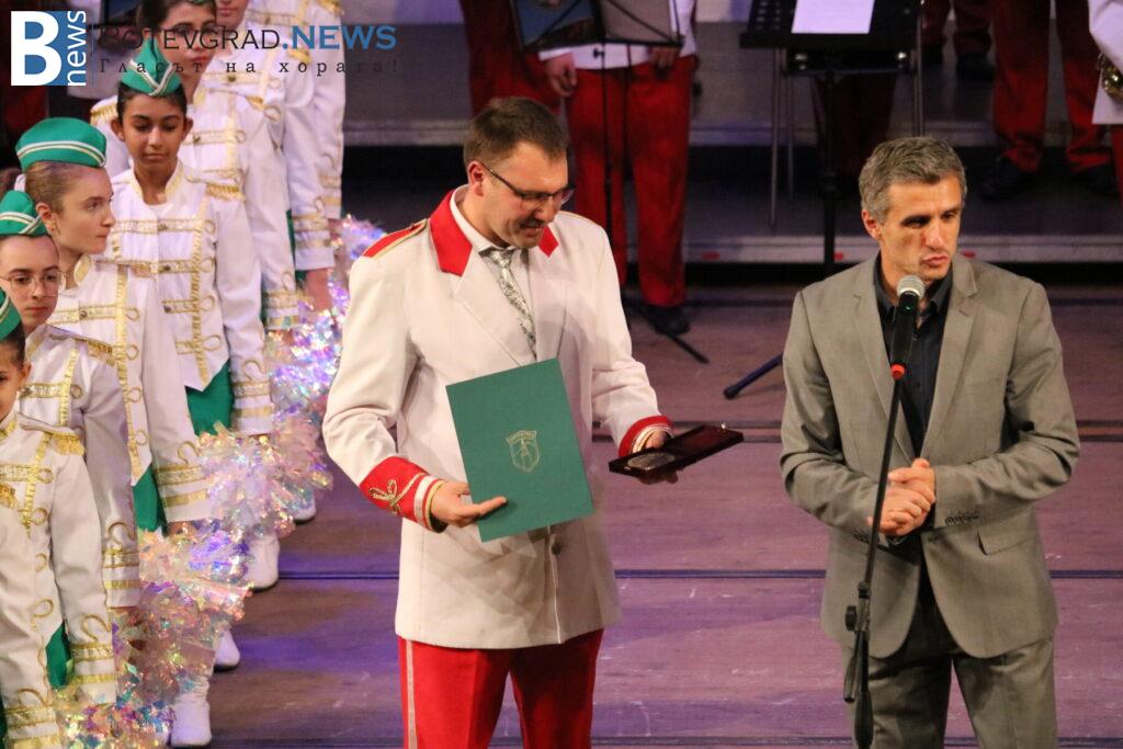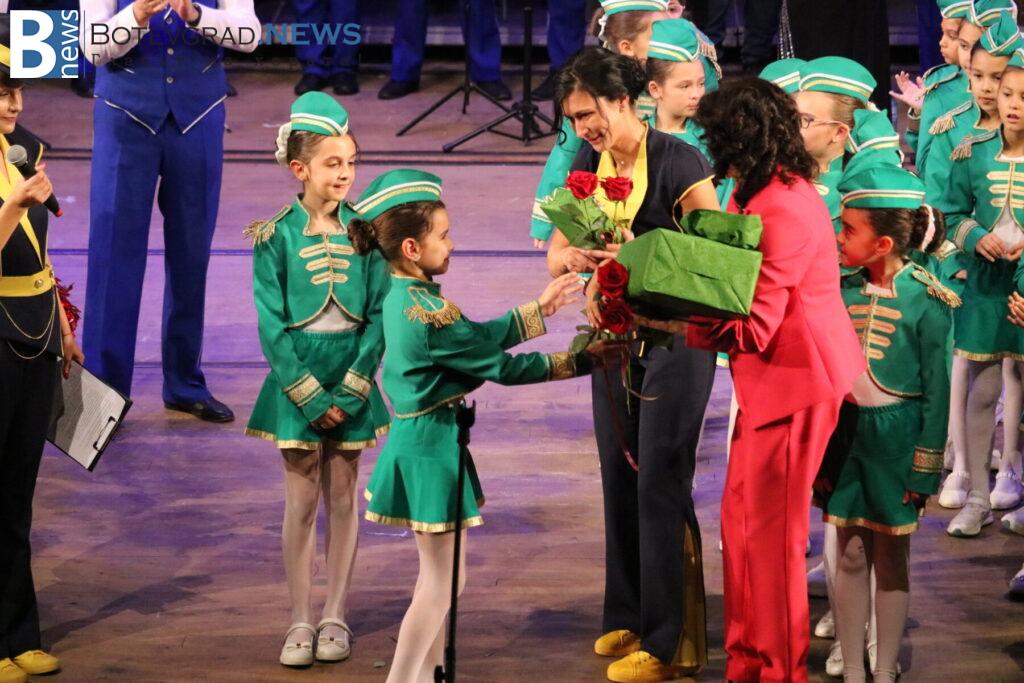 „За мен е изключителна отговорност и удоволствие да присъствам на този юбилей, 60 години от създаването на младежки духов оркестър и 20 години от създаването на мажоретен състав. Искам да изразя своята лична благодарност и признателност към ръководителите на тези два състава. Към всички участници, бивши и настоящи им благодаря, че по един изключително достоен начин представят града ни. За мен е удоволствие да наградя макар и символично с почетен плакет от Община Ботевград, ръководителя на младежкия духов оркестър Константин Гайдарски. Много благодаря за положените усилия през годините. Огромно удоволствие е да поздравя и Иванка Христова ръководител на младежкия мажоретен състав. Със своята любов, с която върши работата си, с това че успя да събере толкова момичета от нашия град и от нашата община, да им покаже красотата на това изкуство, което те сътворяват, да ги мотивира да се трудят всеки ден и наистина да представят по един изключително достоен и особено красив начин младежта, любовта и духа на нашия град. Поздравления още веднъж“ – с тези думи кмета на Община Ботевград – Иван Гавалюгов поздрави Константин Гайдарски и Иванка Христова.