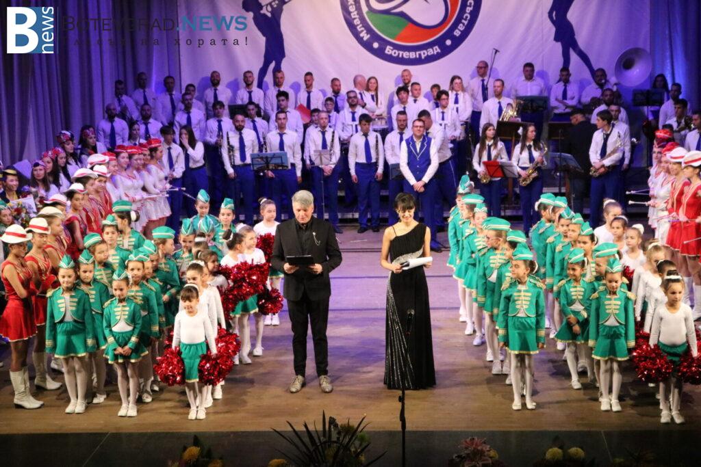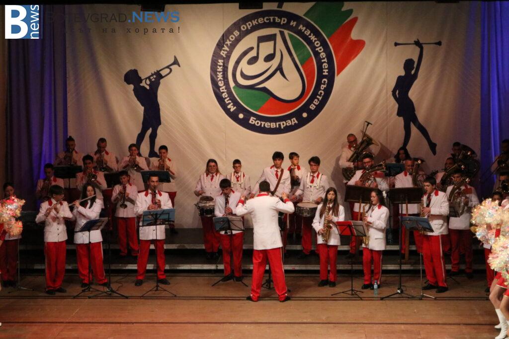 „Радостни сме да Ви приветстваме с добре дошли на Юбилейният концерт по повод 60 години Младежки духов оркестър и 20 години Мажоретен състав Ботевград. На този празник се връщаме в годините назад и погледът ни се събира в далечната 1930г. и учителят Тодор Коларски, чиято идея е в нашият град да създаде оркестър. Благодарение на упоритата му дейност, първият ученически духов оркестър на града започва да се изявява през далечната 1932 година. През 1964 година на чело на оркестъра застава Димитър Войнов. Под негово ръководство оркестърът достойно е представил града ни в многобройни фестивали из страната и чужбина, предвождан от мажоретен състав. Днес, тук в тази зала, редом с много от бившите възпитаници на Войнов, заставаме и ние, за да отбележим 60 години от началото на неговата дейност“ – с тези думи водещите Николай Найденов и Поля Гайдарска приветстваха гостите.