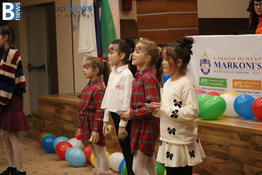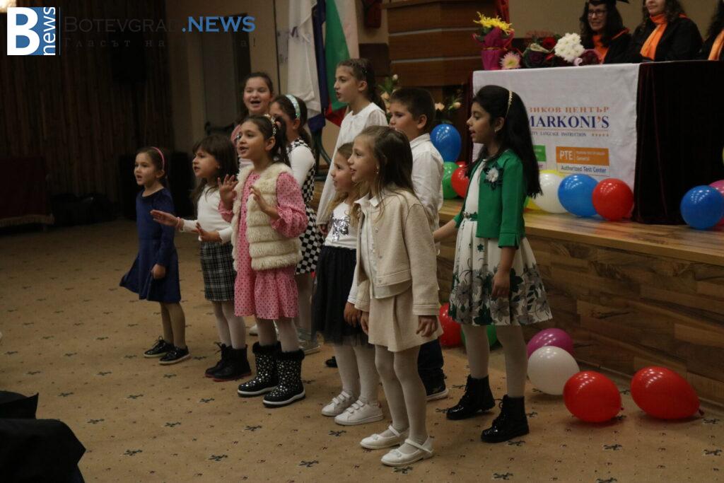 Най-малките обучавани в Езиков център „Марконис“ от групи Pre-Junior и A Junior поздравиха всички пораснали възпитаници с музикално изпълнение под ръководството на г-жа Славка Катранджиева.