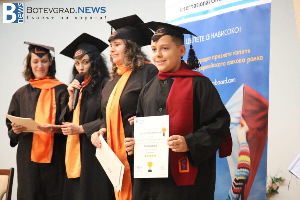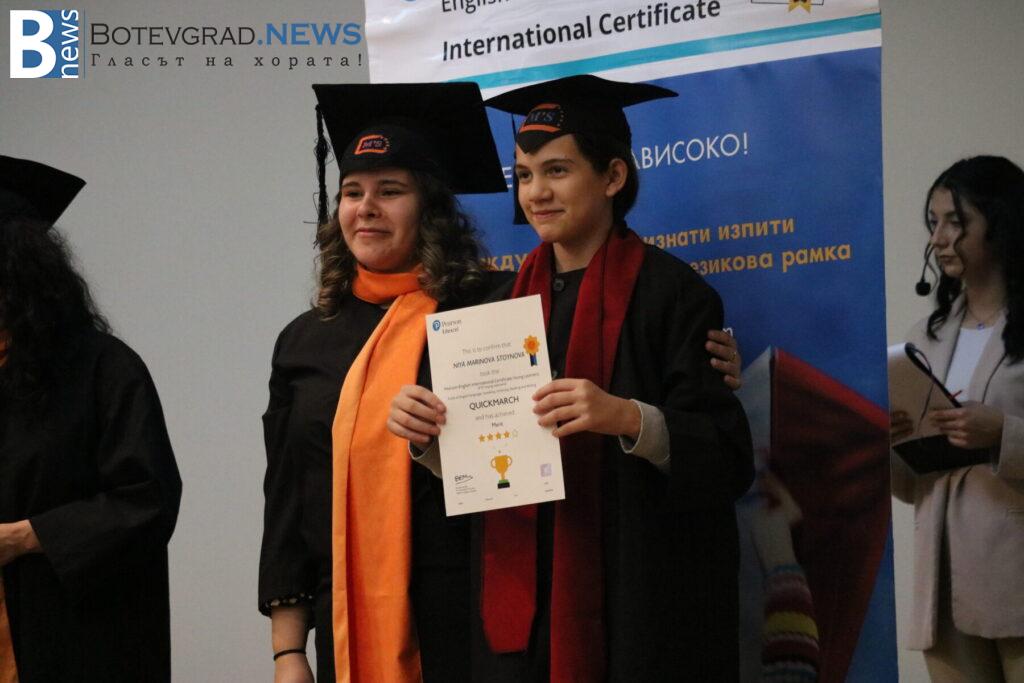 Сертификати от тези нива в деня на промоцията получиха: Севастиян Ненчев, Бисимира Стаменова, Дея Тодорова, Драган Геогриев, Ева Николова, Христо Николов, Любов Василева, Марио Николов, Мария Стойчовска, Пламена Николова, Теодор Николов, Ванеса Атанасова, Васил Редовски, Васил Лазаров, Александър Дурев, Габриела Борисова, Християн Жигулин, Ивайло Велев, Християна Николова, Иван Драганов и Ивайла Минчева.