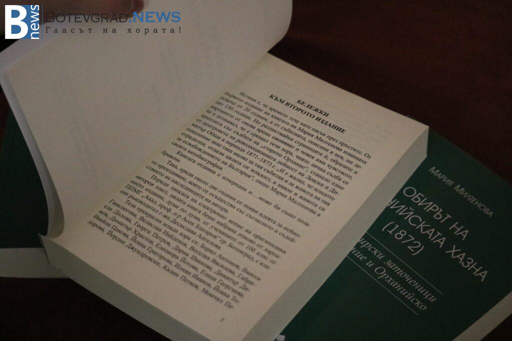 Второто издание на книгата „Обирът на Орханийската хазна“, с автор Мария Милтенова, бе представено днес, 4 декември, в малкия салон на НЧ „Христо Ботев 1884“. Събитието е част от програмата на Община Ботевград по повод официалния празник на града – 29 ноември.