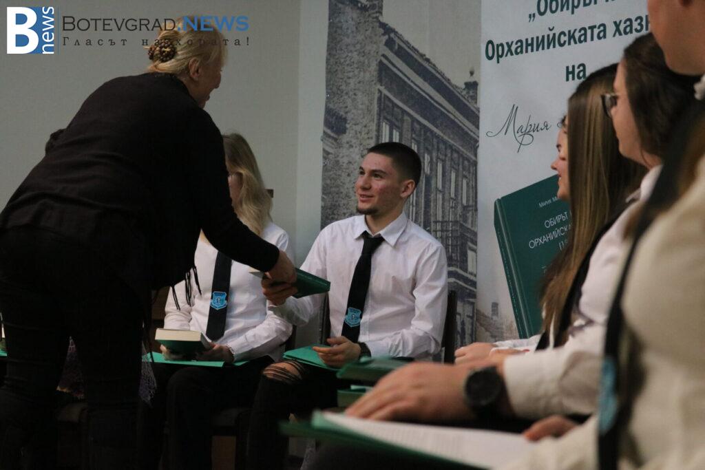 „Идеята дойде от библиотеката . Решихме да го направим като знак на доброволчество за преиздаването на книгата. Това беше и начин да се запознаем с историята за обира на Орханийската хазна в Арабаконашкия проход. Да се приближим до предшествениците от нашия роден край чрез разказани от тях или техните наследниците истории. Събитията от книгата представляват един много труден период от историята на България, за революционните комитети на територията на нашата околия, както и за героите борили се за нашето освобождение. Учениците използваха и техническите си умения при въвеждането на текста. Проектът всъщност беше и работа в екип – нещо което се оказа доста трудно в днешно време. Доволни сме, че сме съпричастни към преиздаване на книгата и се надяваме, че много наши съграждани ще поискат да се запознаят с тази истории проучени и представени от авторката – Мария Милтенова. “ – с тези думи госпожа Десислава Ангелова разказа малка част за това от къде е дошла идеята за книгата и поздрави своите ученици.