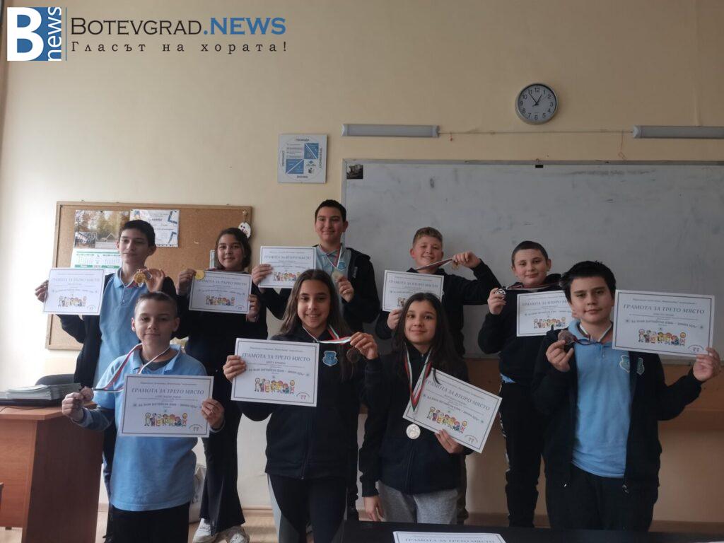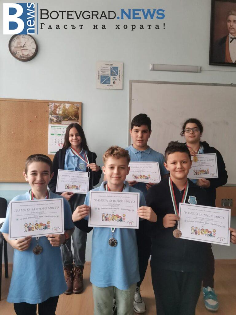Петър Томов, Десислава Младенска, Траян Цанов и Ива Филипова от VII клас, Валенсия Иванова и Ивелин Станев от VI клас, Василена Борисова от V клас.