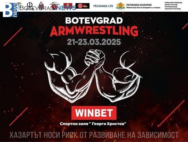В края на март състезатели по армрестлинг (канадска борба) от цялата страна ще премерят сили в турнир, организиран от Спортен клуб „Булс Армрестлинг Тийм„. Планираното спортно събитие, което ще се проведе в спортна зала „Георги Христов“ от 21 до 23 март, включва републикански шампионат по армрестлинг, отворен за участници от цялата страна в 26 категории, включително „Аматьори“ и „Хора с увреждания“, които ще бъдат освободени от такса за участие. За всички останали категории таксата е 10 лв на ръка (лява или дясна), като е необходима и предварителна онлайн регистрация. В противен случай, таксата става 20 лева. Организаторите очакват около 300 участници от различни възрастови групи и приблизително още толкова зрители. Основната цел на събитието е насърчаване на младежкия спорт и изграждане на спортна култура в региона. Очакват се зрелищни битки и световни шампиони, които ще покажат майсторство си. Официалното откриване ще бъде на 22 март, от 11.00ч., а общият награден фонд в размер на 9000 лв ще бъде поделен между победителите в отделните категории. Медалите пък, на стойност общо 2500лв, са осигурени от община Ботевград, която е съорганизатор на събитието. Официален партньор на първенството е хотел „Сити Плаза“.