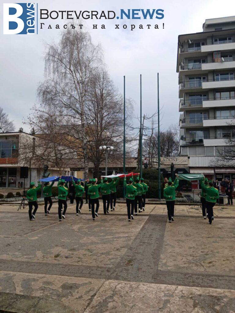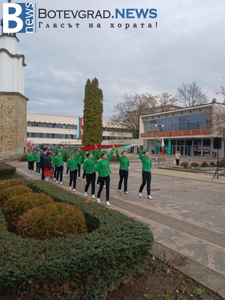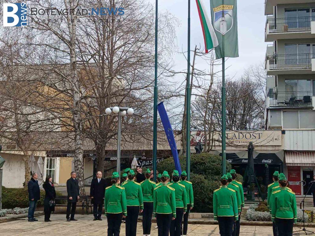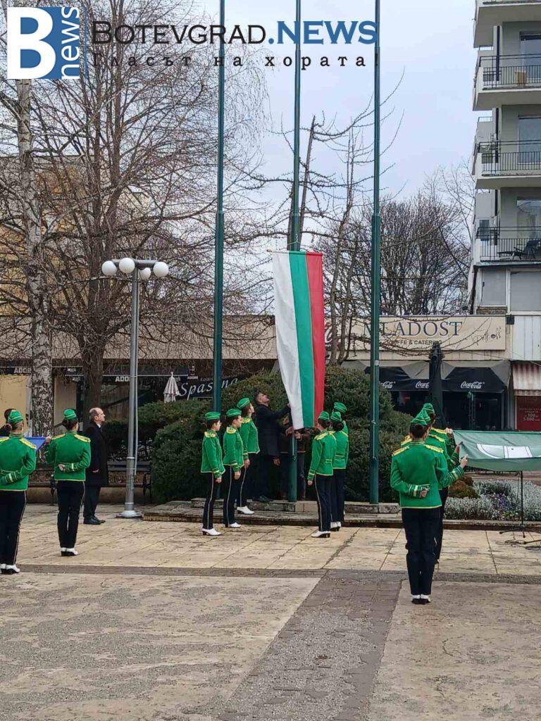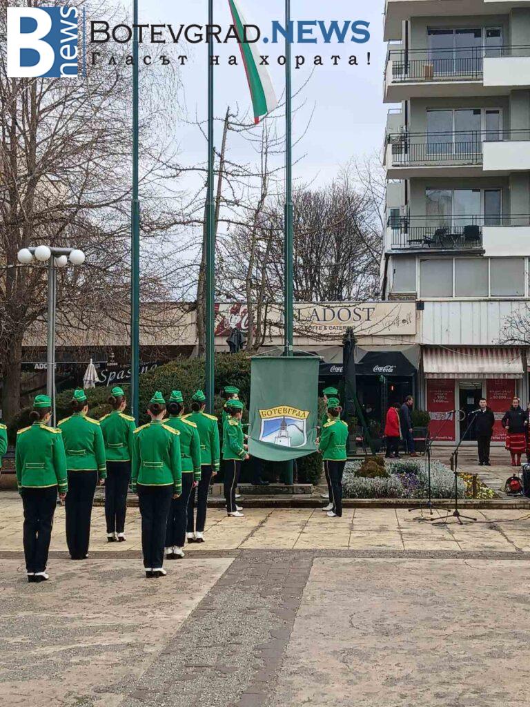По повод Националния празник, трети март, днес бе издигнат националният флаг на Република България от кмета на община Ботевград, Иван Гавалюгов. Тържествената церемония се състоя от 9:30 часа на площад „Освобождение“. Издигнати бяха още знамето на община Ботевград от д-р Илин Черняшки , председател на Общински съвет – Ботевград и знамето на Европа. В церемонията взеха участие Мажоретен състав – Ботевград, Общински духов оркестър – Ботевград, певицата Кристина Матеева и ученици от трите гимназиални училища в града.