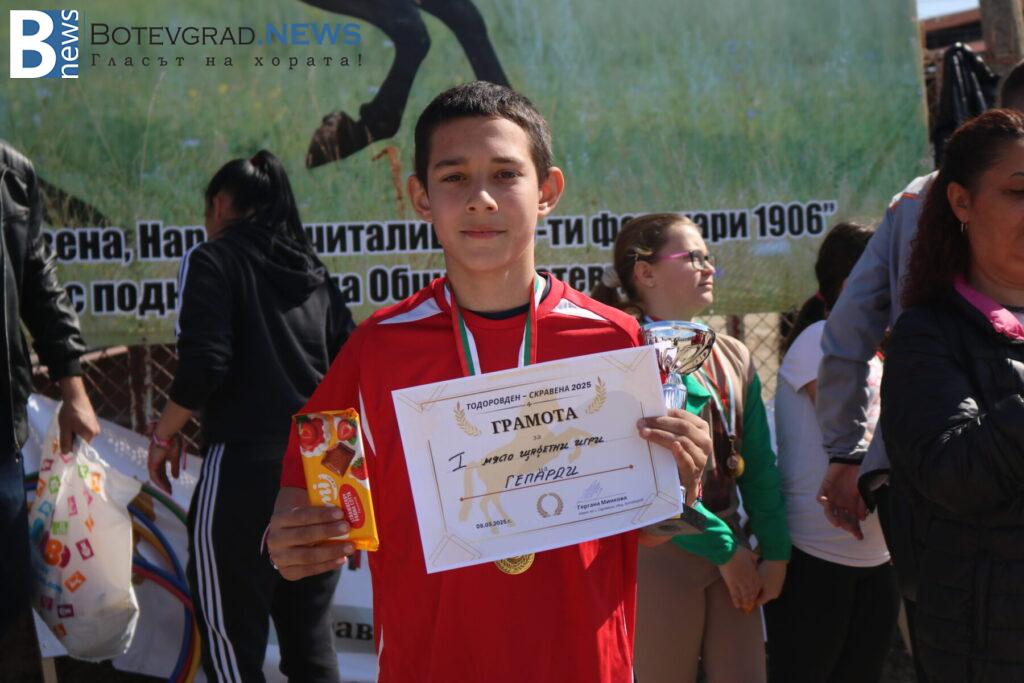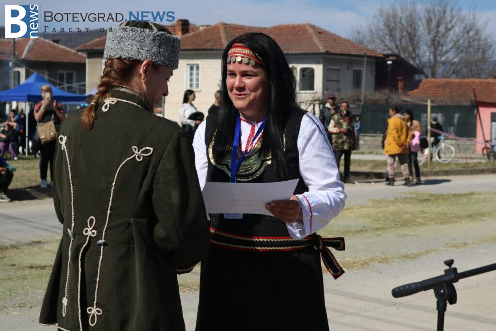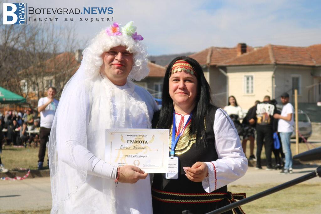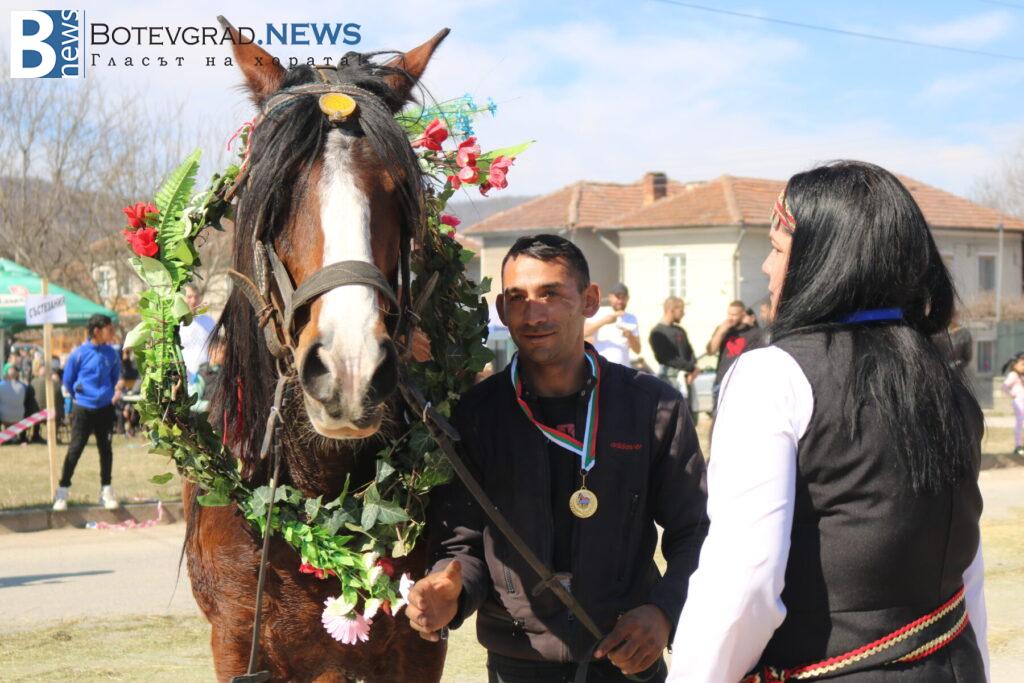 Първо място – кон Марта с ездач Петър Бенчев – грамота, 3 чувала овес и венец