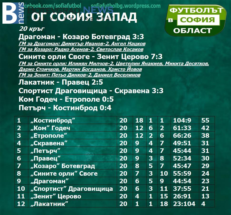 В следващия кръг Етрополе приема Козаро Ботевград, а Ком гостува на Правец.
