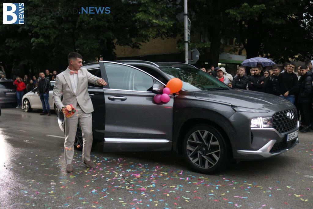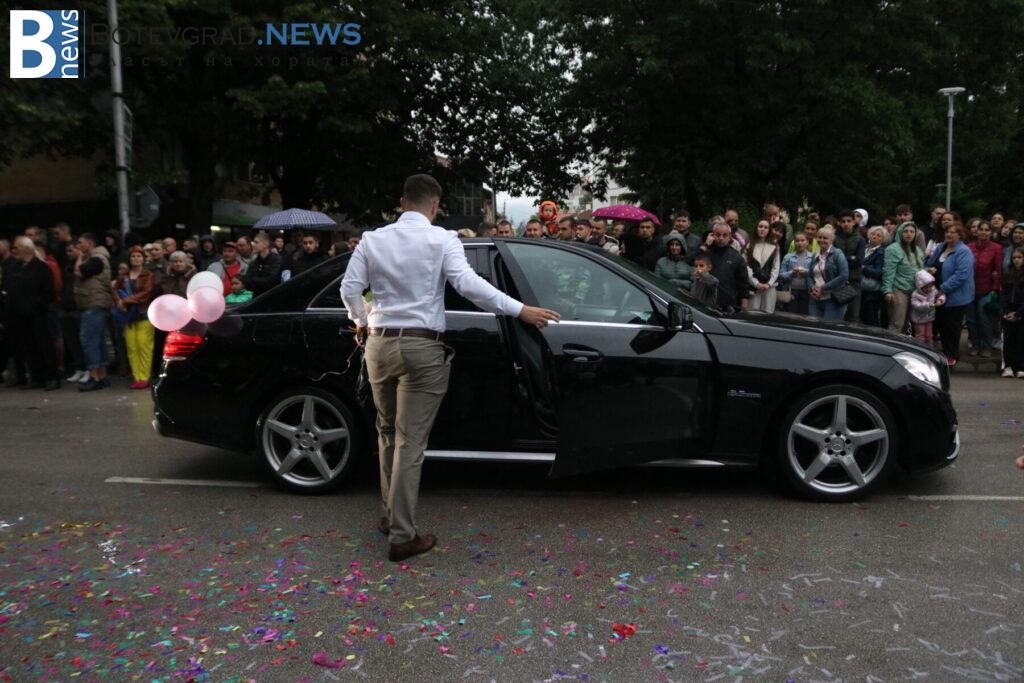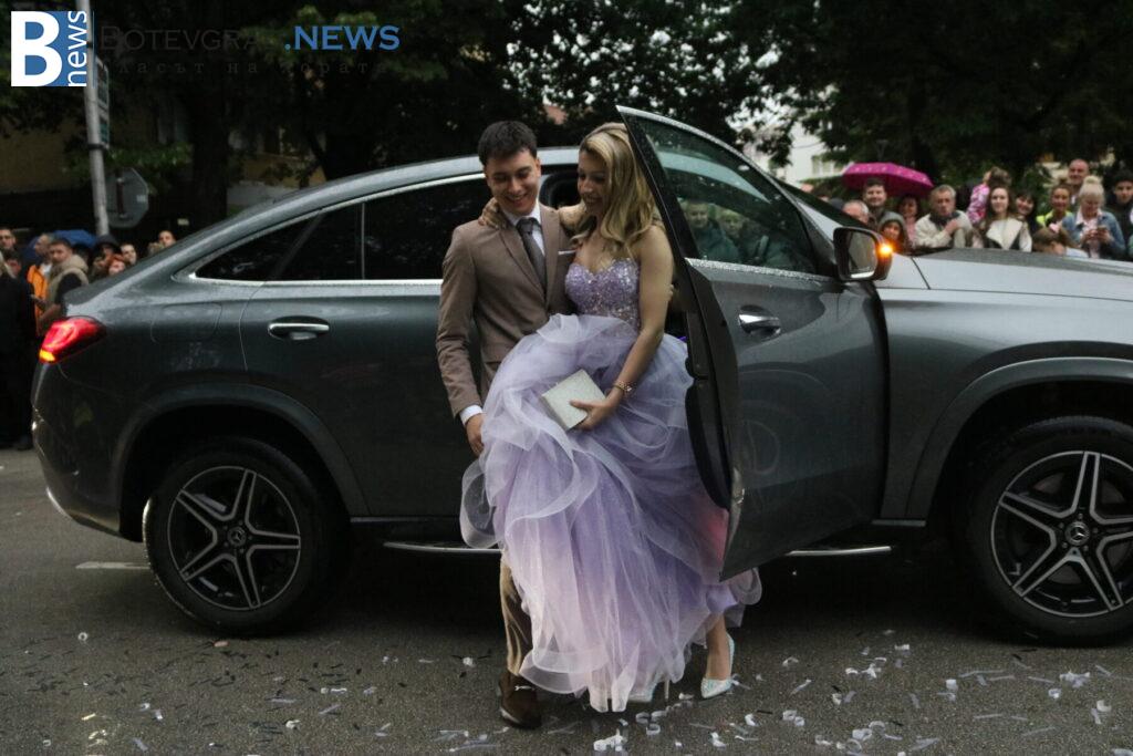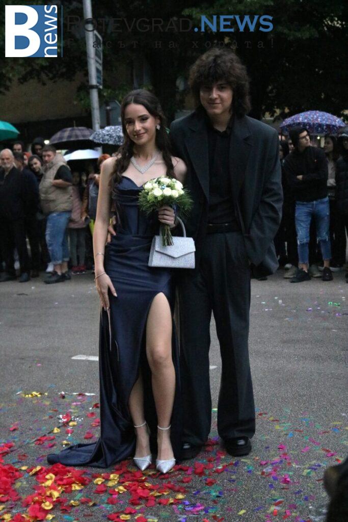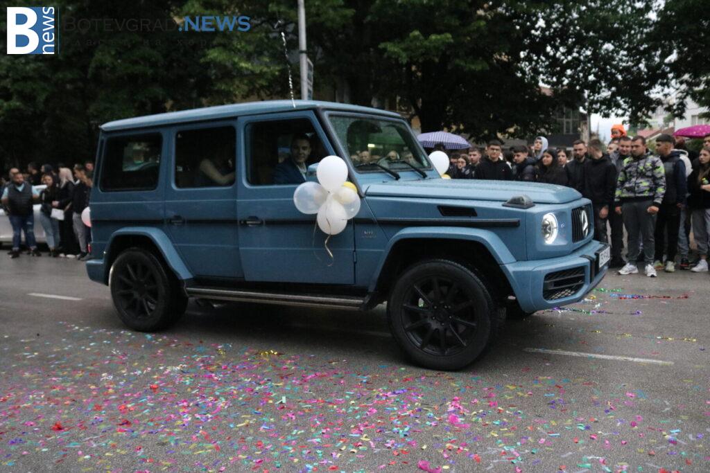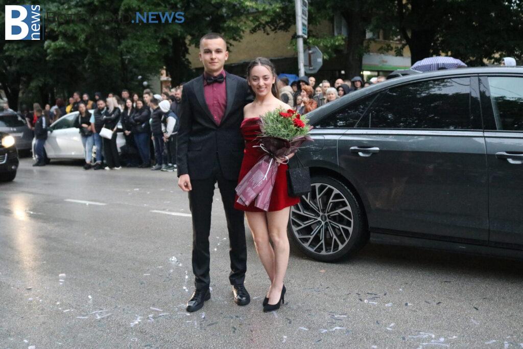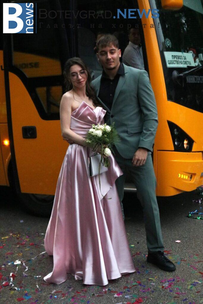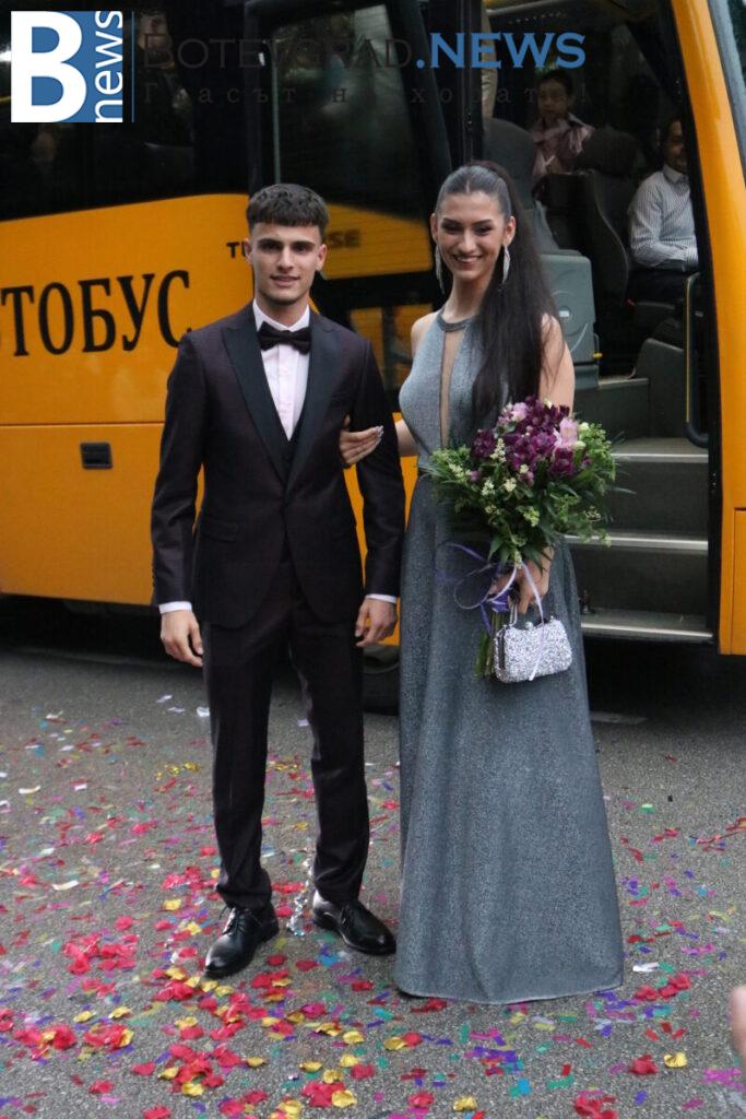 Най-голямата атракция на вечерта безспорно бяха учениците от 12 „Б“ клас, водени от своя обичан класен ръководител, г-н Филип Зуберски. Те пристигнаха не с лъскави коли, а с училищен автобус – жест, който предизвика бурни аплодисменти, усмивки и искрено възхищение. Техният оригинален избор се превърна в символ на духа и сплотеността на випуска – различен, креативен и незабравим.