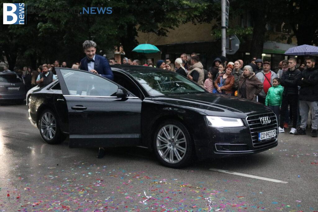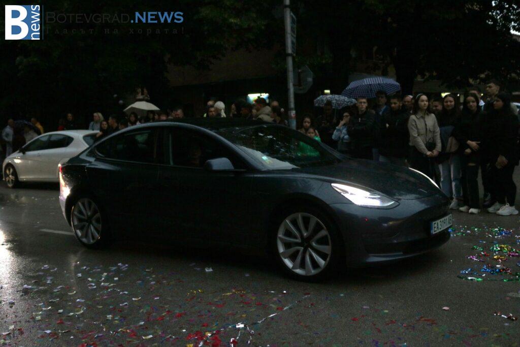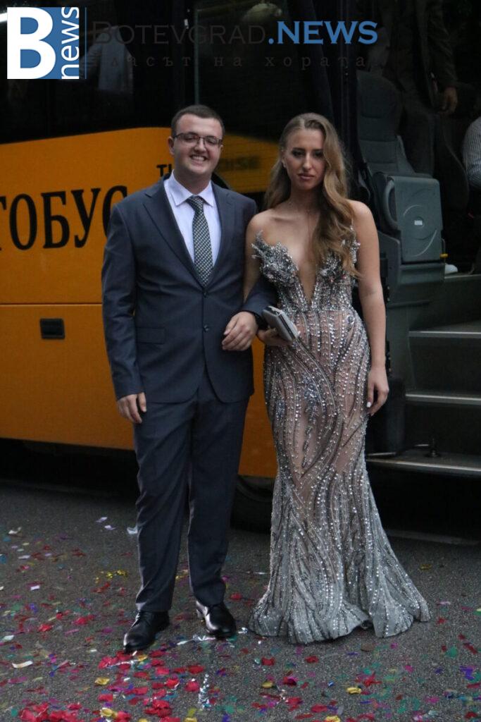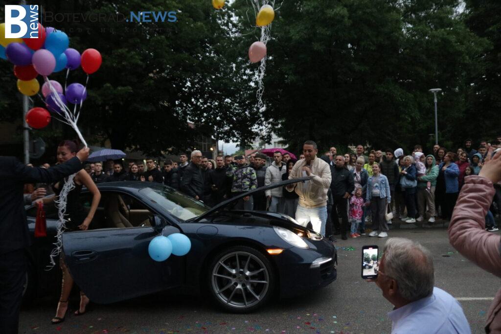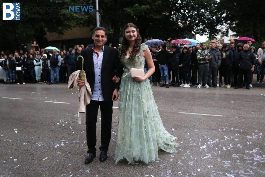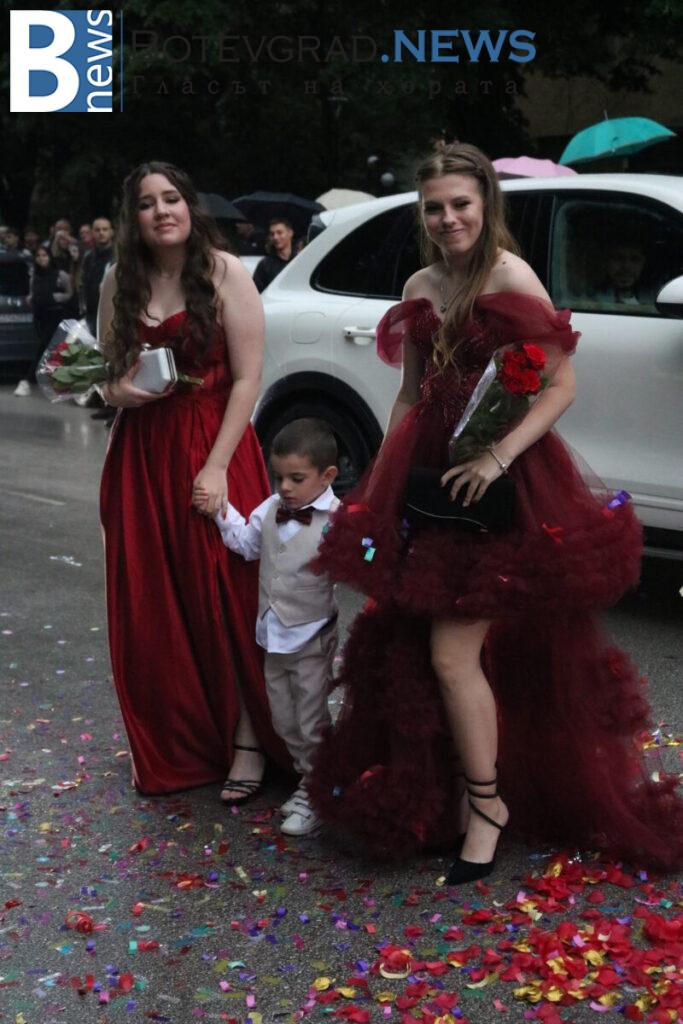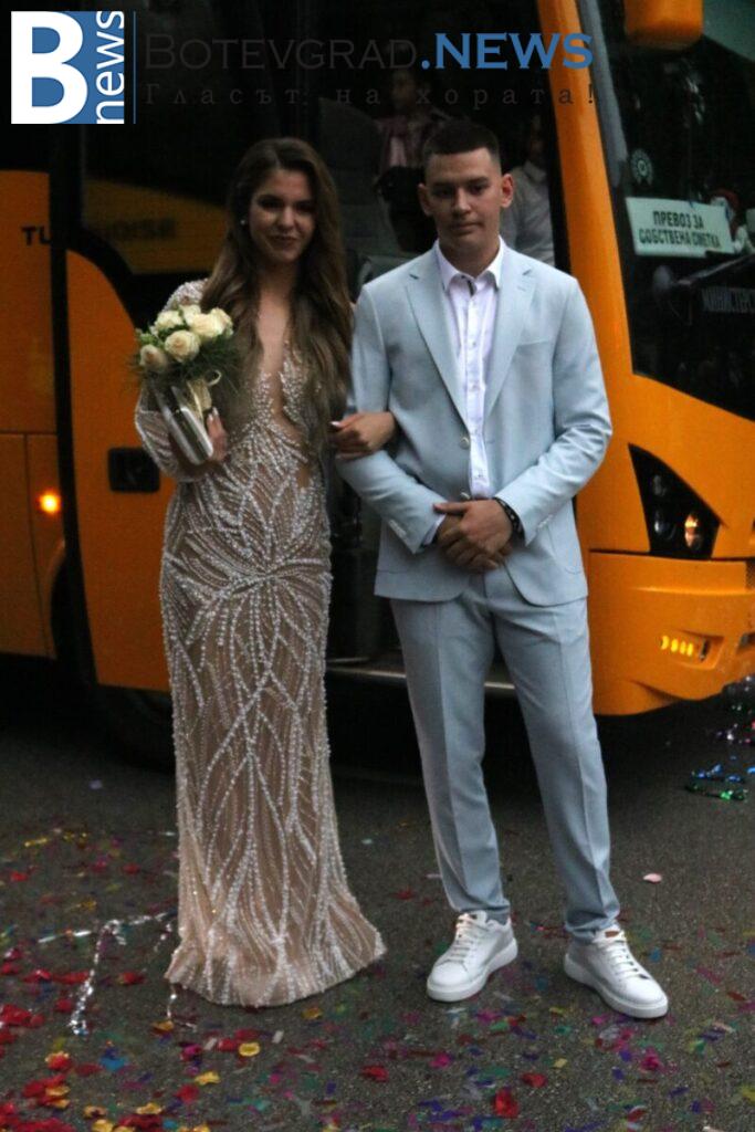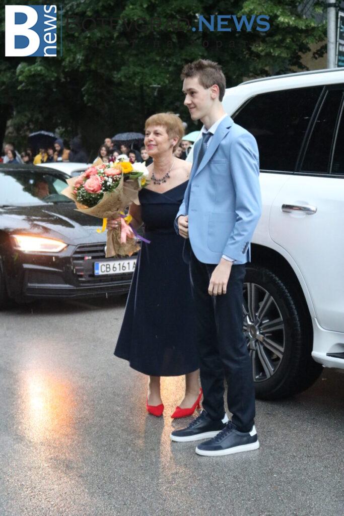 Най-голямата атракция на вечерта безспорно бяха учениците от 12 „Б“ клас, водени от своя обичан класен ръководител, г-н Филип Зуберски. Те пристигнаха не с лъскави коли, а с училищен автобус – жест, който предизвика бурни аплодисменти, усмивки и искрено възхищение. Техният оригинален избор се превърна в символ на духа и сплотеността на випуска – различен, креативен и незабравим.