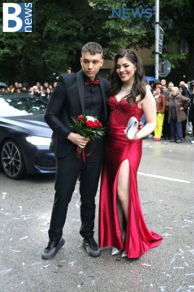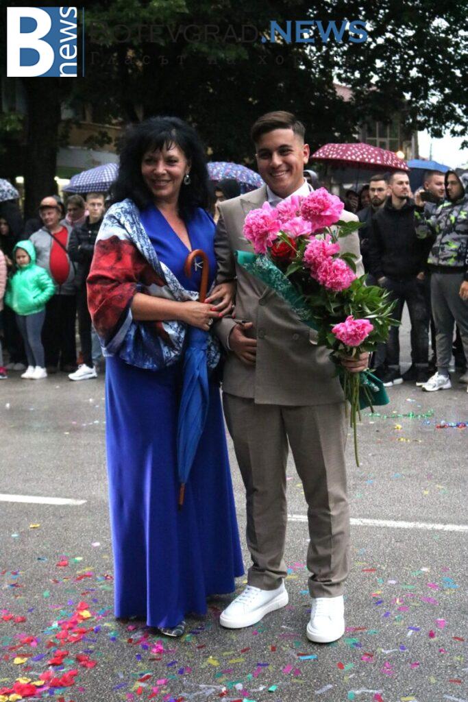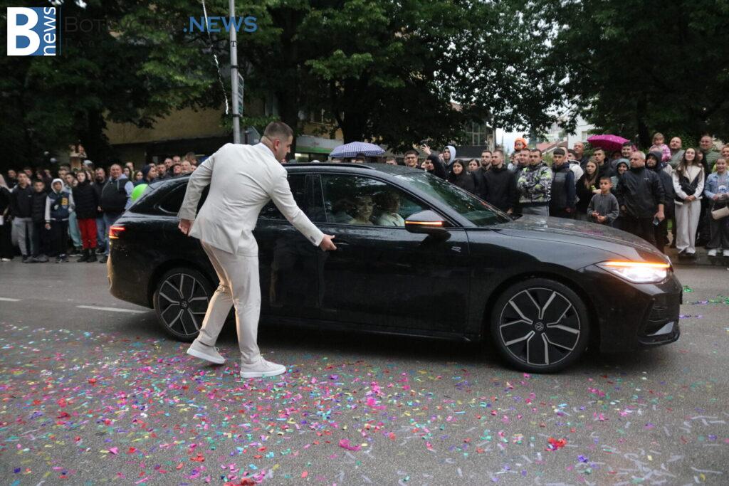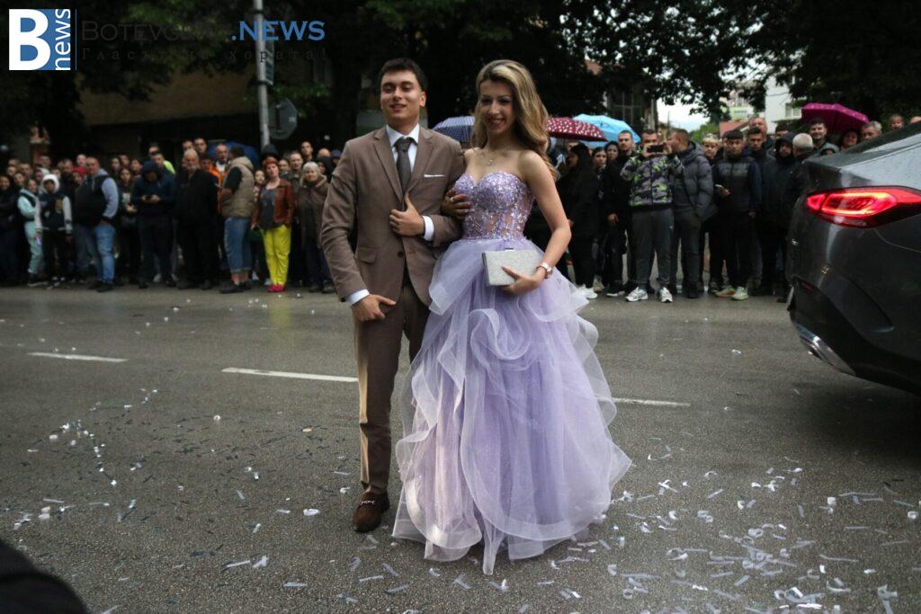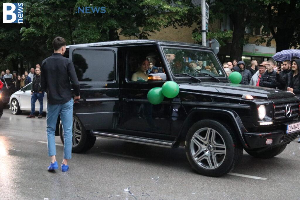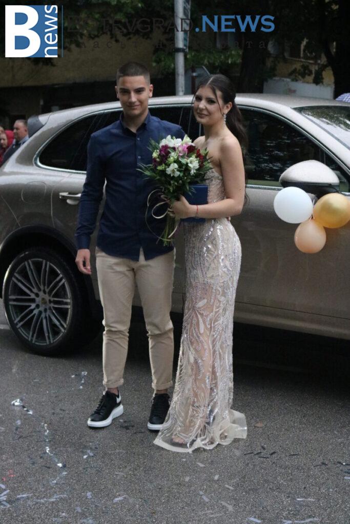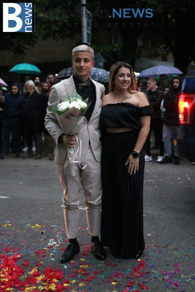 Най-голямата атракция на вечерта безспорно бяха учениците от 12 „Б“ клас, водени от своя обичан класен ръководител, г-н Филип Зуберски. Те пристигнаха не с лъскави коли, а с училищен автобус – жест, който предизвика бурни аплодисменти, усмивки и искрено възхищение. Техният оригинален избор се превърна в символ на духа и сплотеността на випуска – различен, креативен и незабравим.