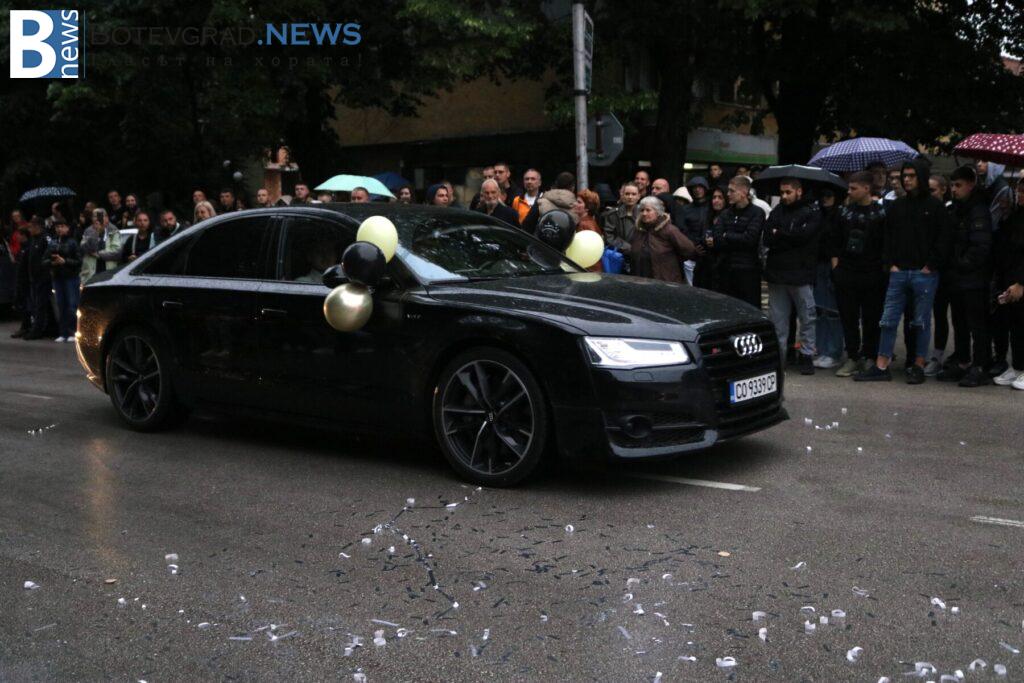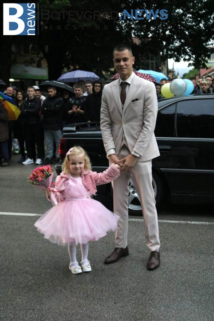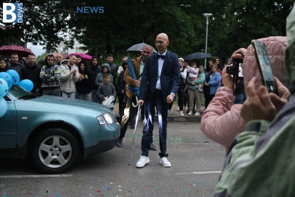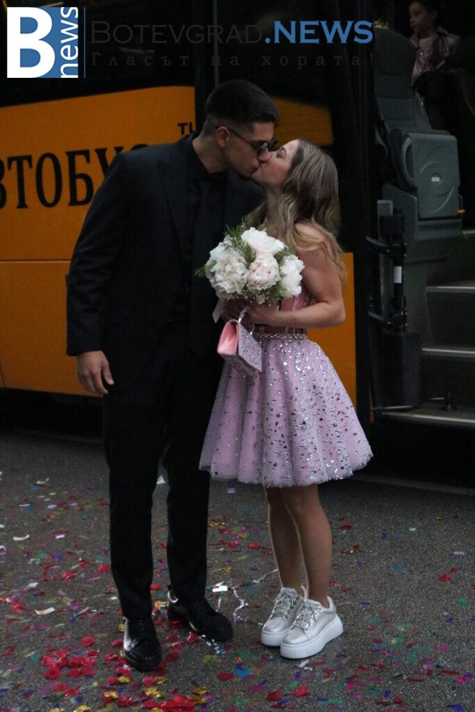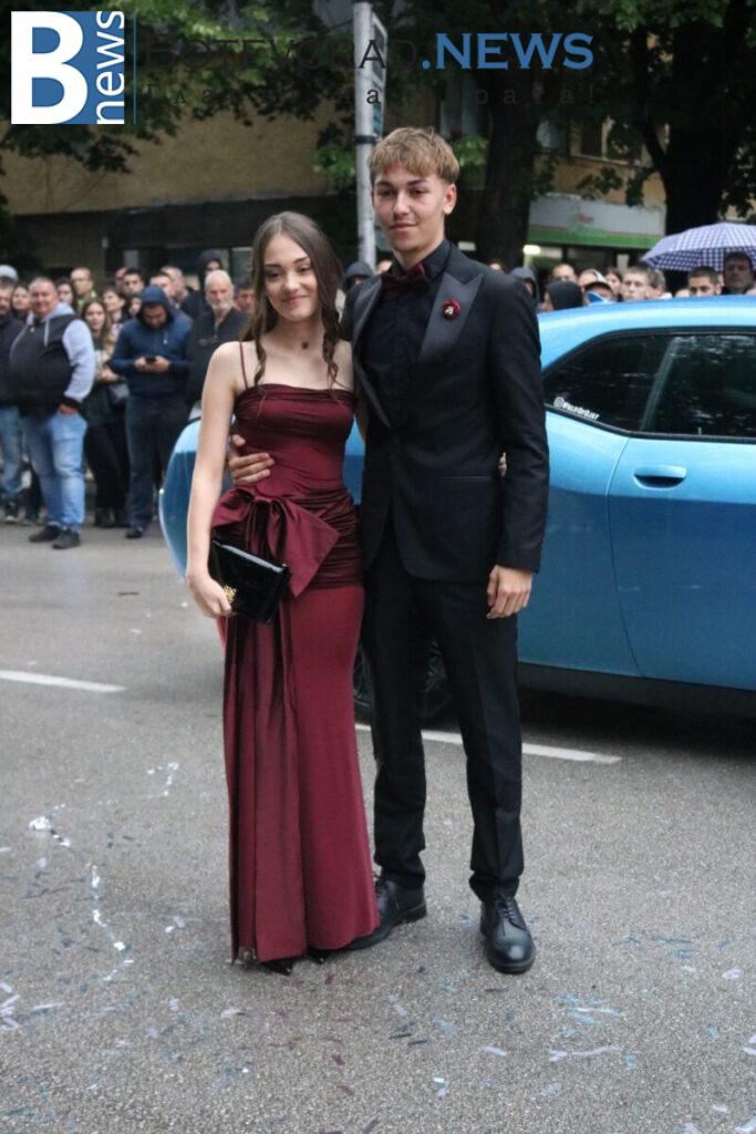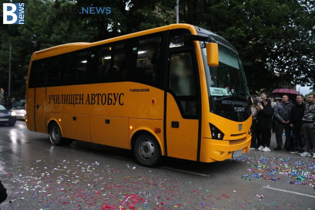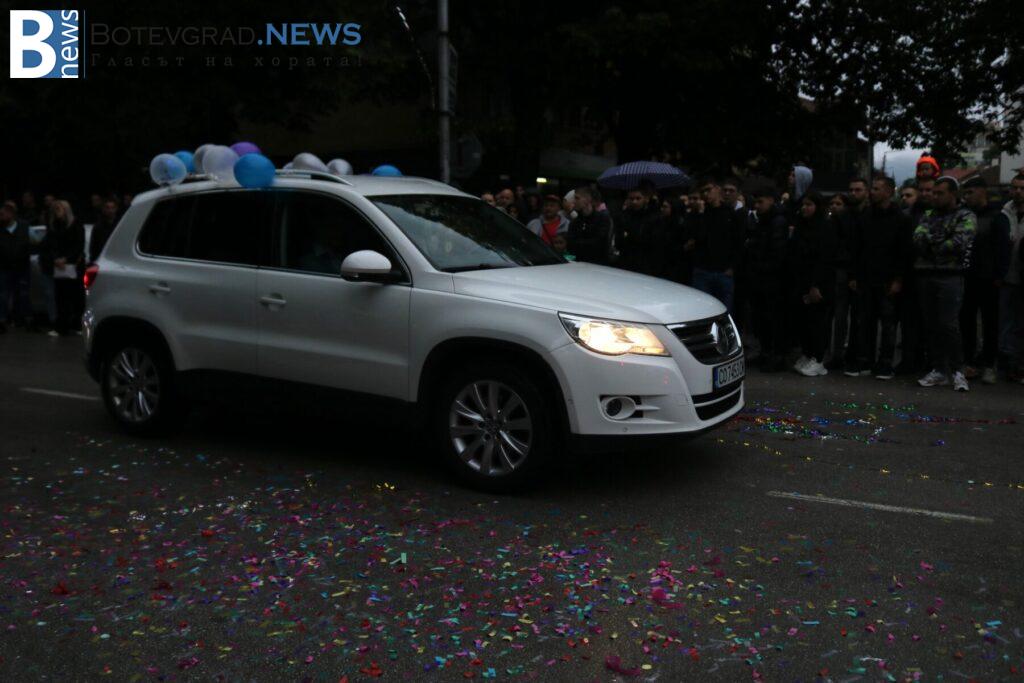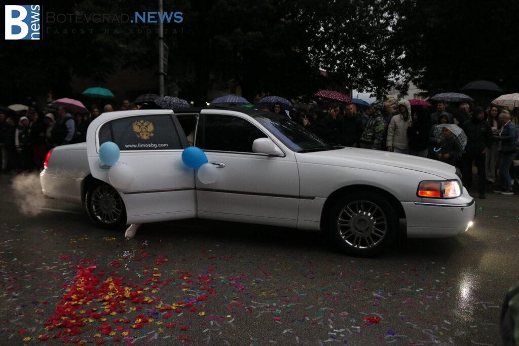 Най-голямата атракция на вечерта безспорно бяха учениците от 12 „Б“ клас, водени от своя обичан класен ръководител, г-н Филип Зуберски. Те пристигнаха не с лъскави коли, а с училищен автобус – жест, който предизвика бурни аплодисменти, усмивки и искрено възхищение. Техният оригинален избор се превърна в символ на духа и сплотеността на випуска – различен, креативен и незабравим.