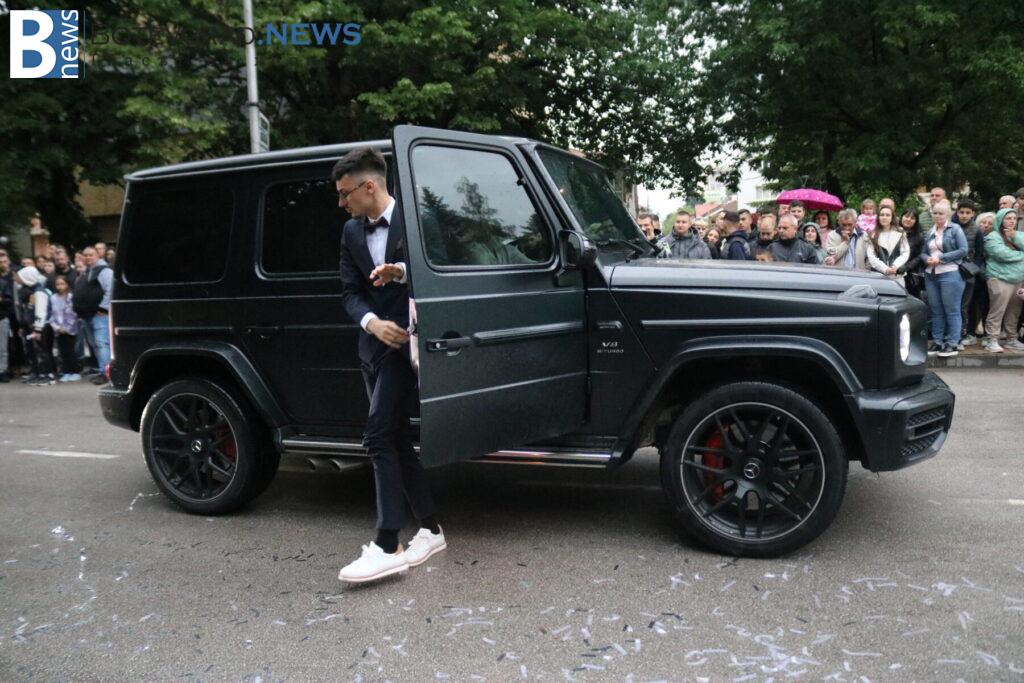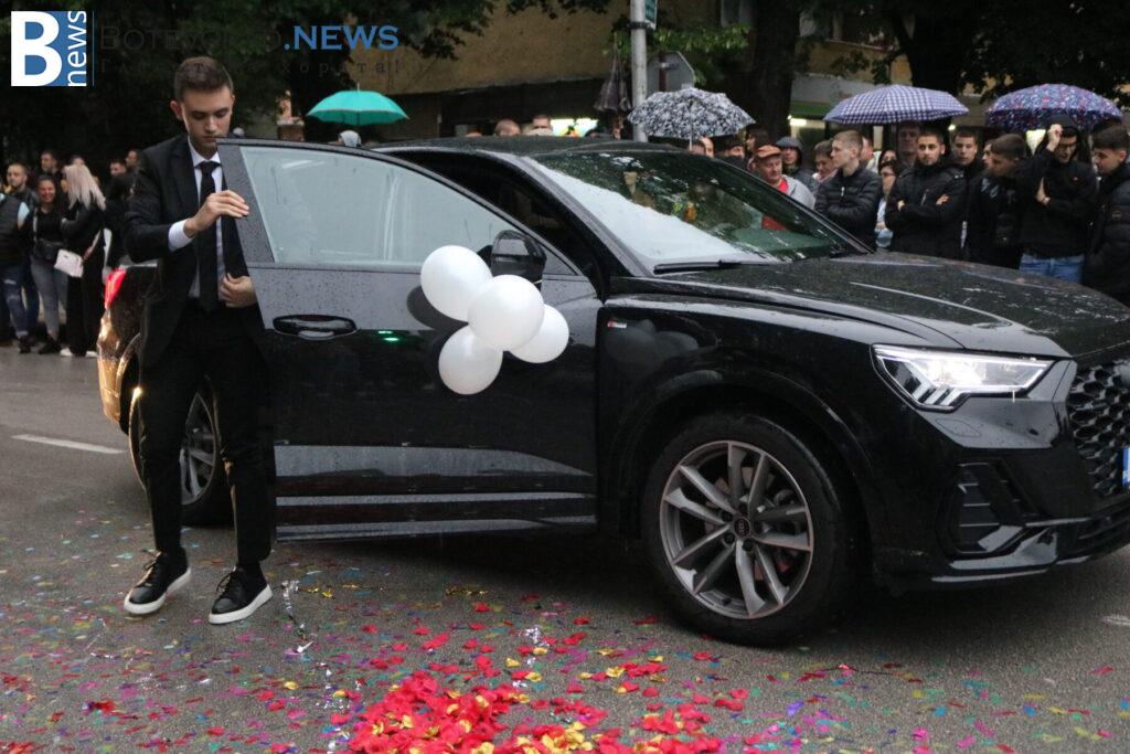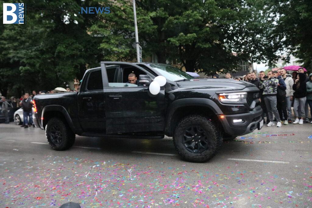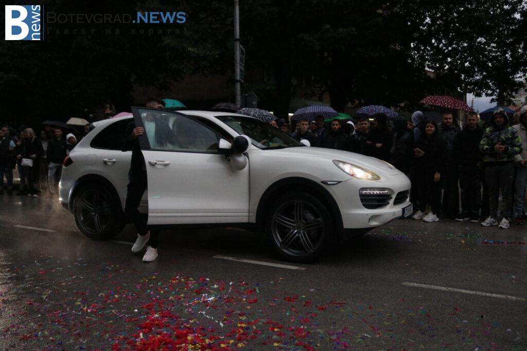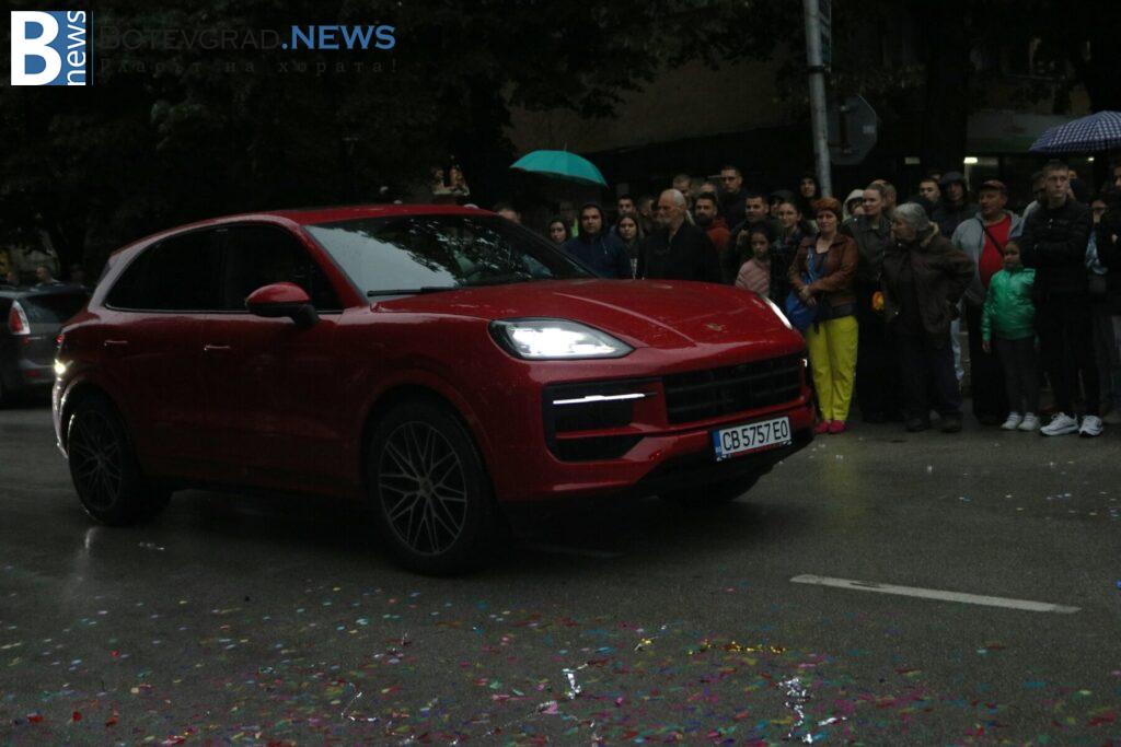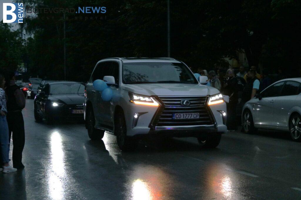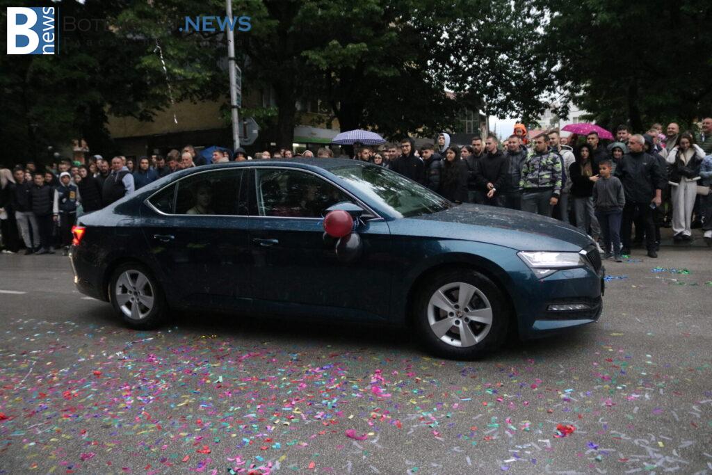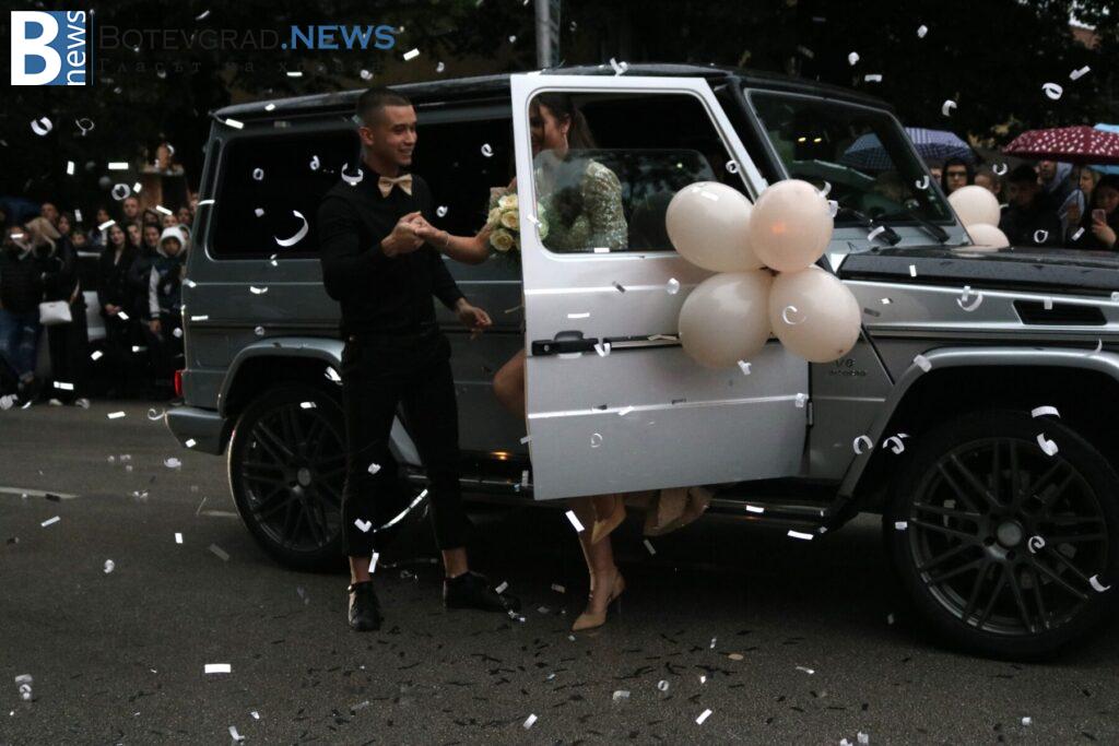 Най-голямата атракция на вечерта безспорно бяха учениците от 12 „Б“ клас, водени от своя обичан класен ръководител, г-н Филип Зуберски. Те пристигнаха не с лъскави коли, а с училищен автобус – жест, който предизвика бурни аплодисменти, усмивки и искрено възхищение. Техният оригинален избор се превърна в символ на духа и сплотеността на випуска – различен, креативен и незабравим.
